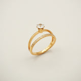 2つの指輪を重ねたようなデザインが特徴のビジューリング。