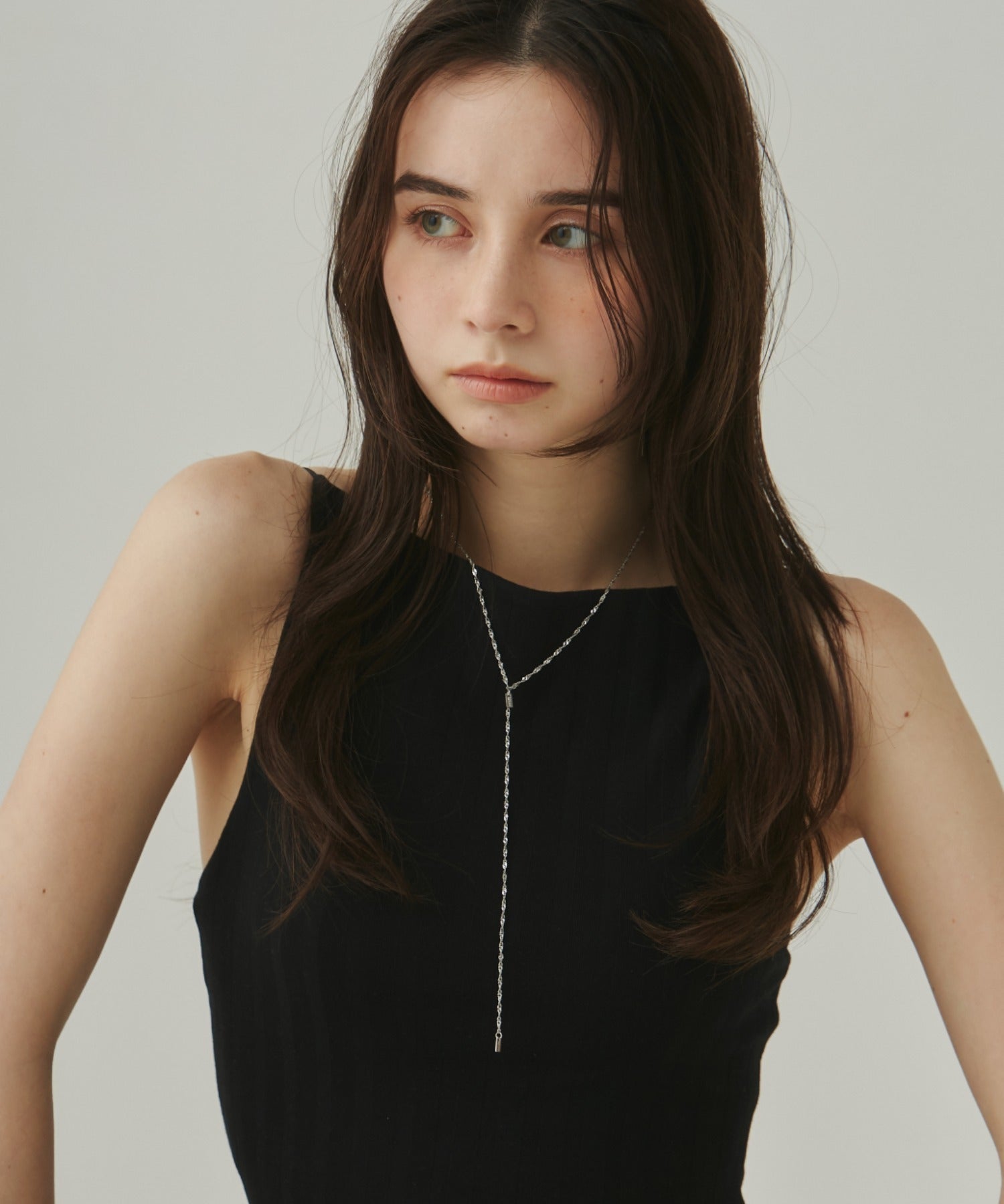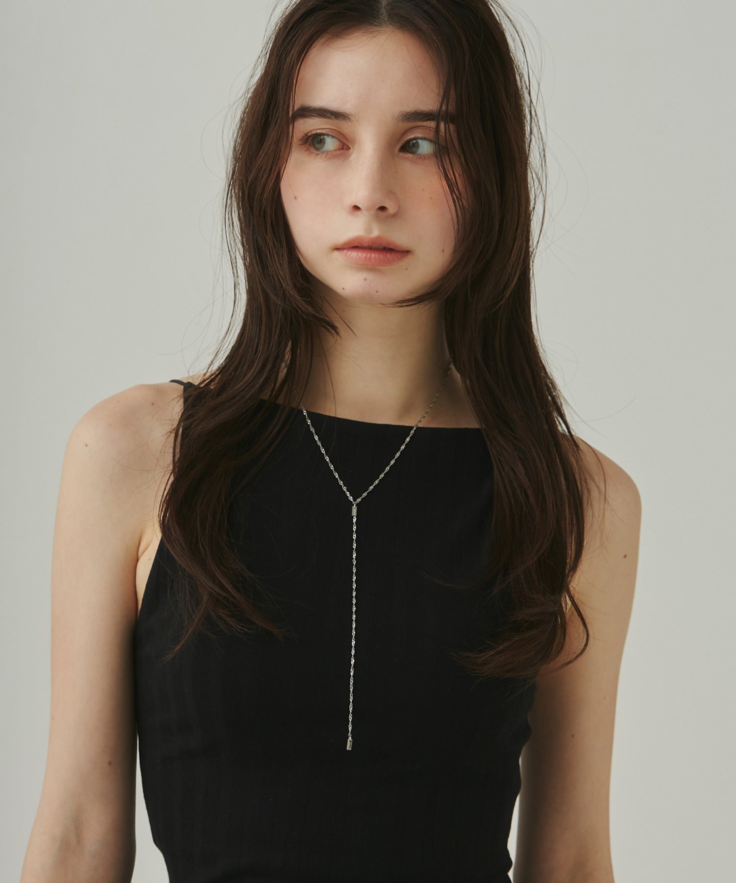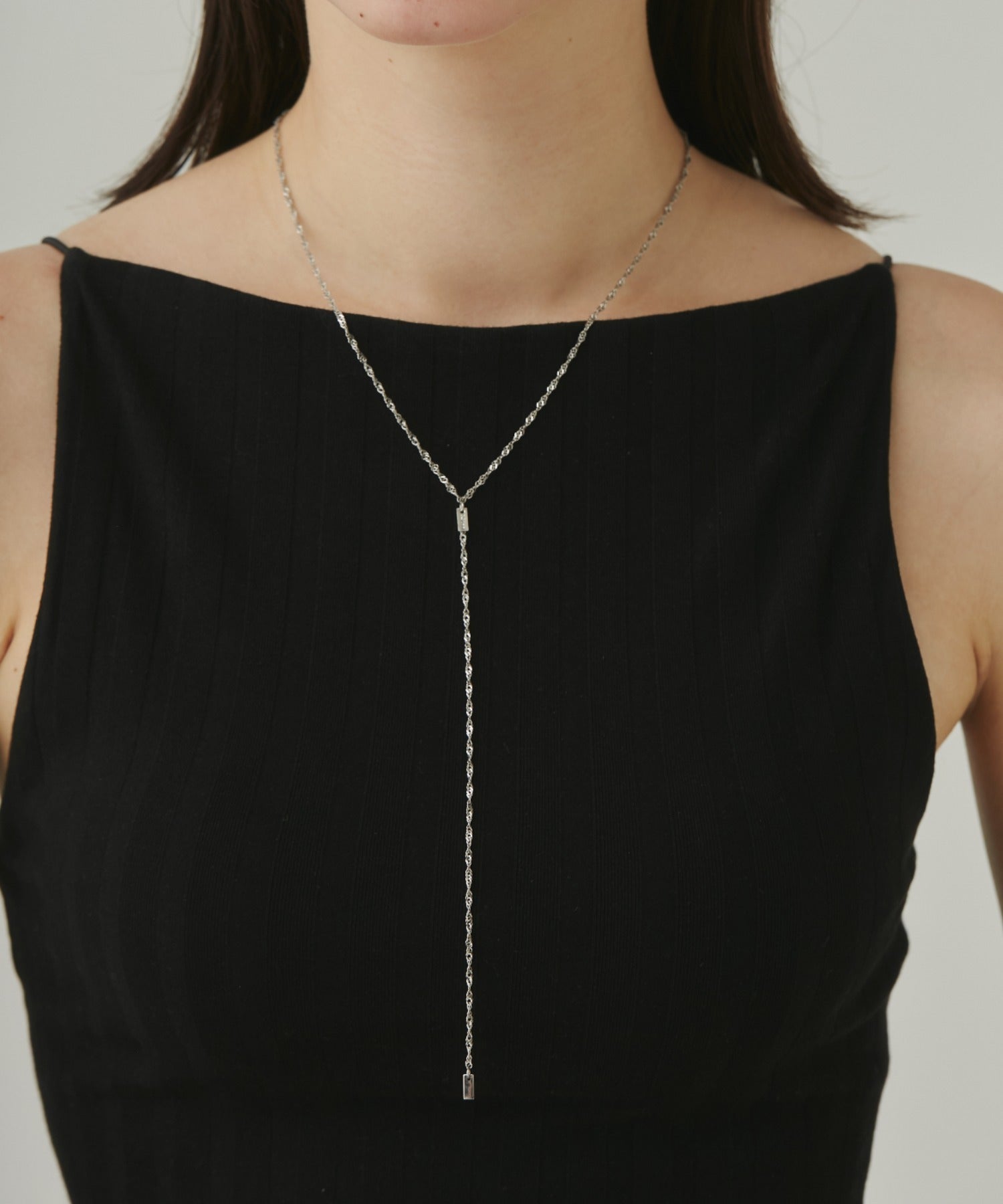 シンプルながらも付けた時のバランスに最大限こだったロングチェーンネックレス。