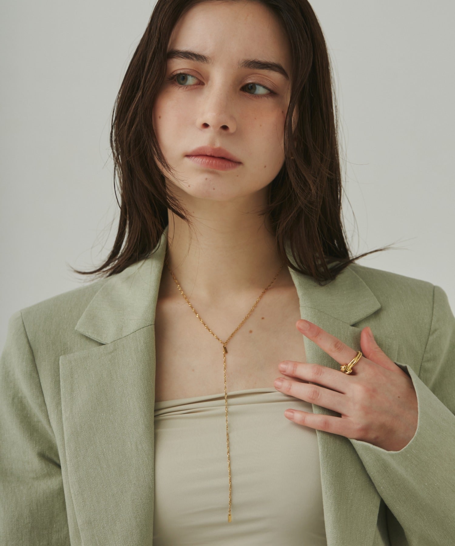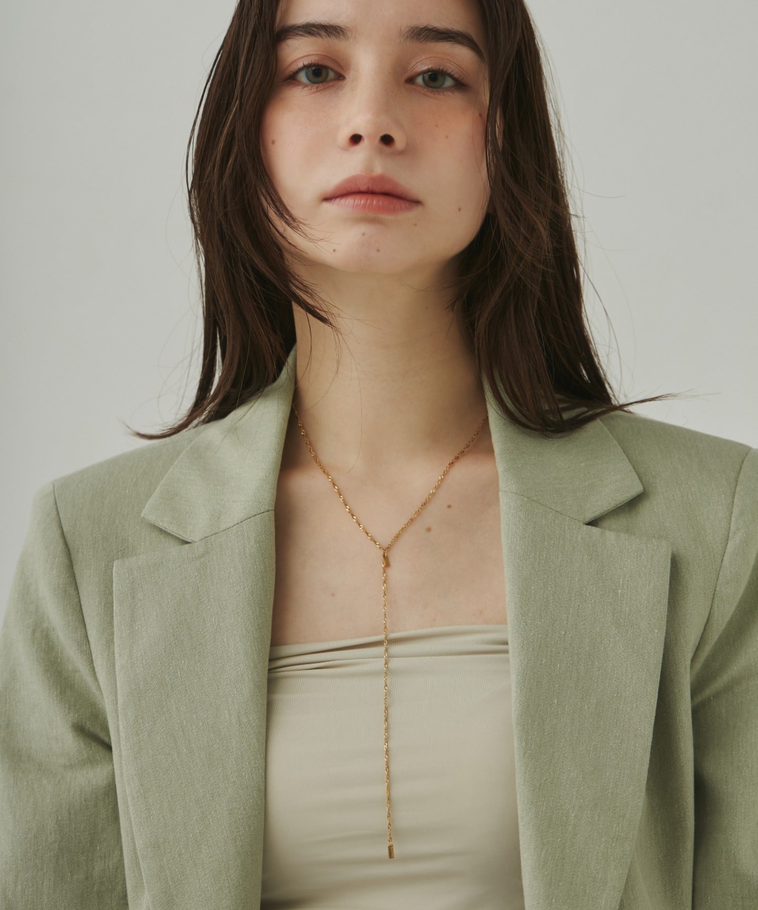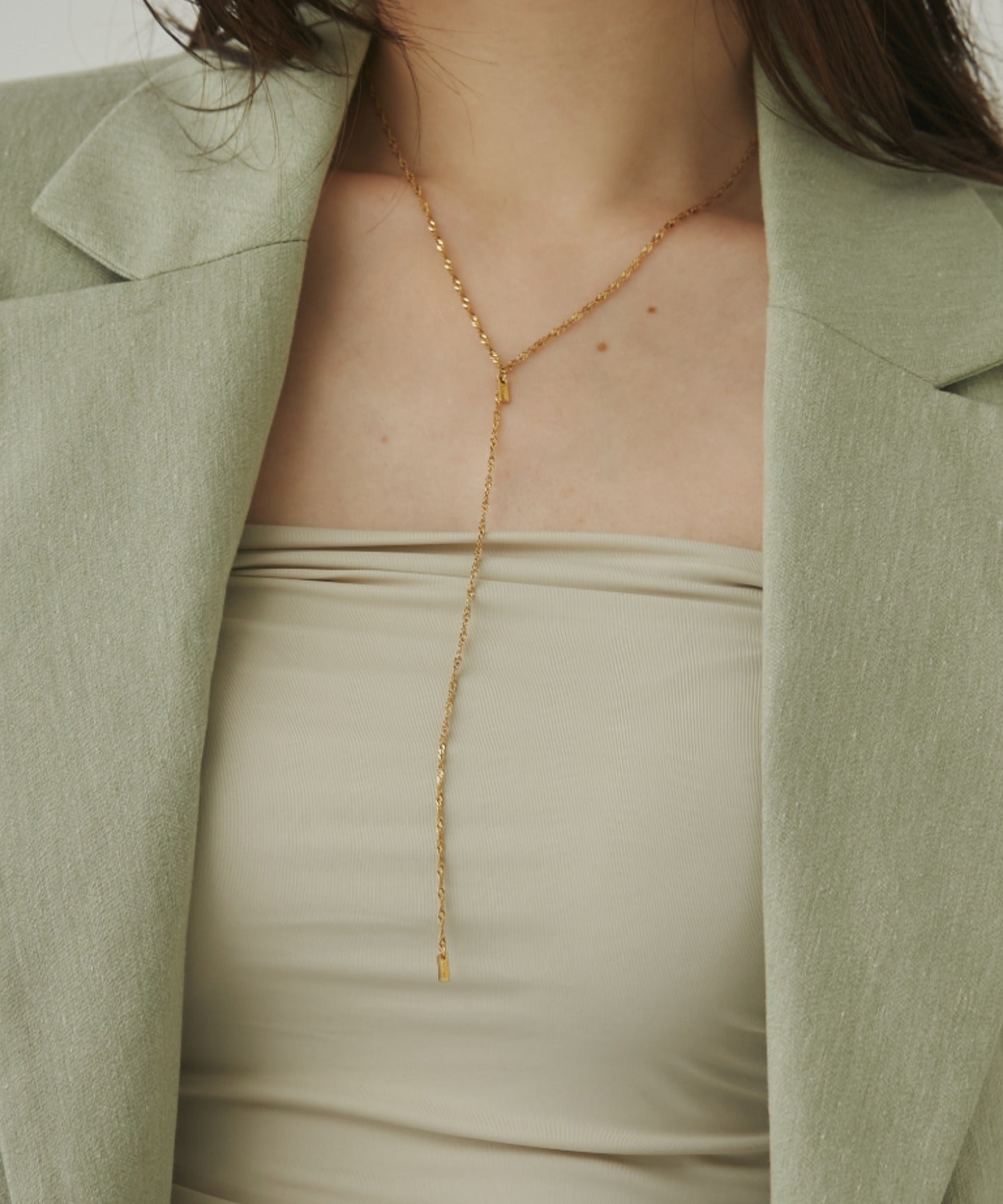 シンプルながらも付けた時のバランスに最大限こだったロングチェーンネックレス。