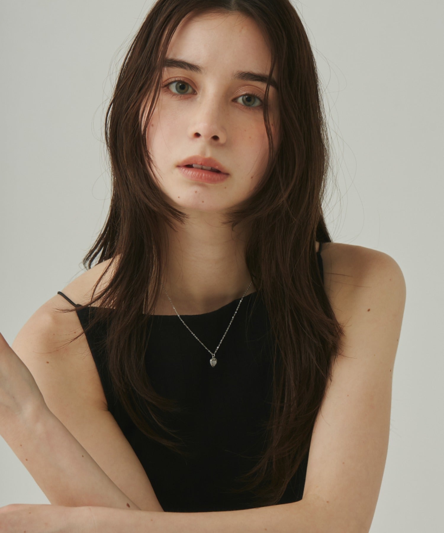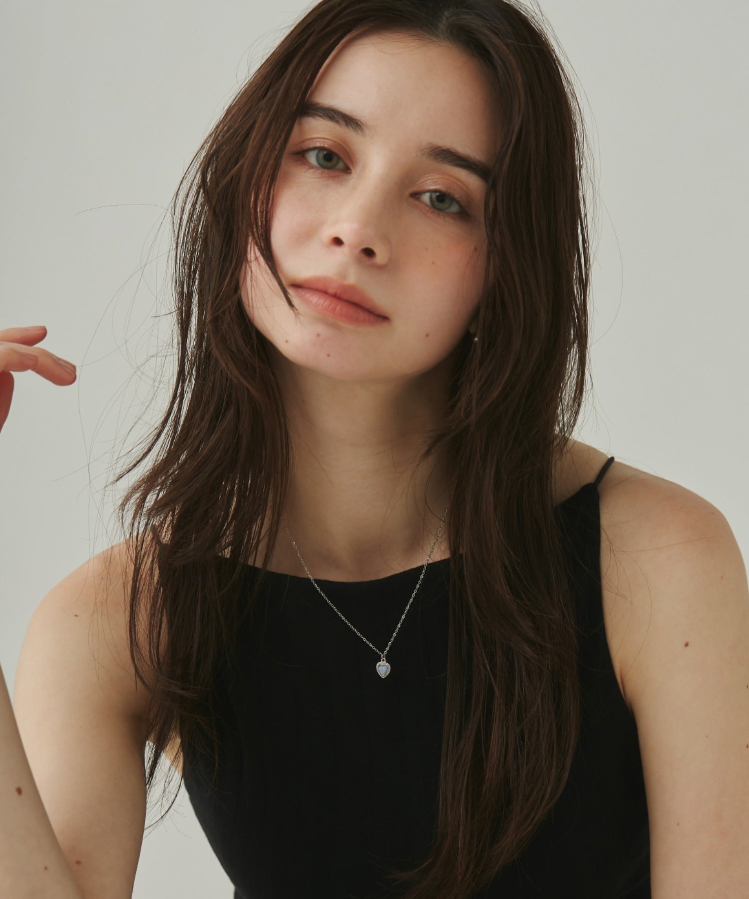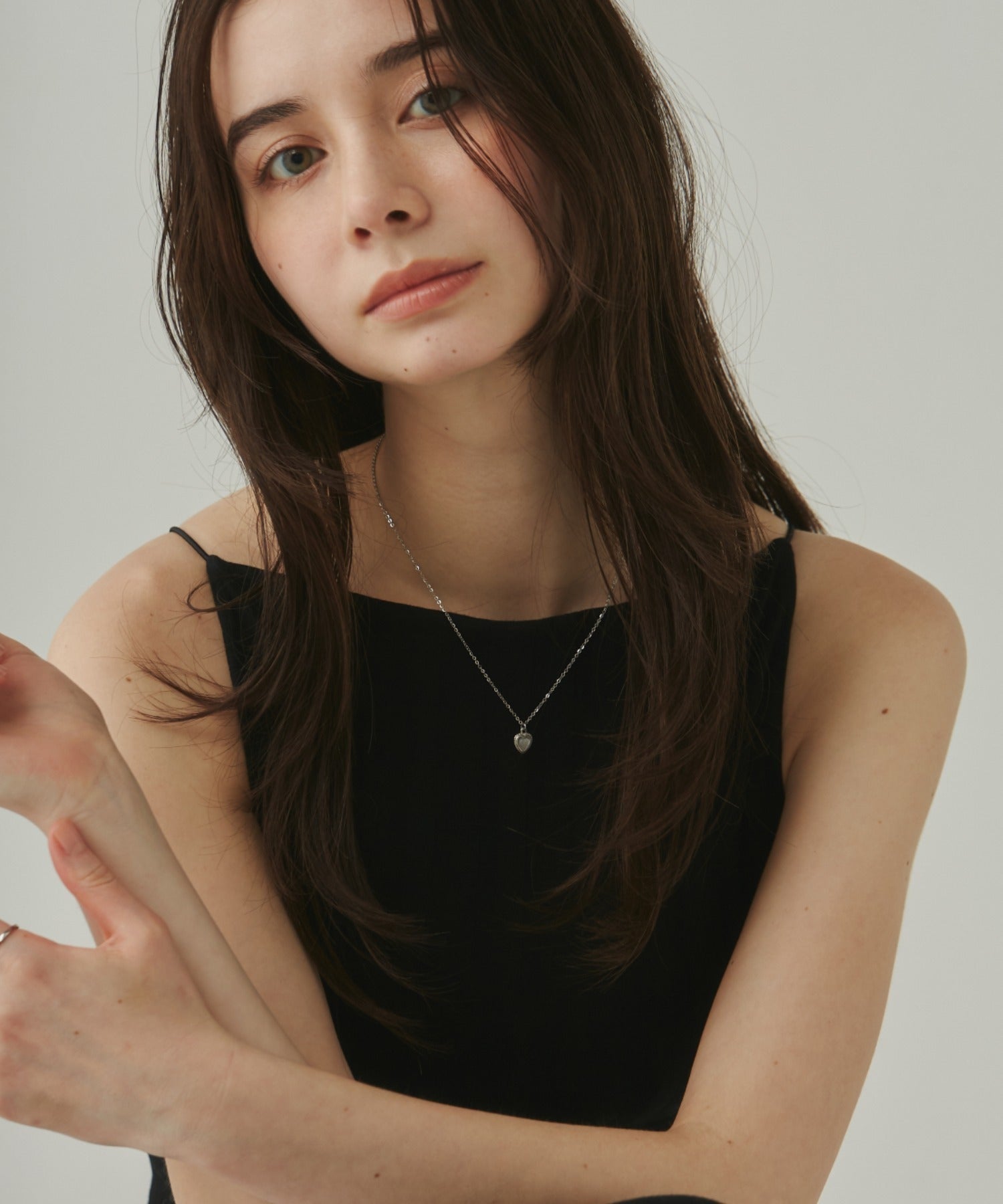 大人可愛い色合いのハートトップが特徴のネックレス。