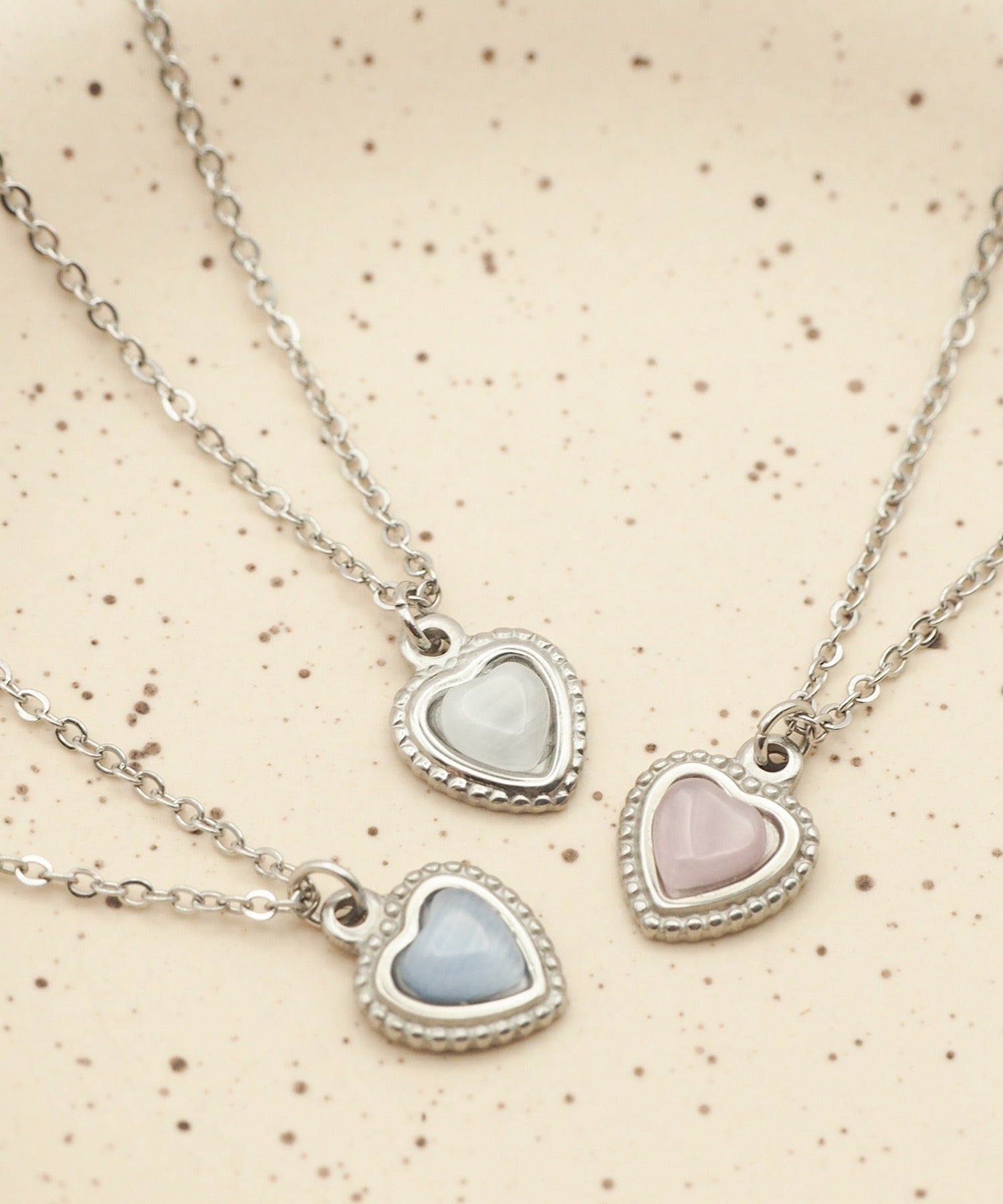 【 金属アレルギー対応 】 パステルカラー ハートネックレス サージカルステンレス