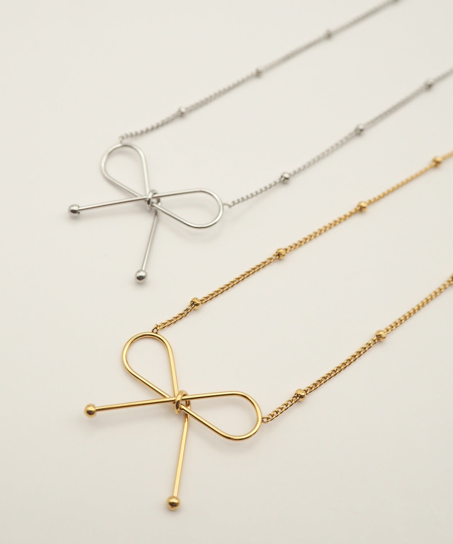 【 金属アレルギー対応 】 リボンネックレス サージカルステンレス