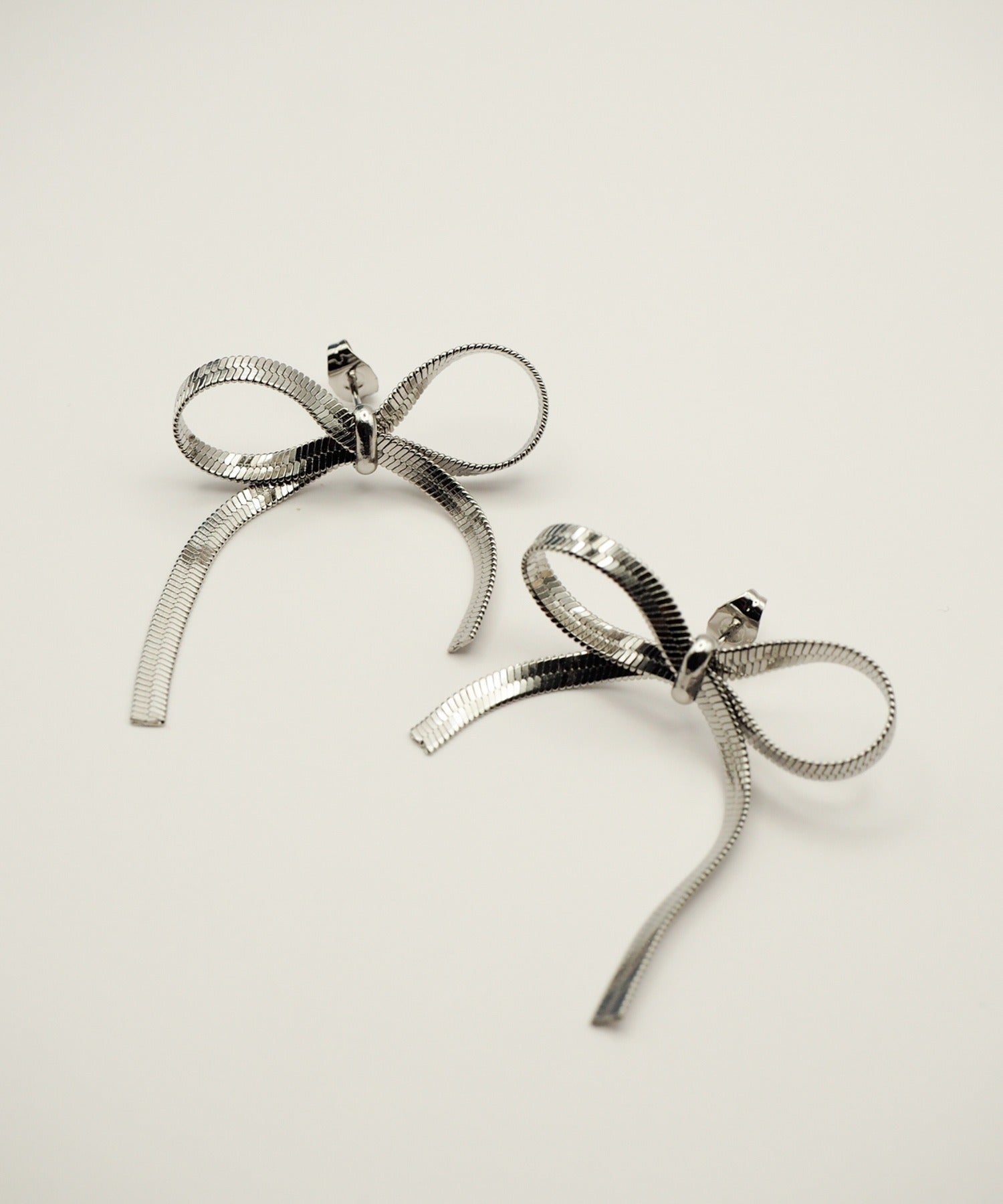 【 金属アレルギー対応 】 リボンピアス サージカルステンレス (両耳用)