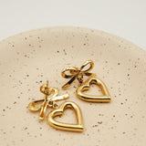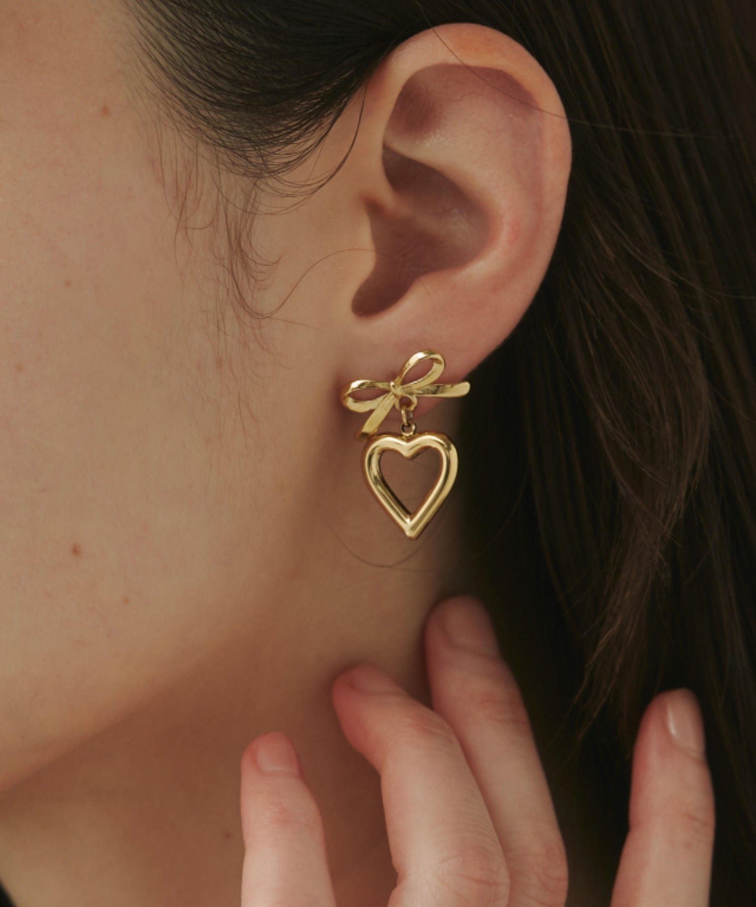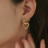 ハートとリボンを組み合わせた大人可愛い印象のピアス。