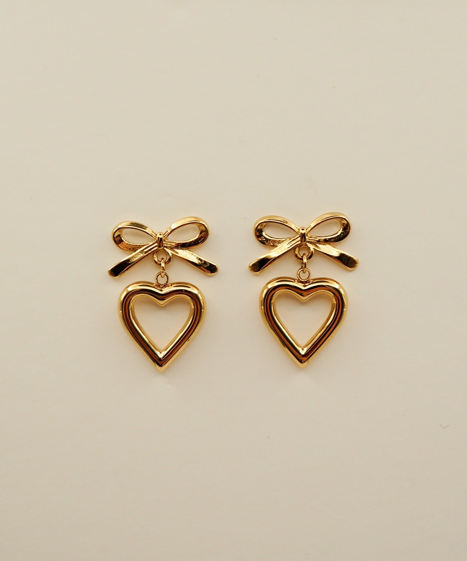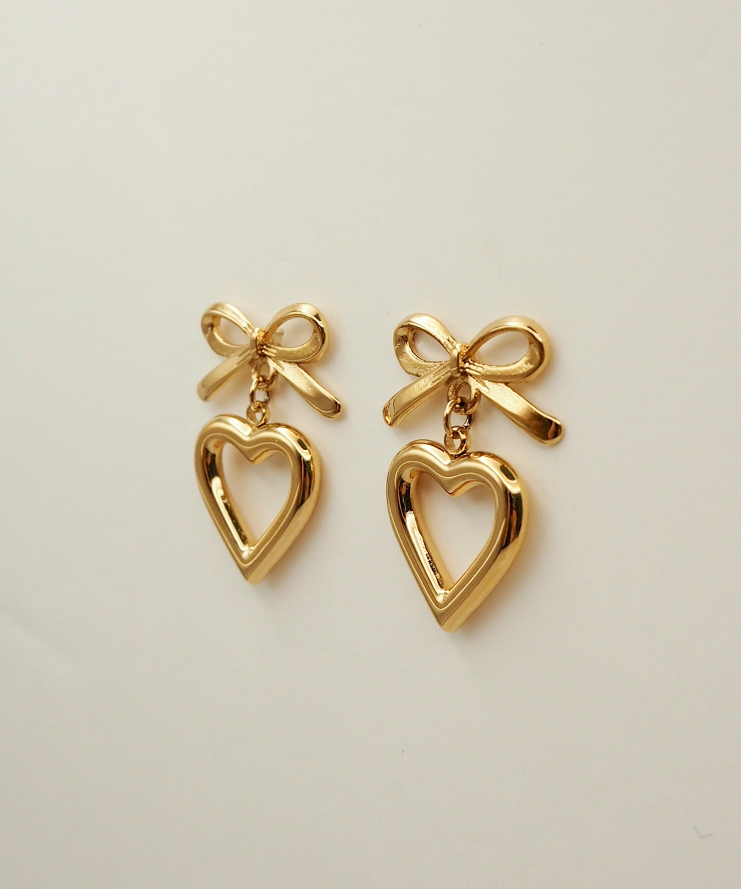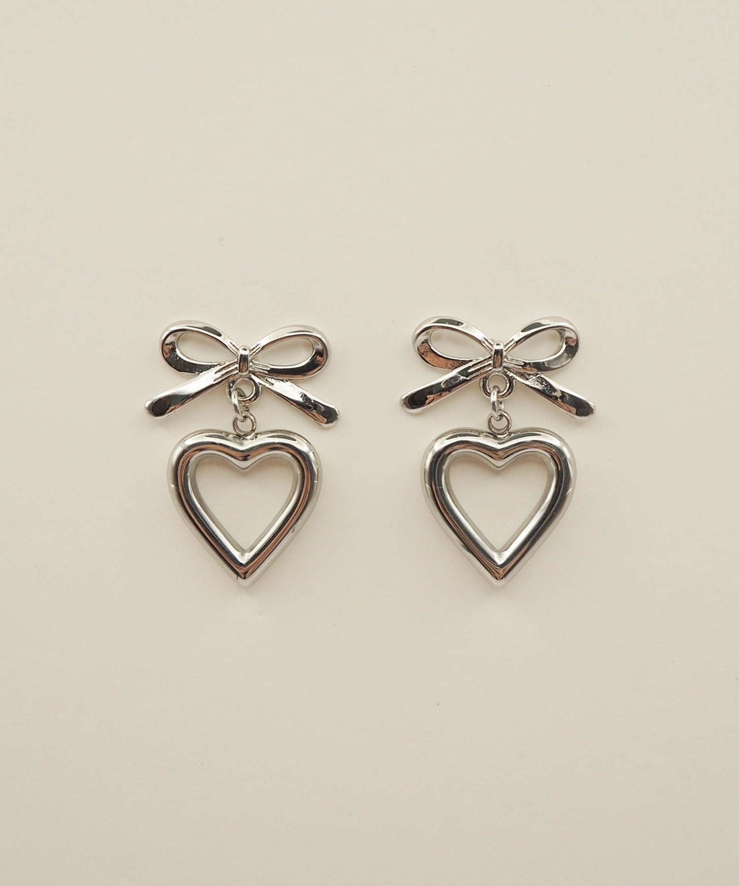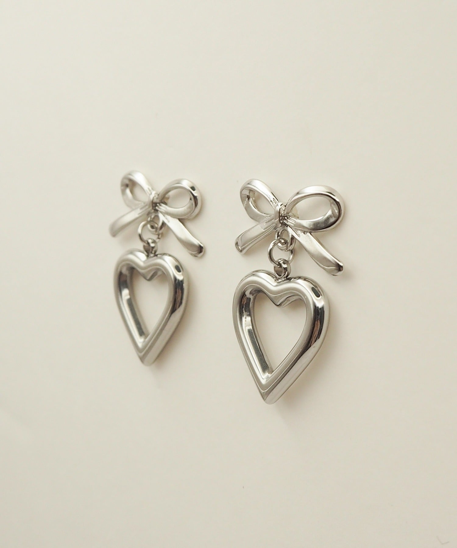 【 金属アレルギー対応 】 ハートリボンピアス サージカルステンレス (両耳用)