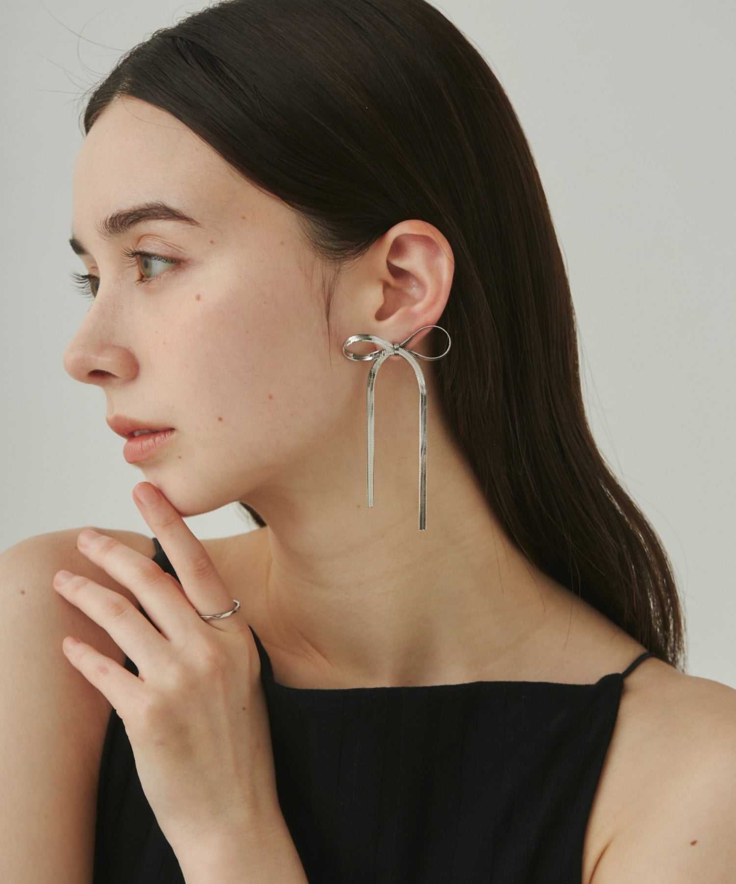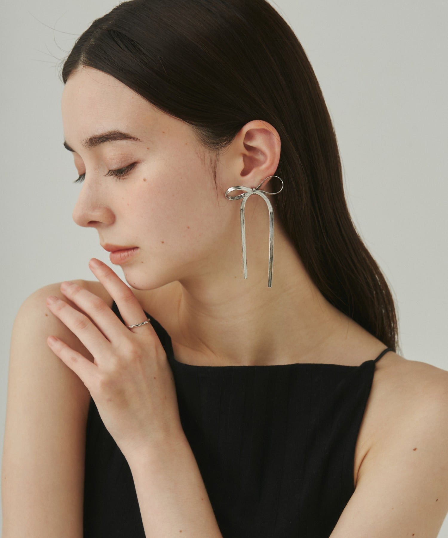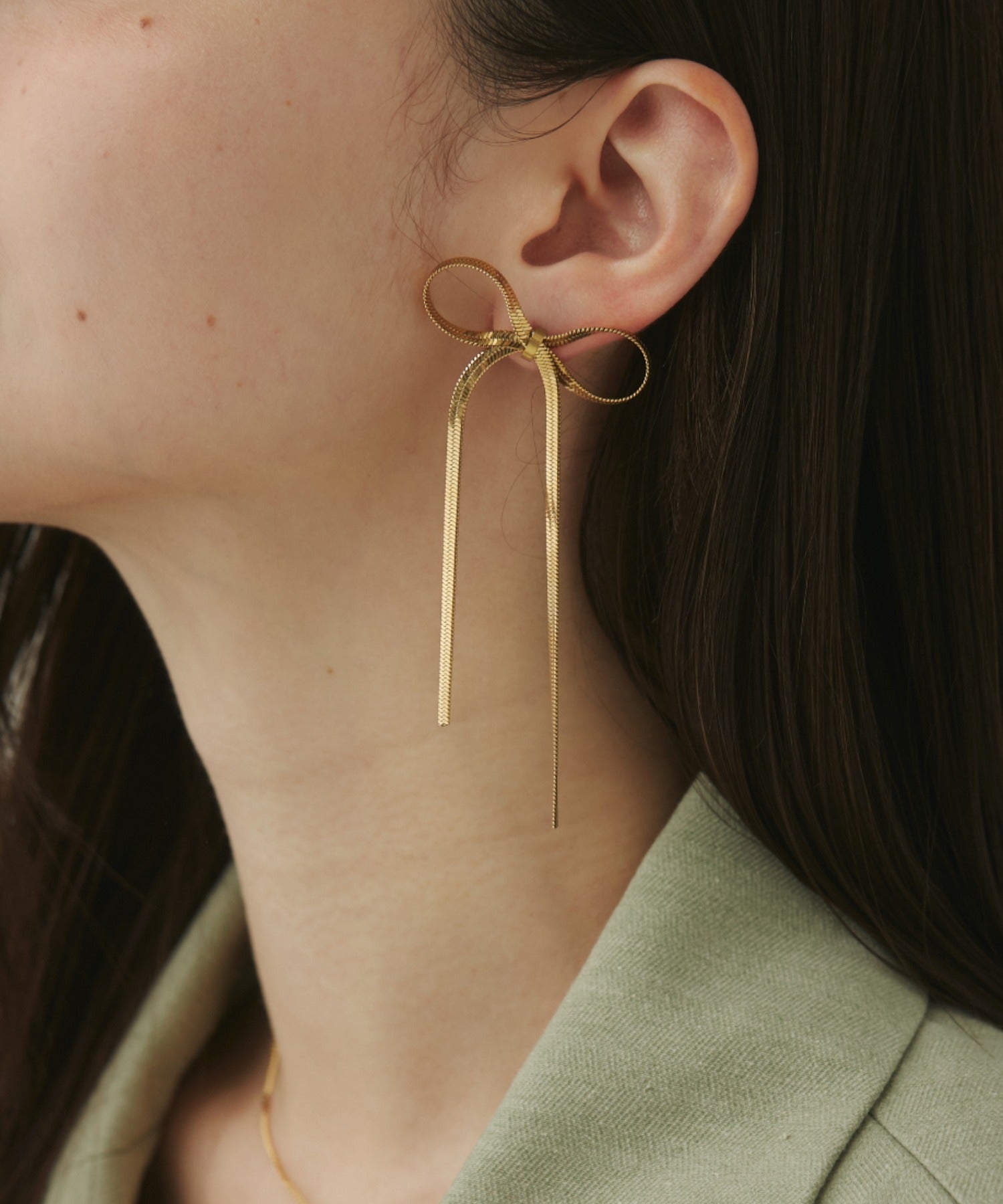 大ぶりのリボンが大人可愛い印象のピアス。