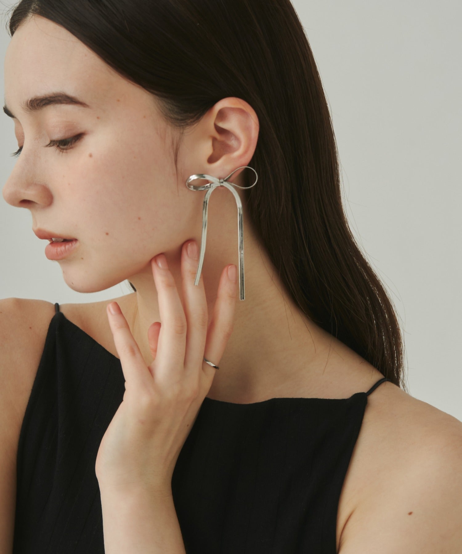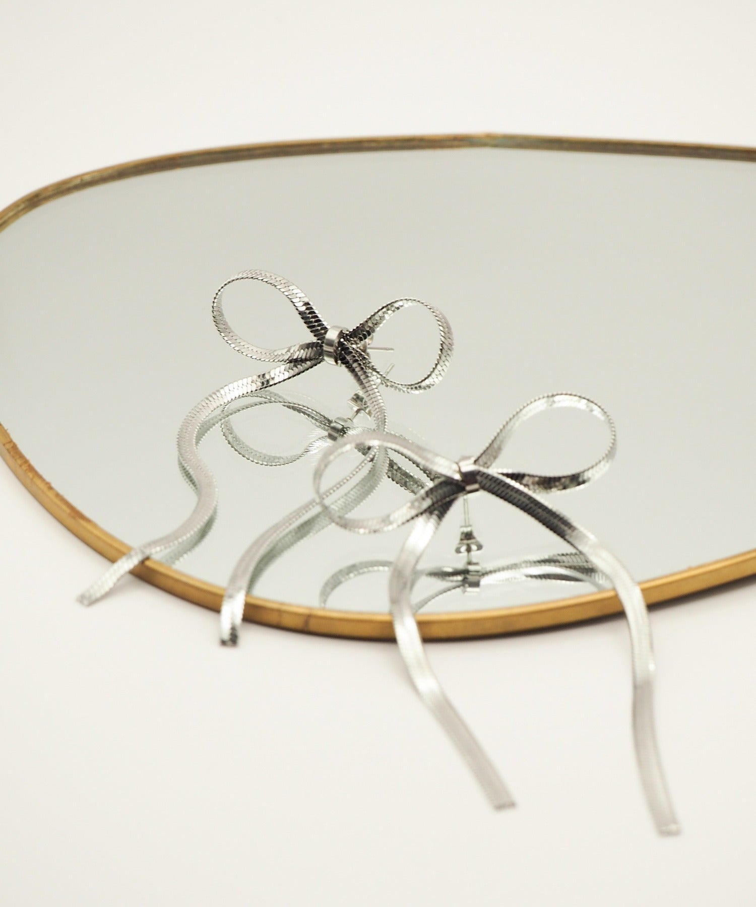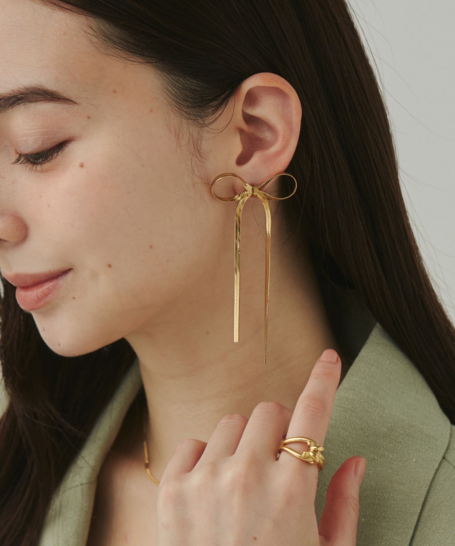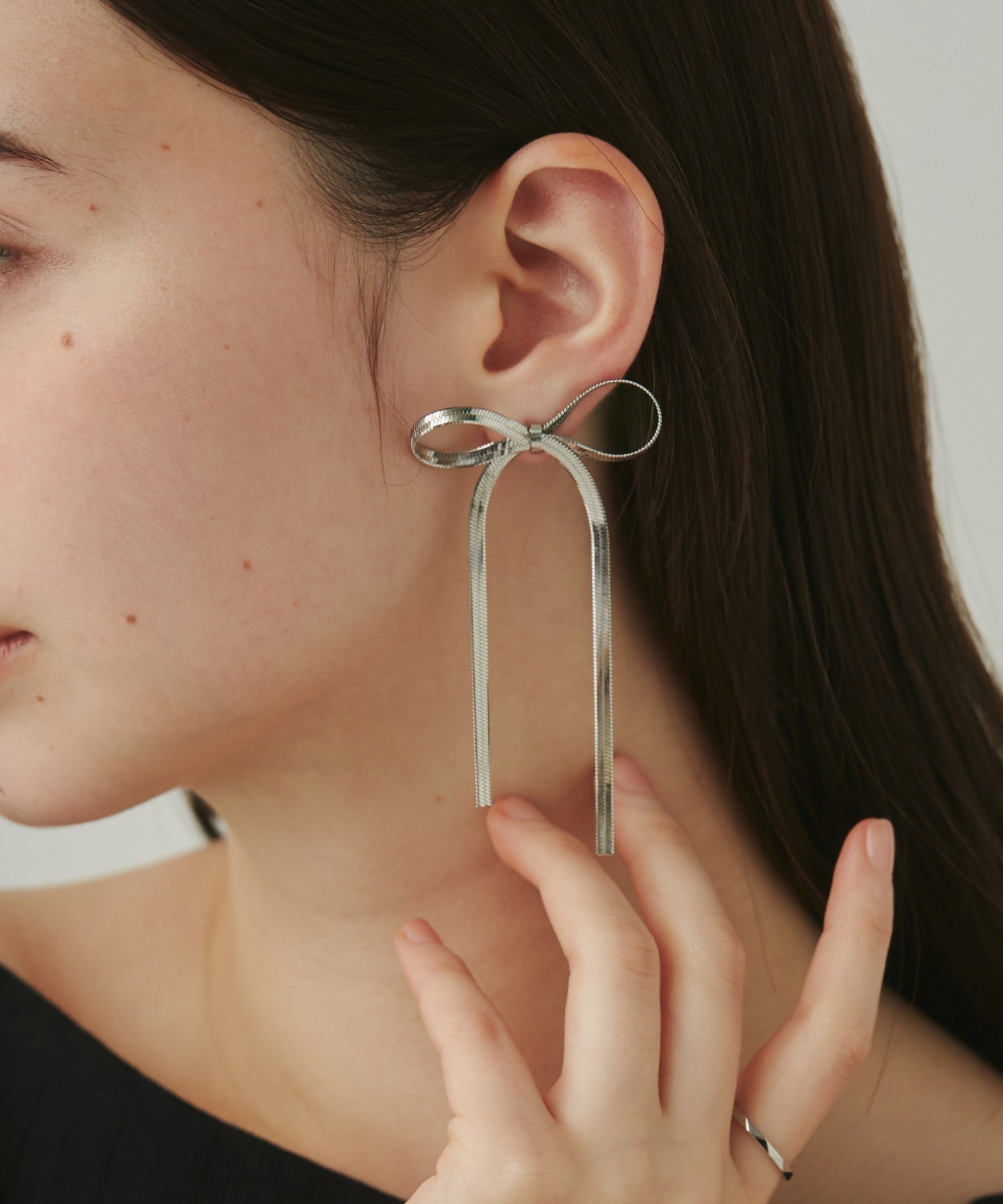 【 金属アレルギー対応 】リボンピアス サージカルステンレス (両耳用)