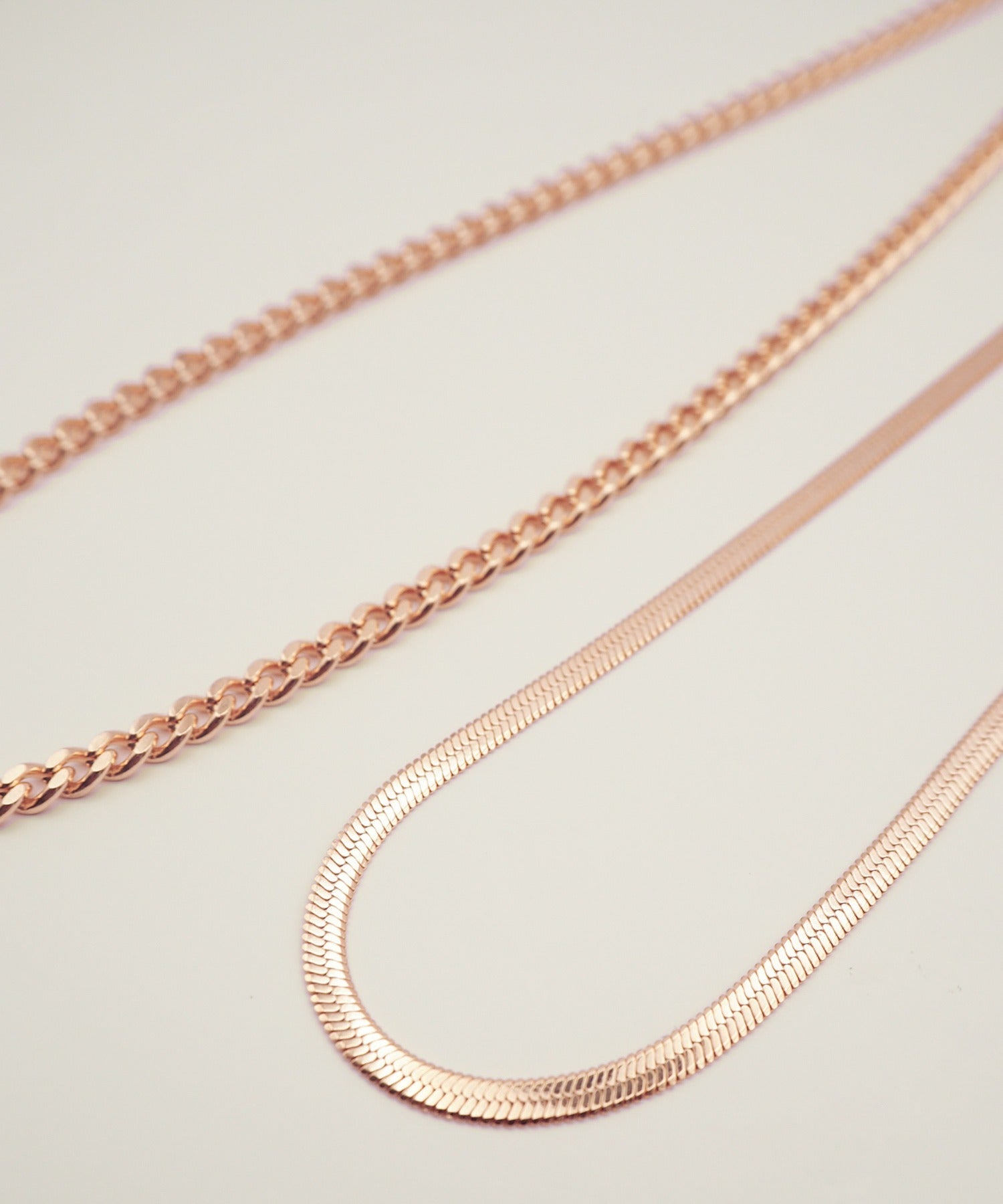 ハートデザインのネックレスとシンプルなスネークチェーンネックレスを組み合わせた2セットネックレス。
