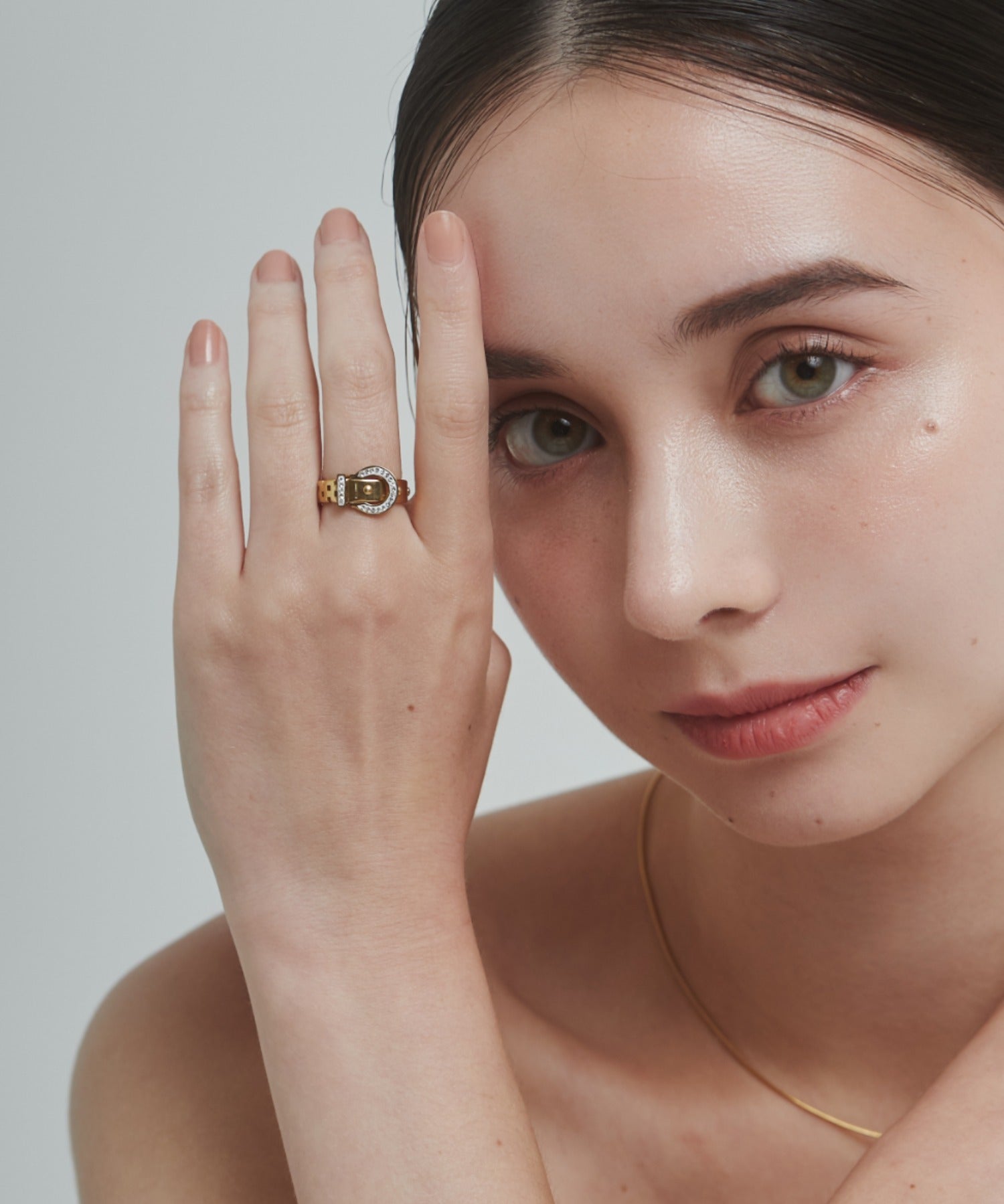 美しく光り輝くビジューが指もとを優美に照らしてくれるリング。