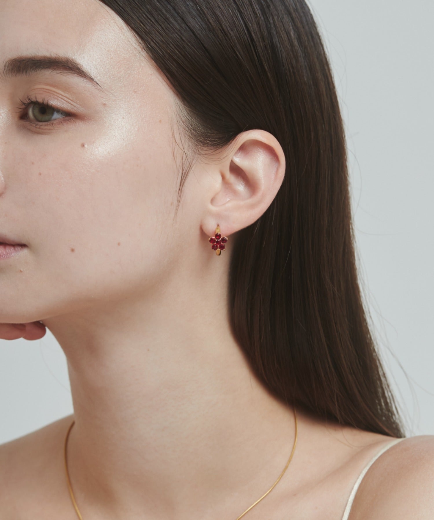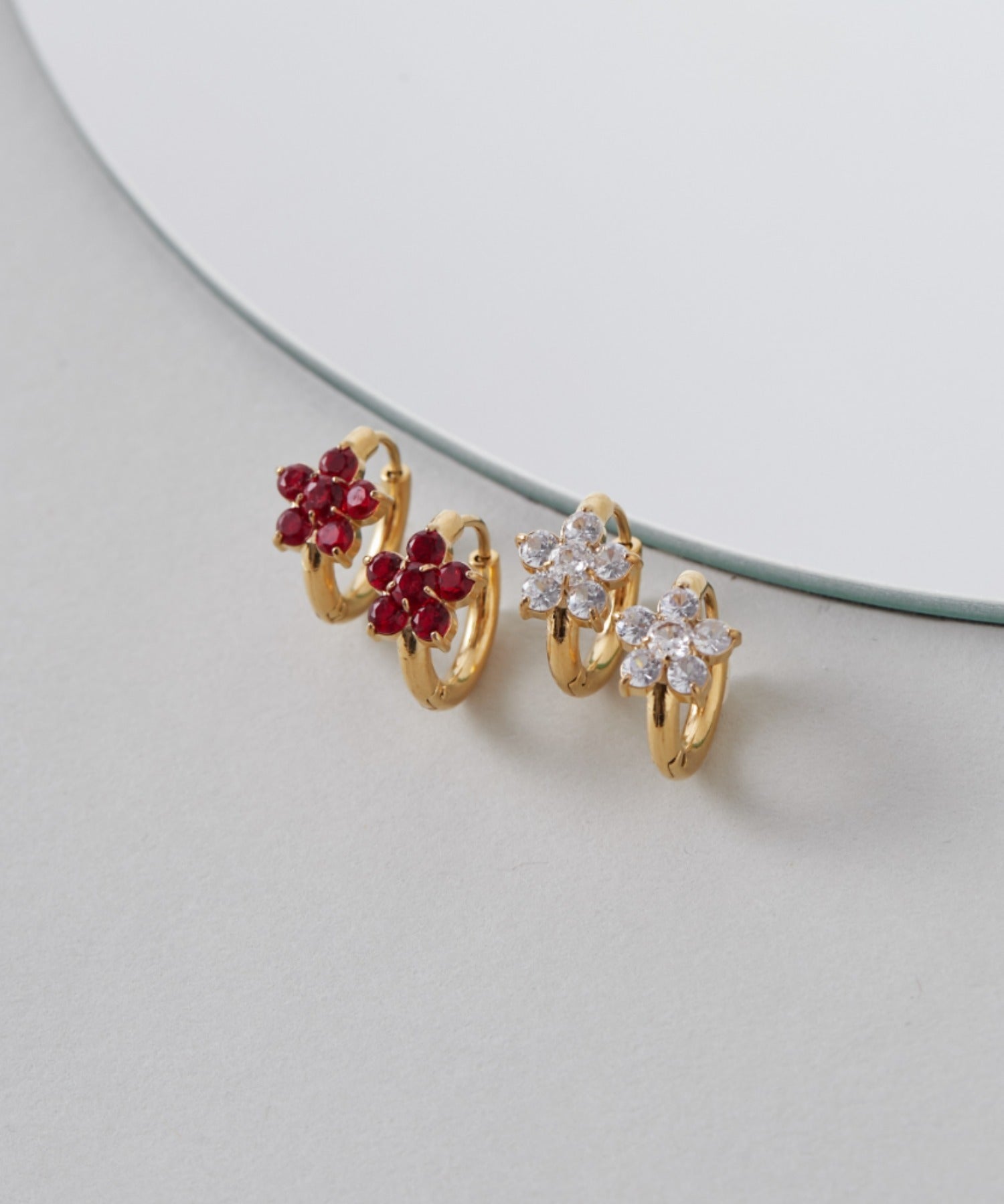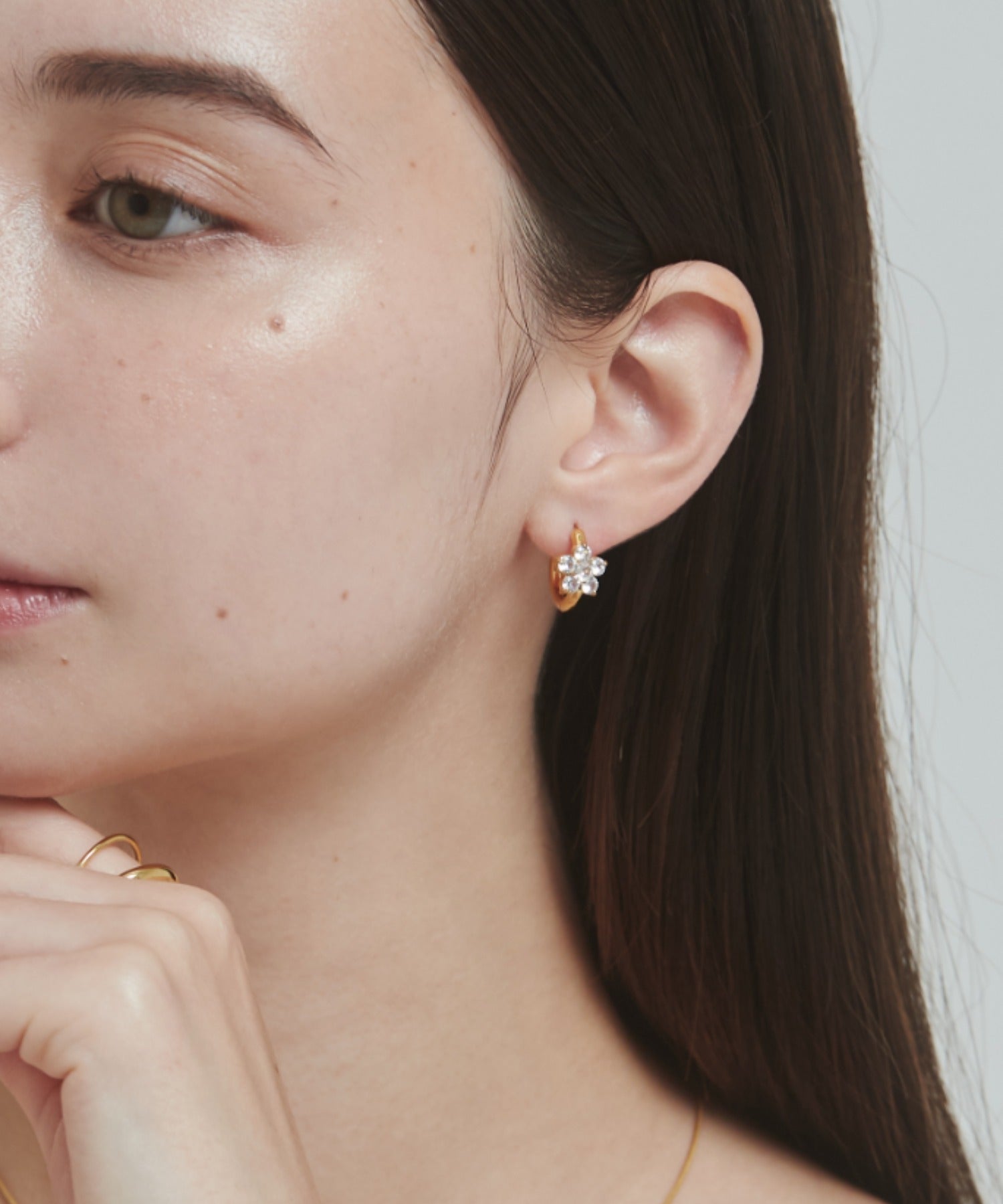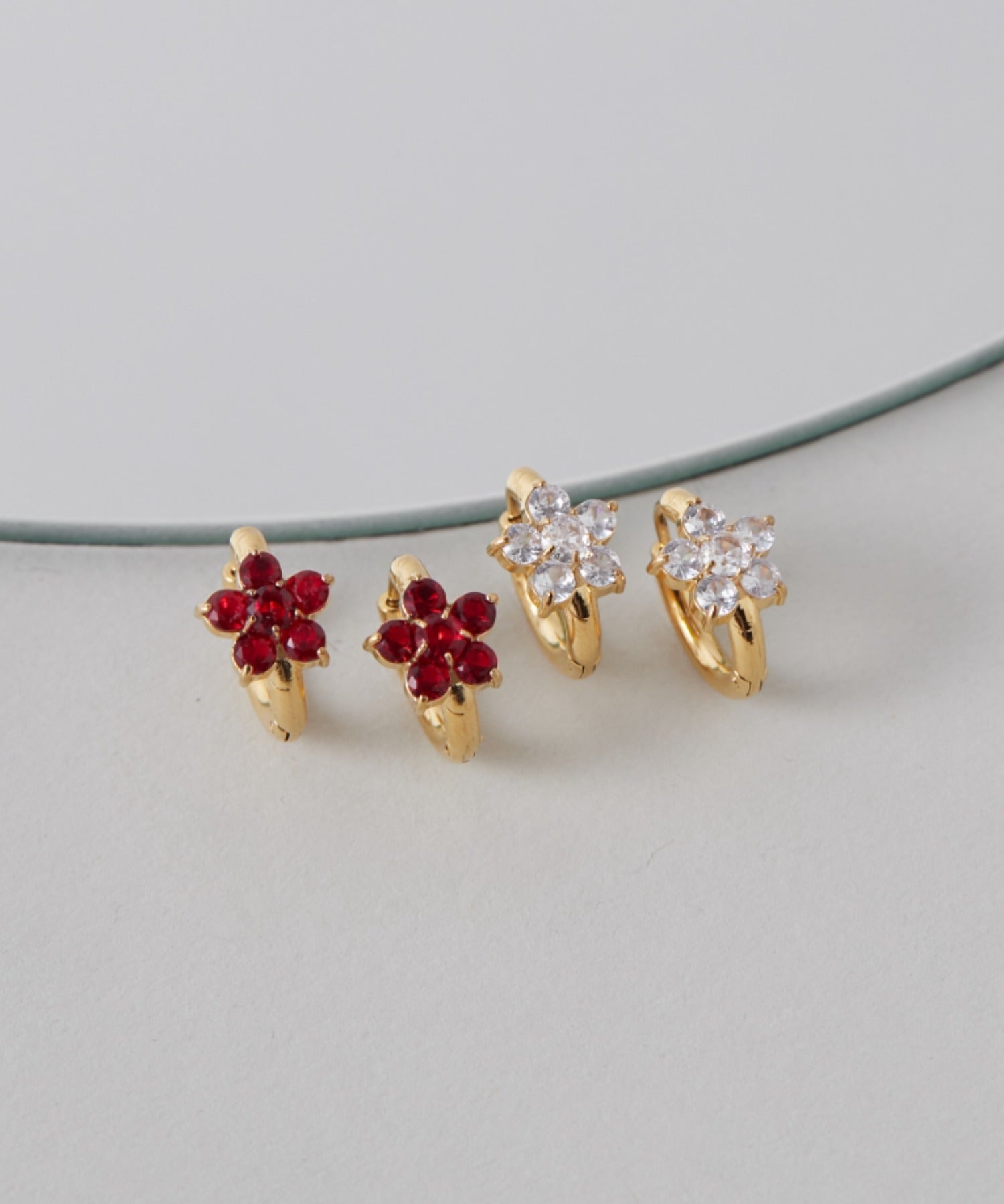 【 金属アレルギー対応 】 フラワービジュー フープピアス サージカルステンレス (両耳用)
