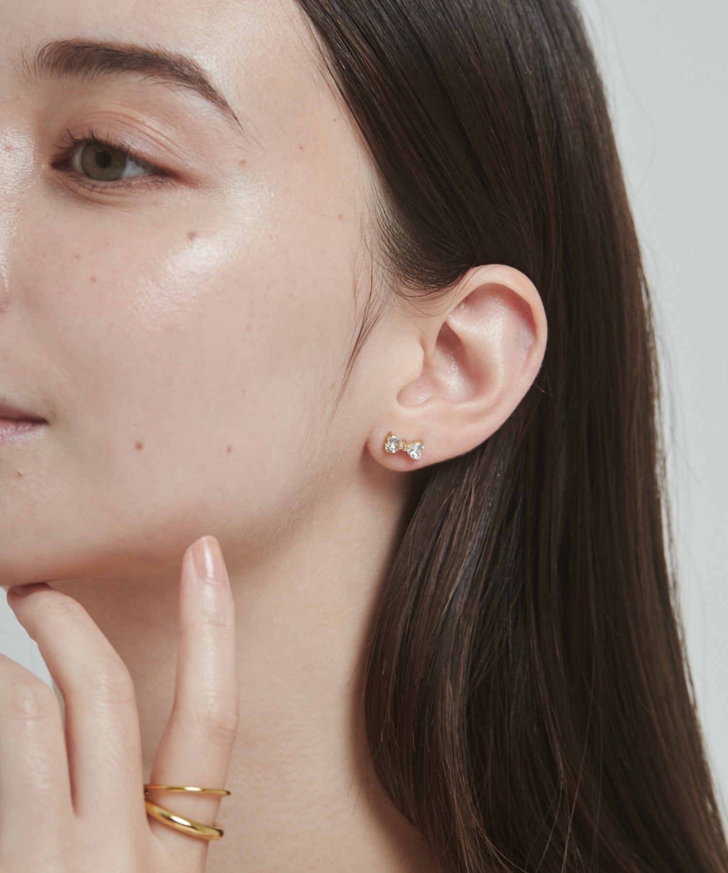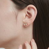 美しく光り輝くビジューが耳元を優美に照らしてくれるビジューリボンピアス。
