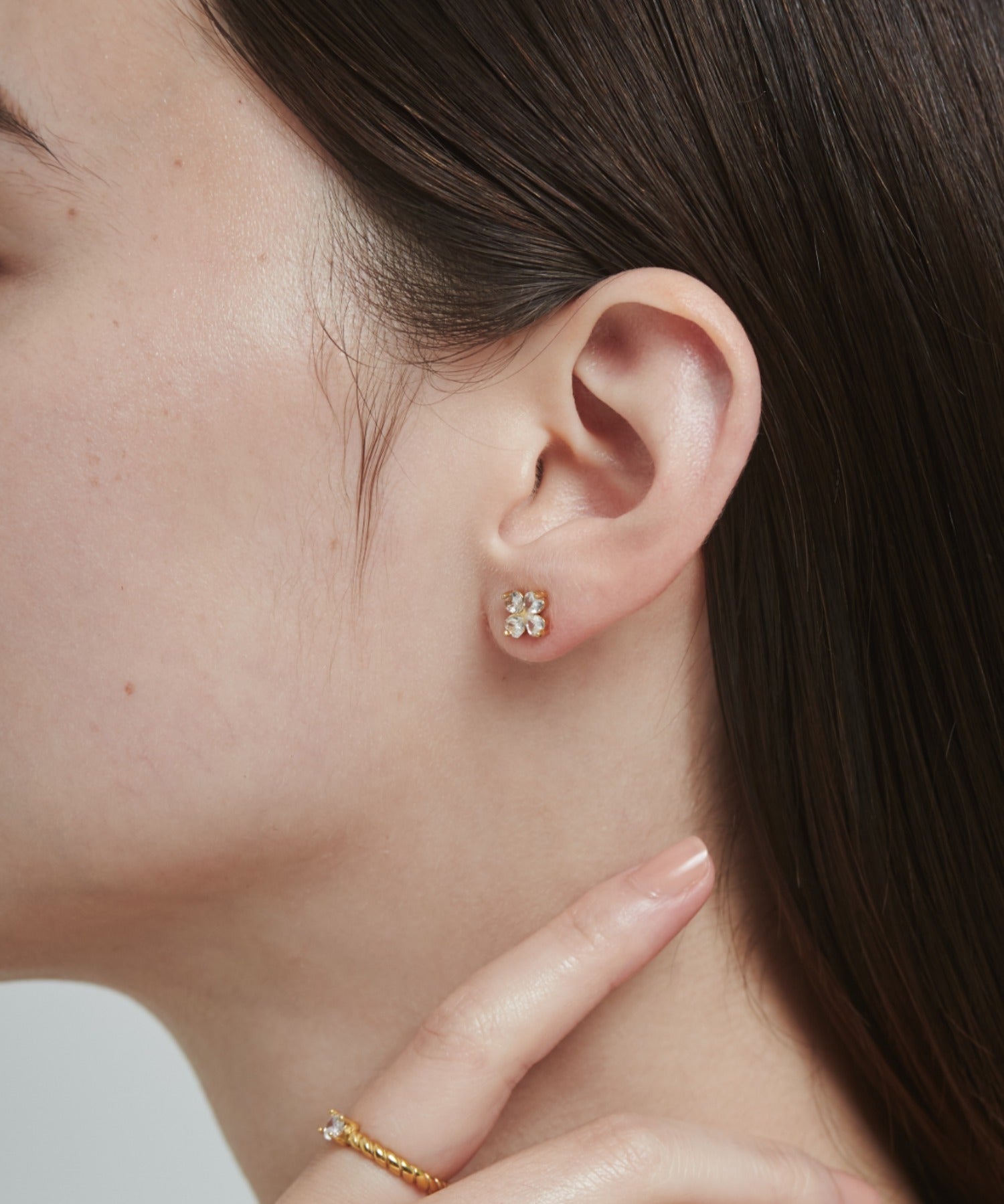美しく光り輝くビジューが耳元を優美に照らしてくれるピアス。