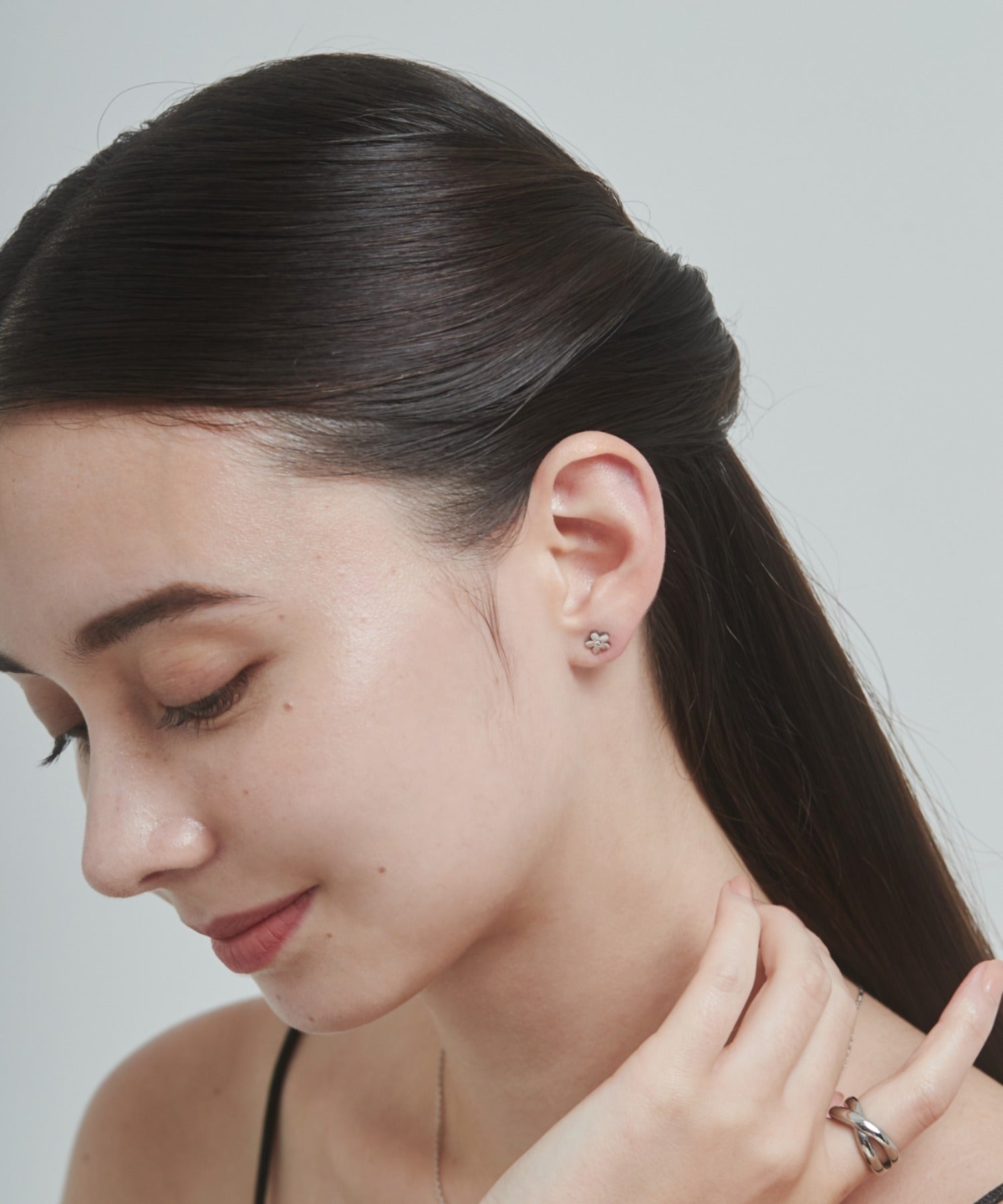 付けた時のバランスに最大限こだわったフラワービジューピアス。