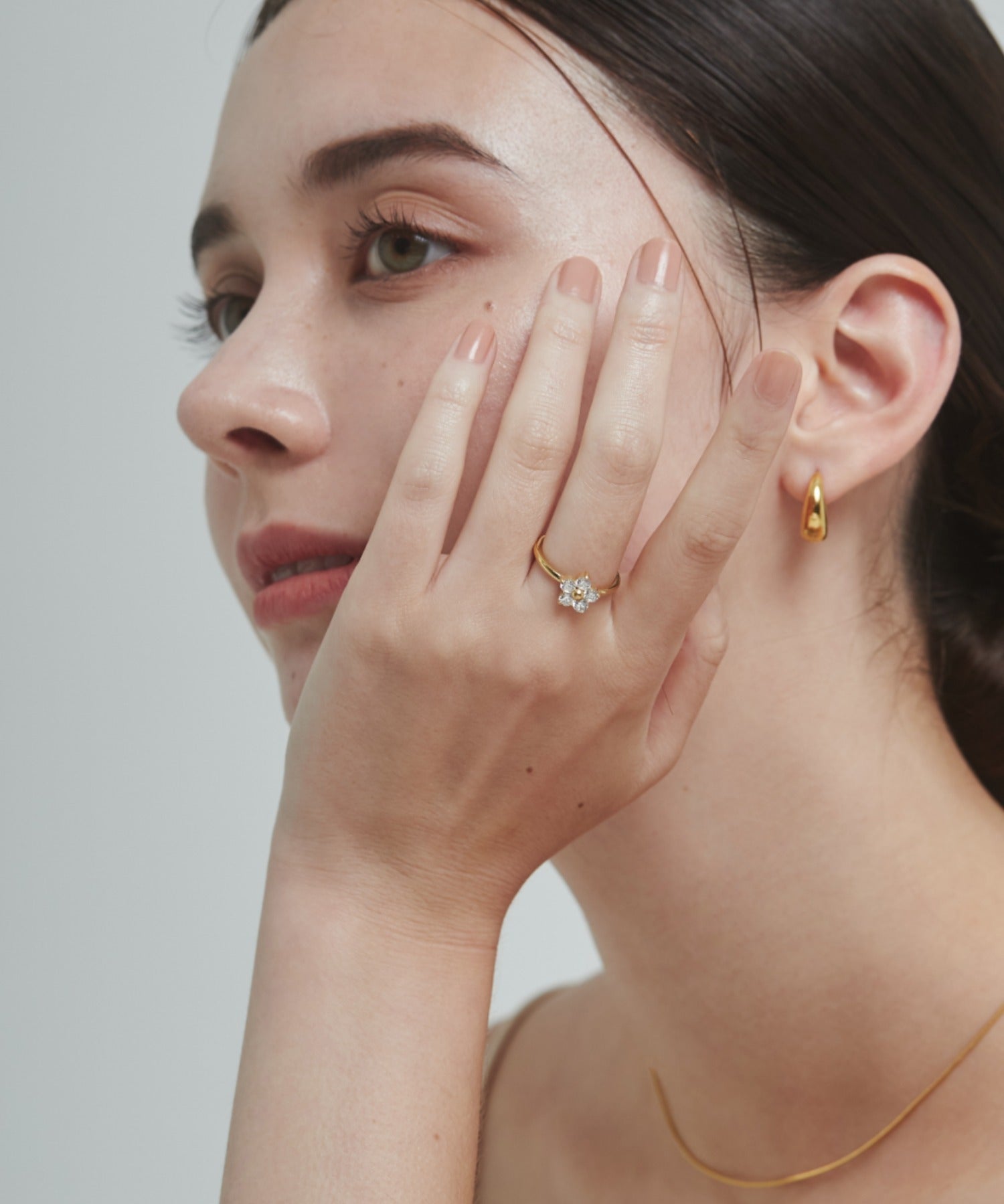 美しく光り輝くビジューが指もとを優美に照らしてくれるリング。