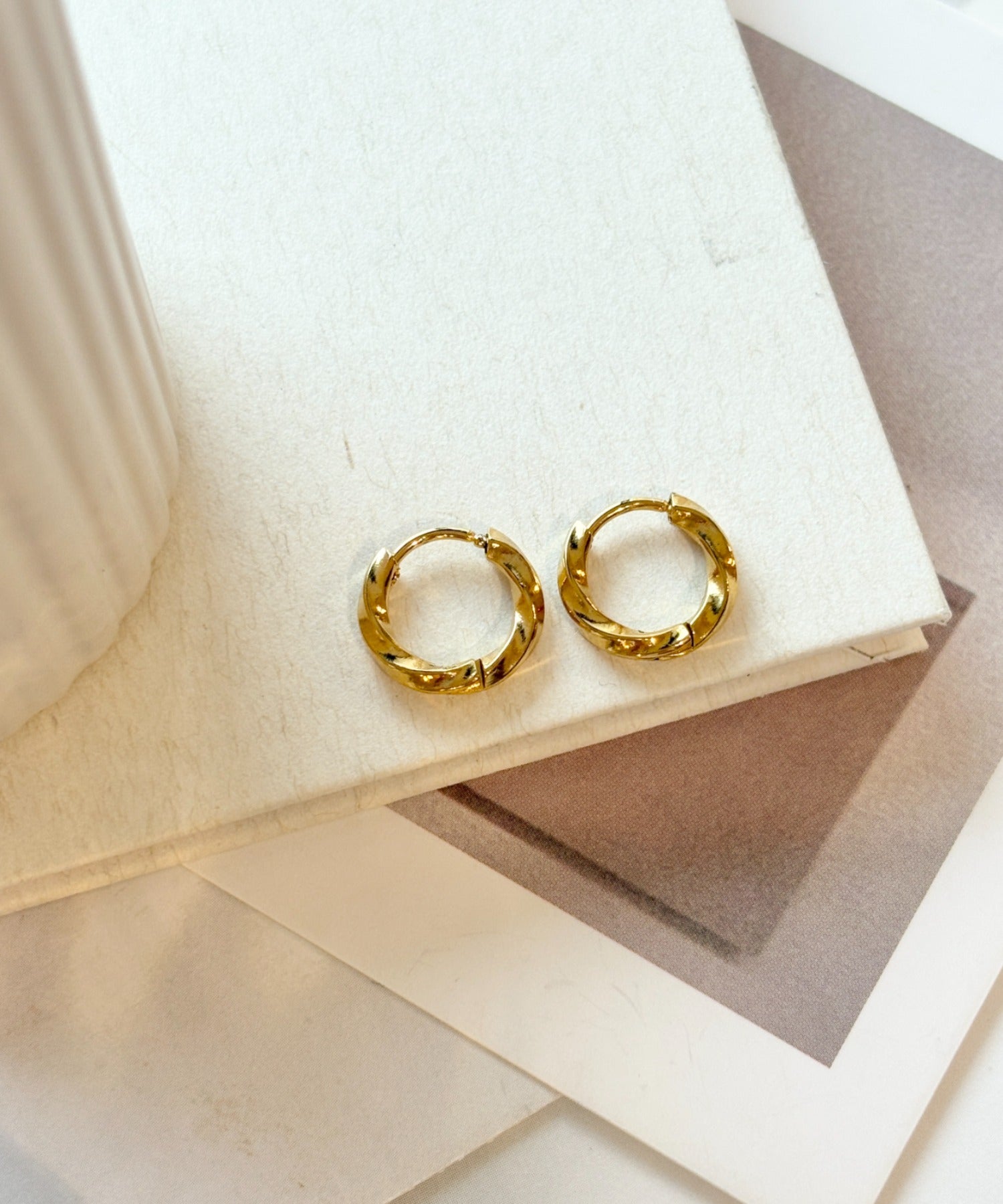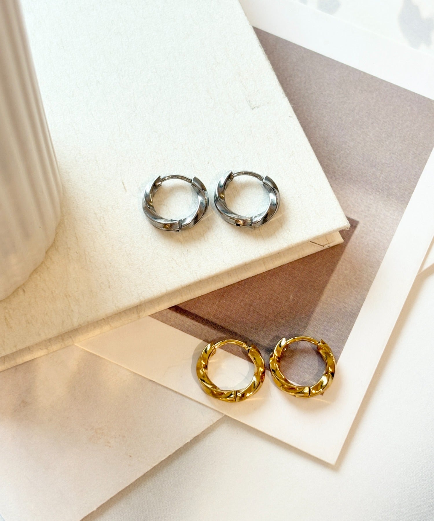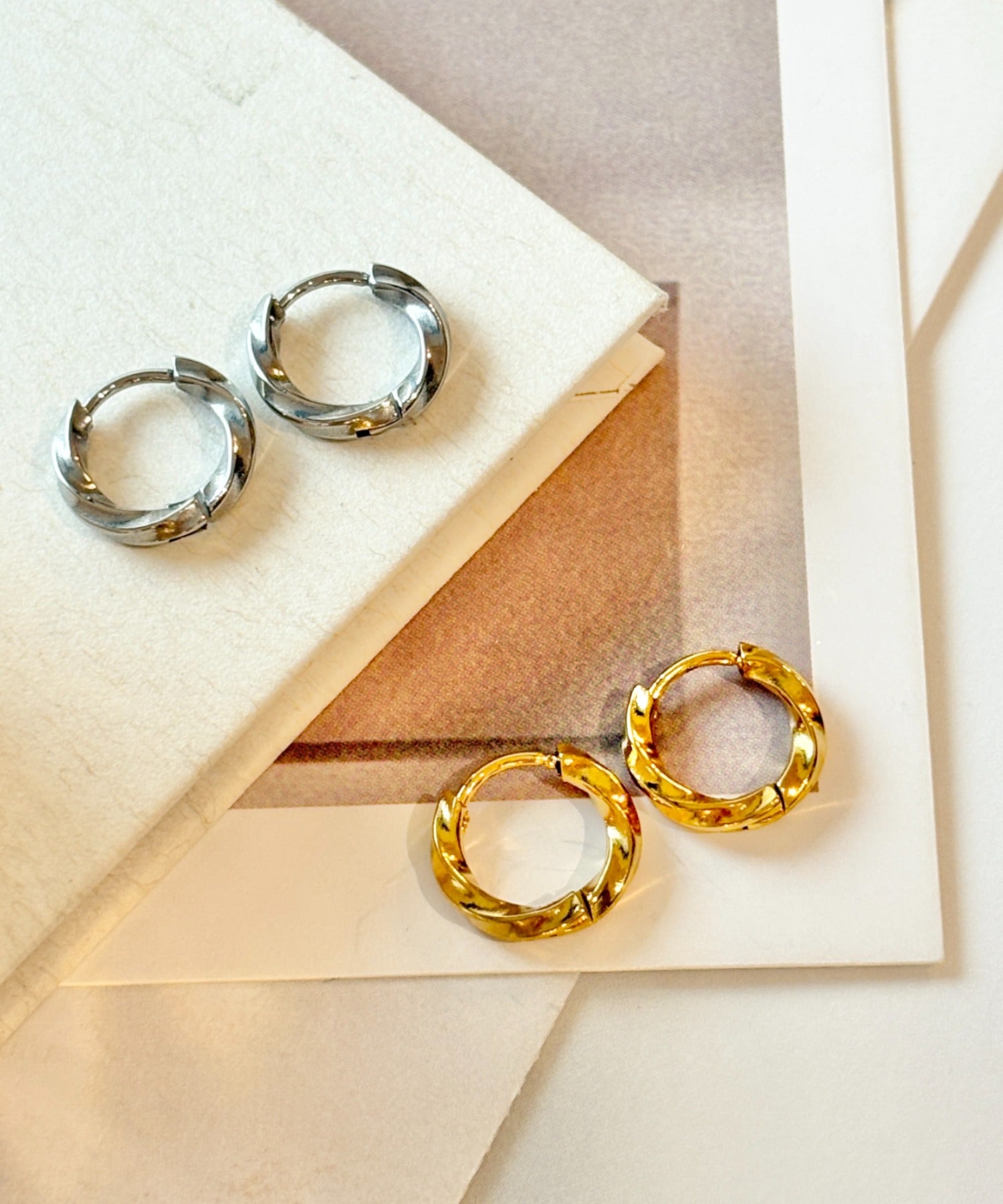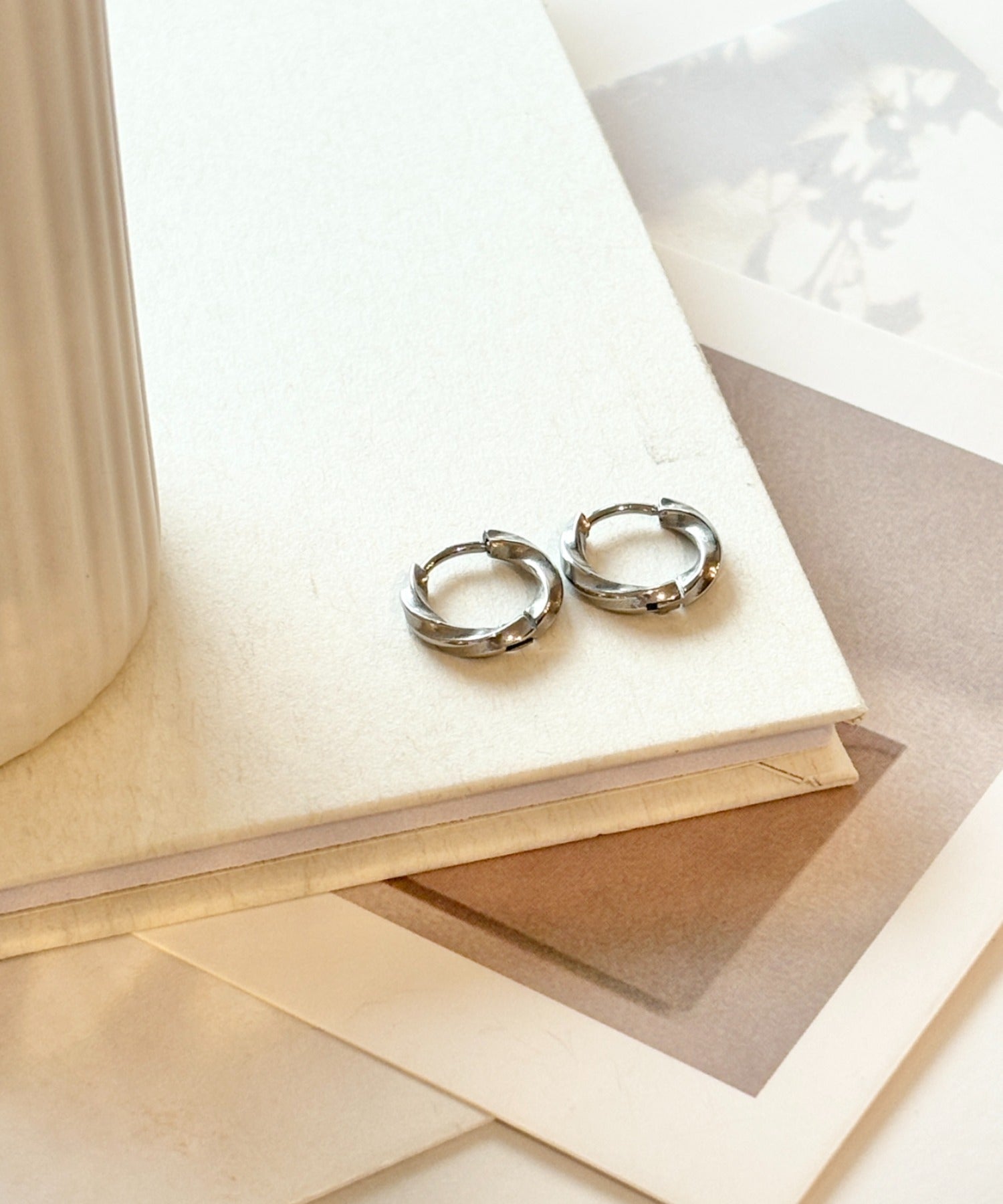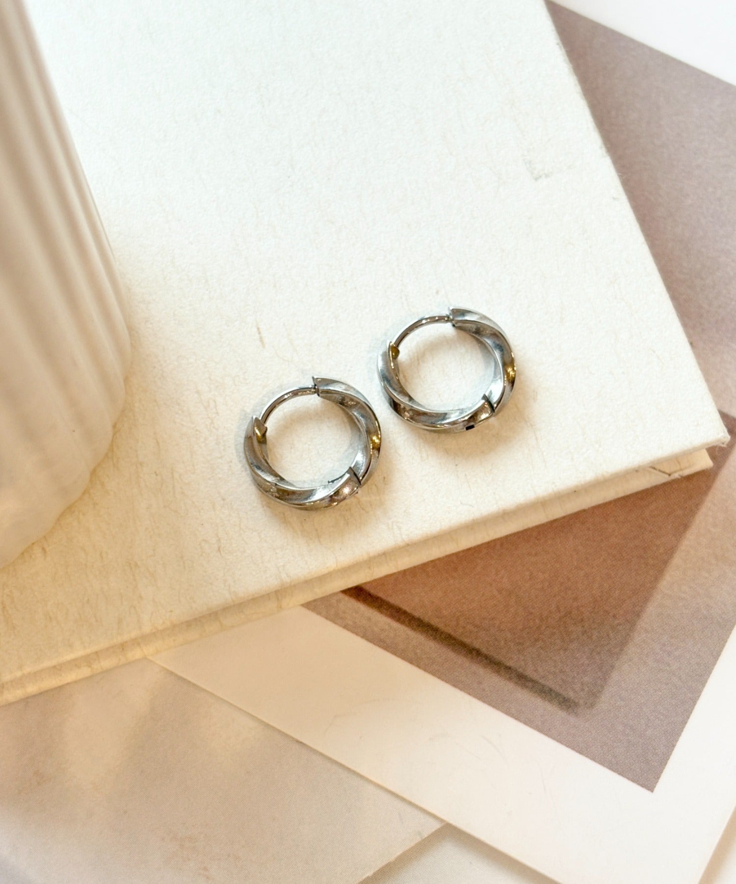【 金属アレルギー対応 】ツイスト ミニフープピアス サージカルステンレス(両耳用)