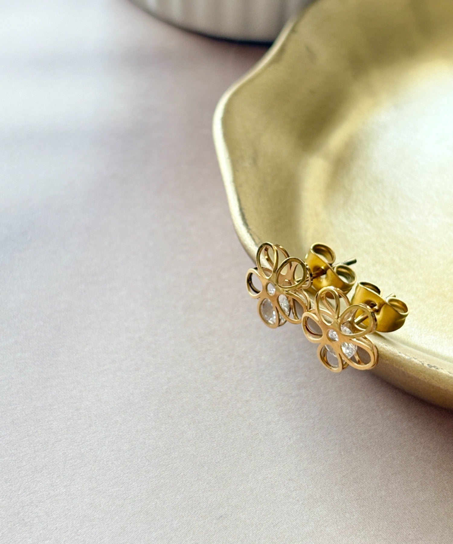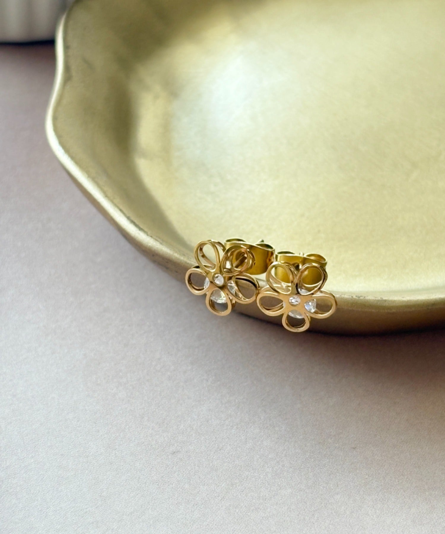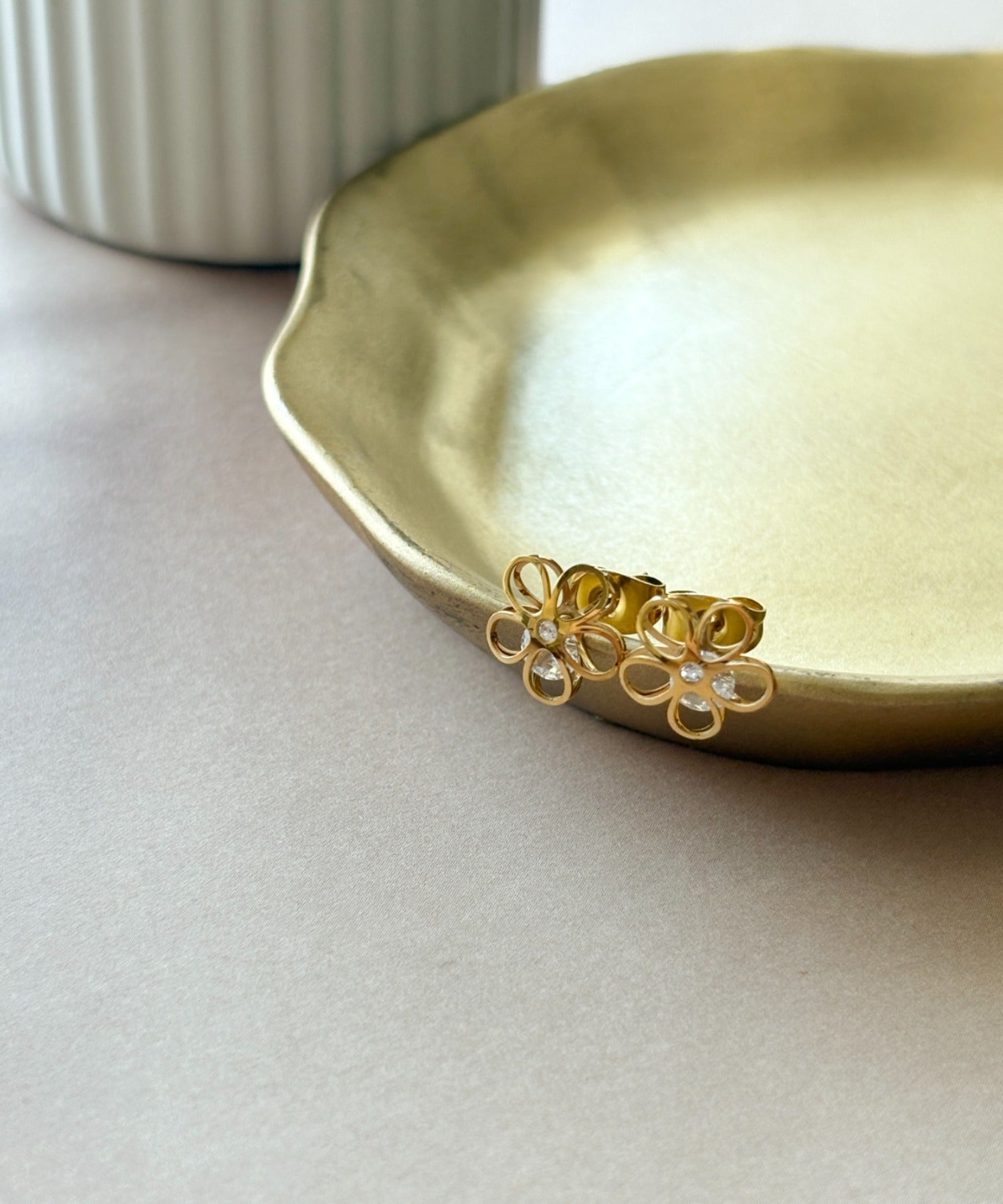 【 金属アレルギー対応 】フラワービジューピアス サージカルステンレス(両耳用)