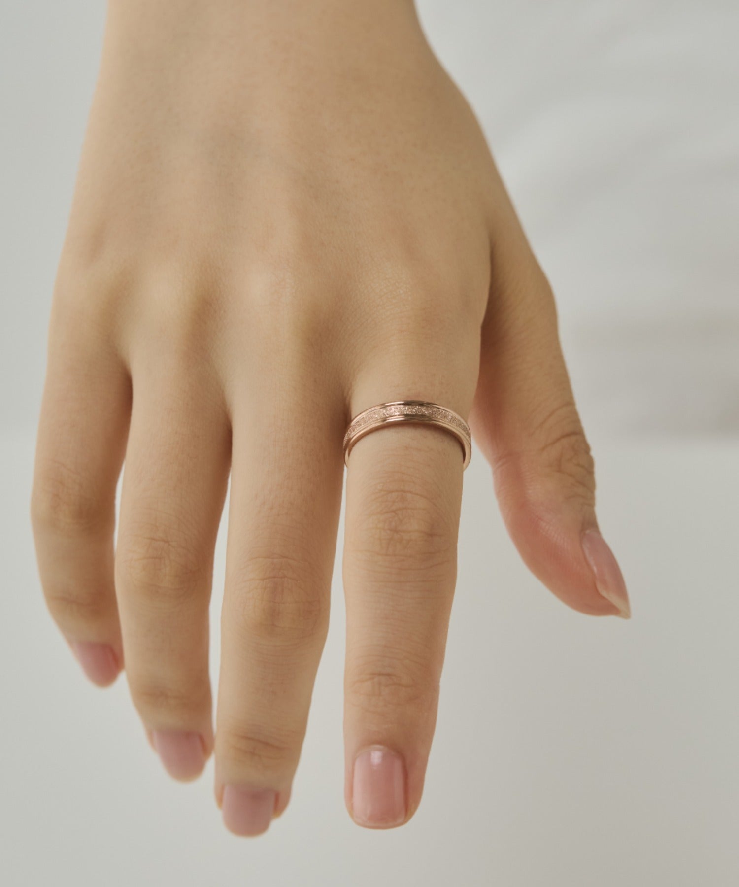 リングの上品な輝きが指もとを優美に照らしてくれます◎