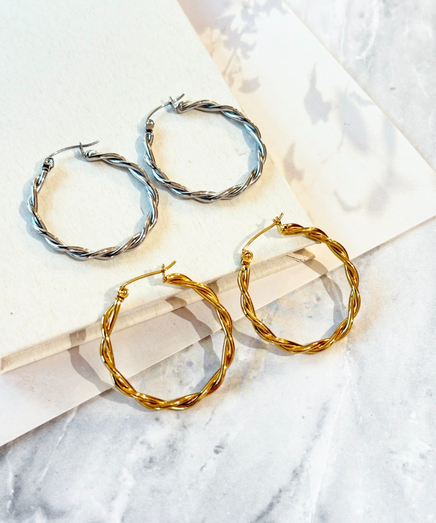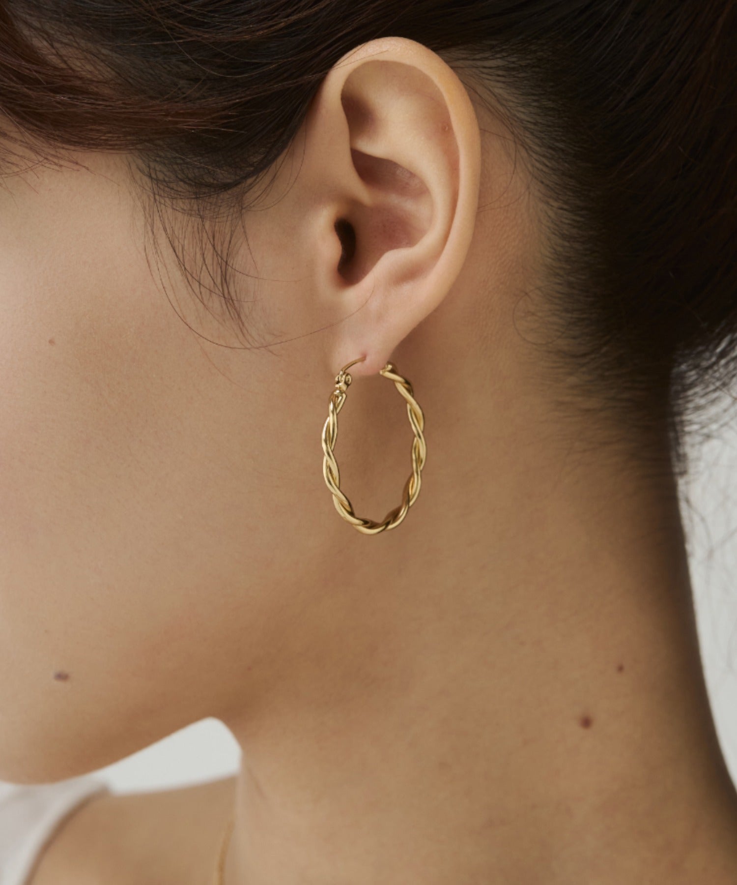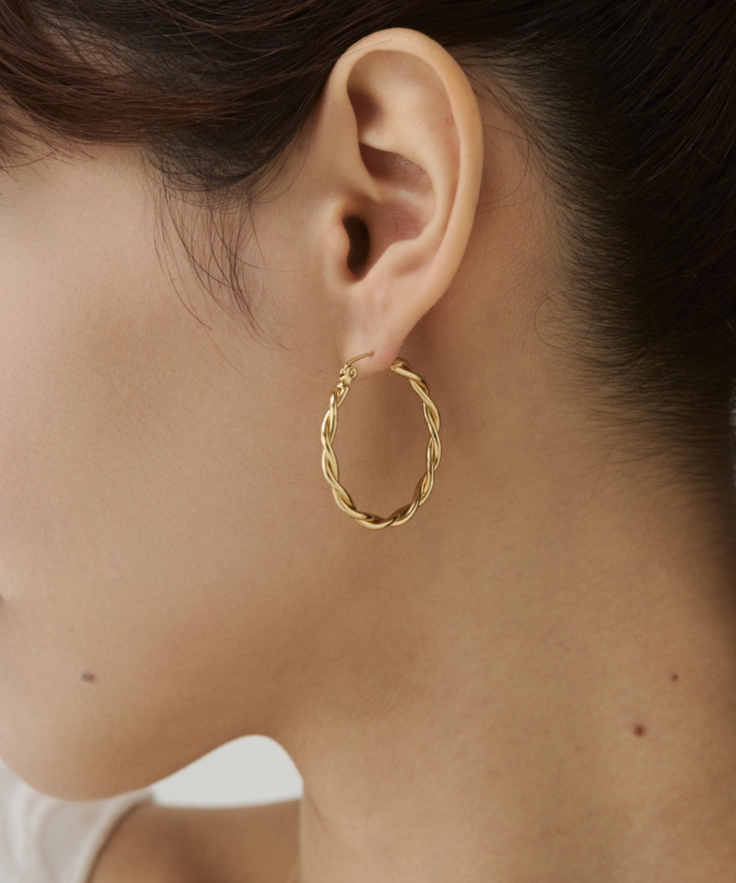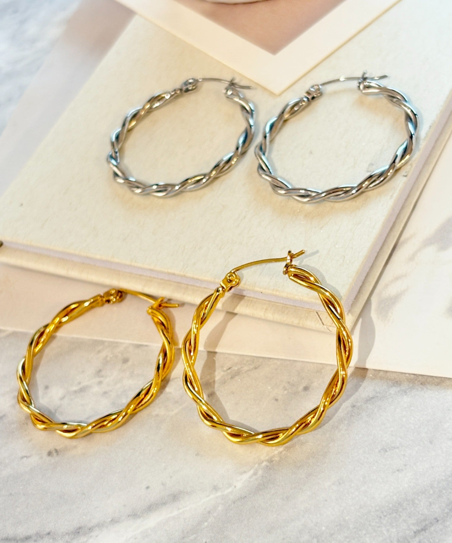 【 金属アレルギー対応 】ツイストフープピアス サージカルステンレス(両耳用)