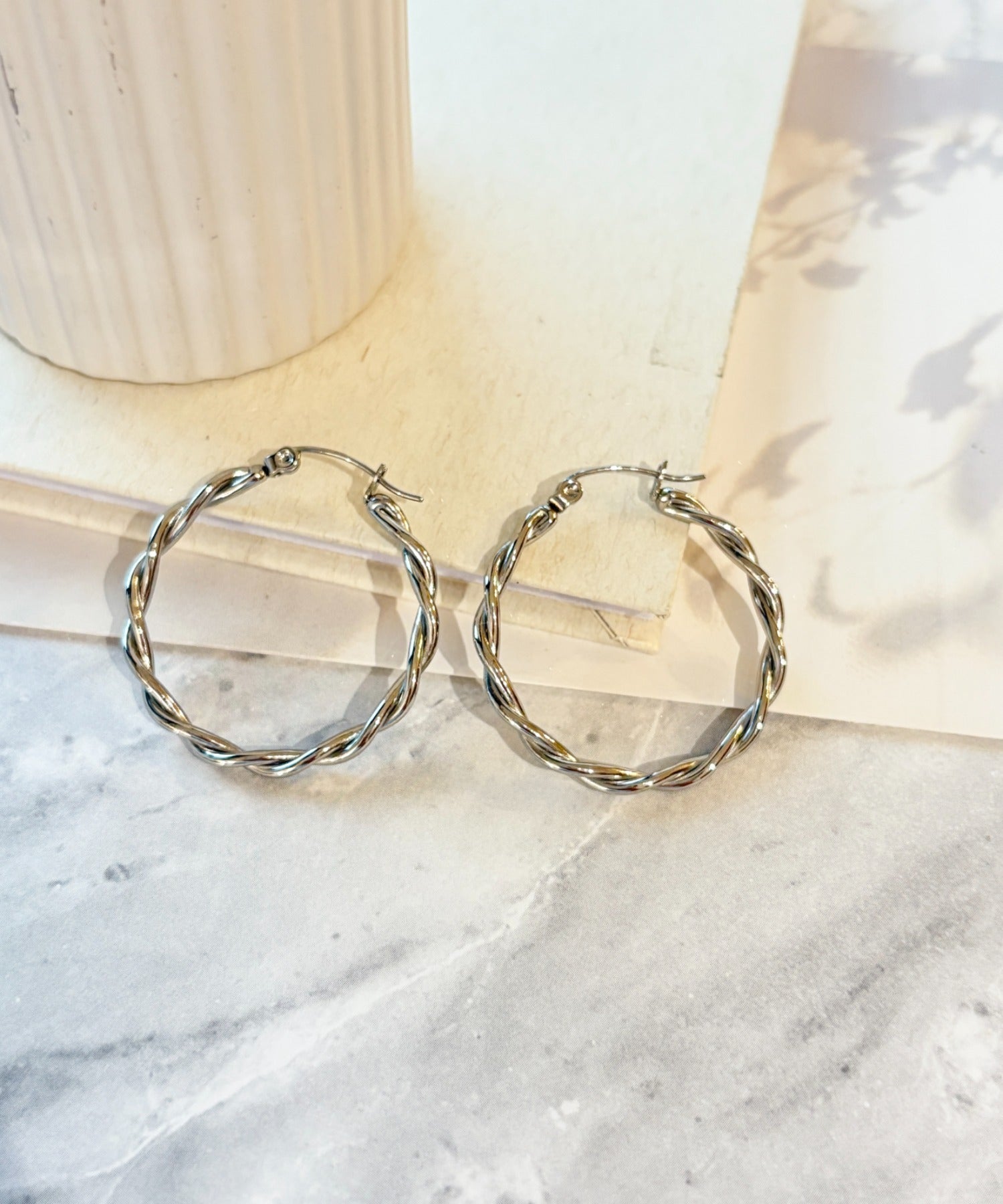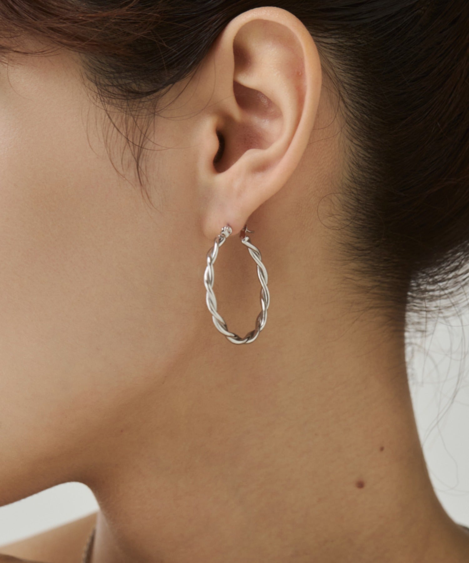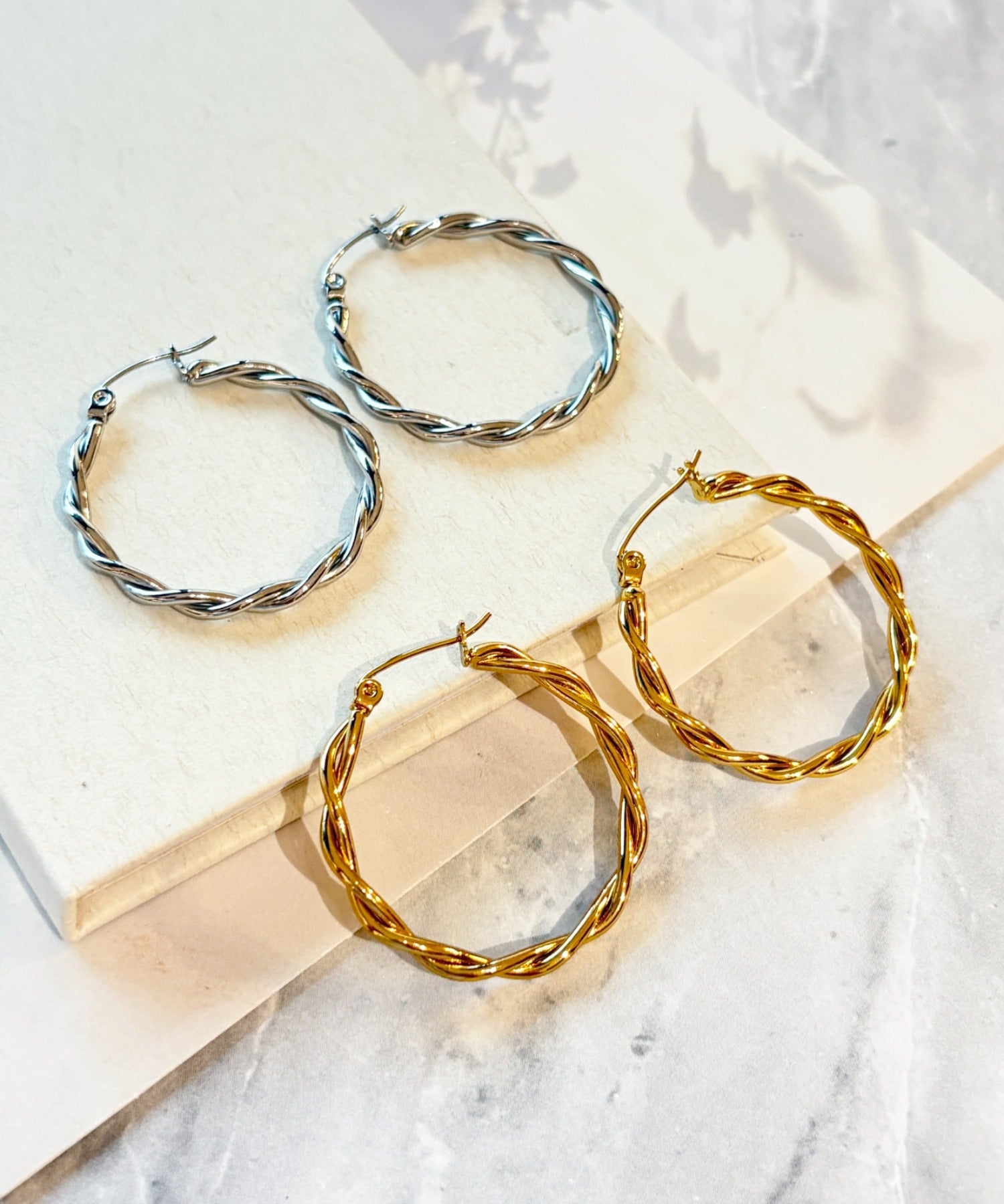 【 金属アレルギー対応 】ツイストフープピアス サージカルステンレス(両耳用)