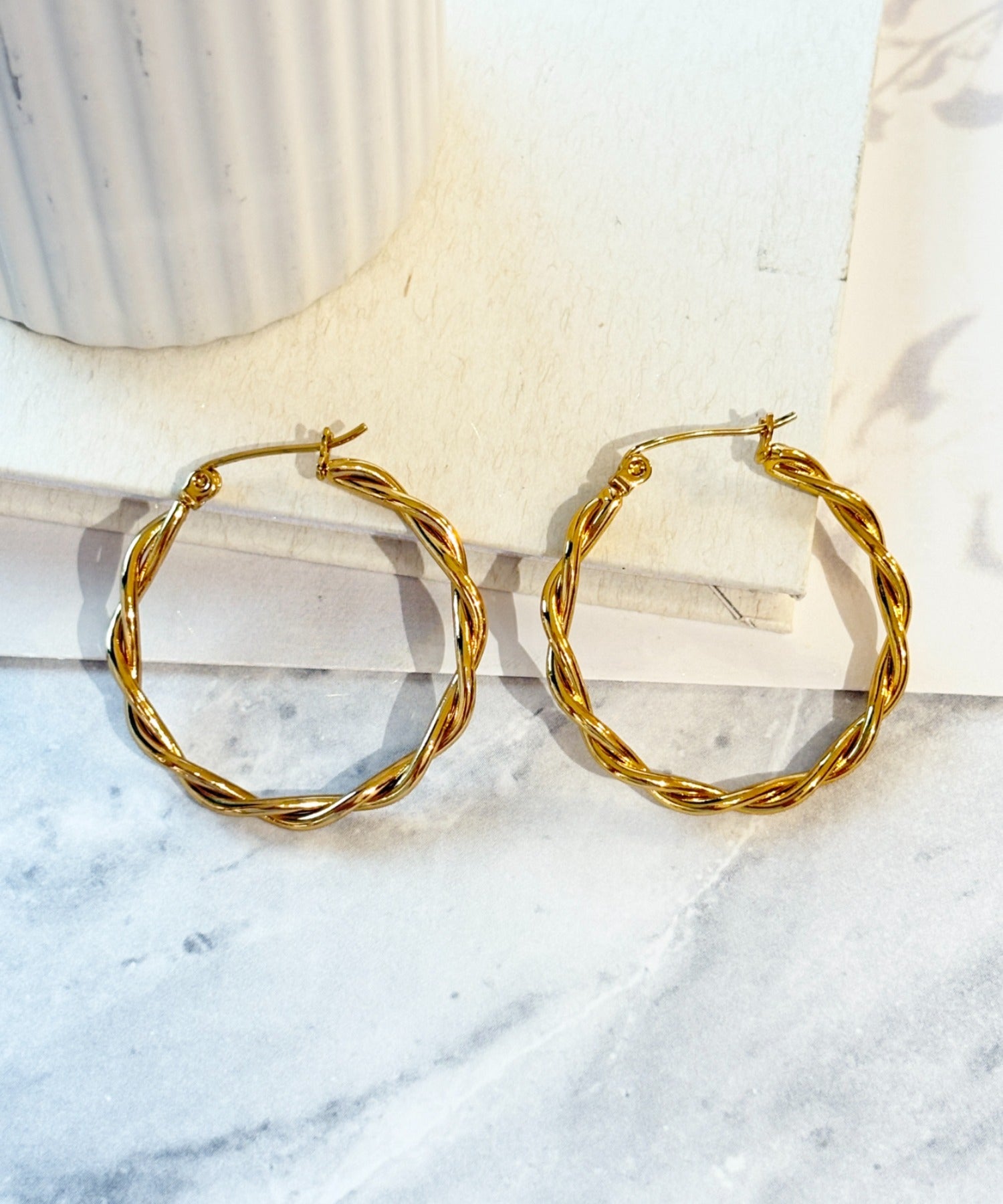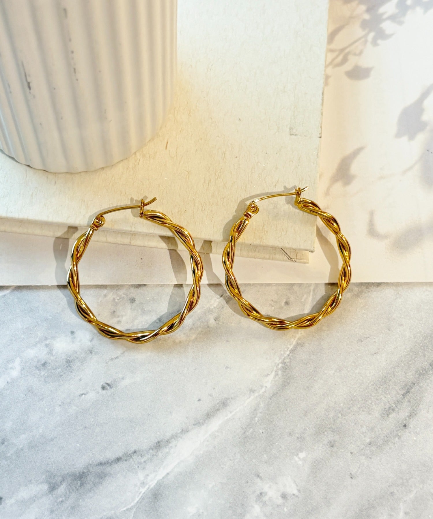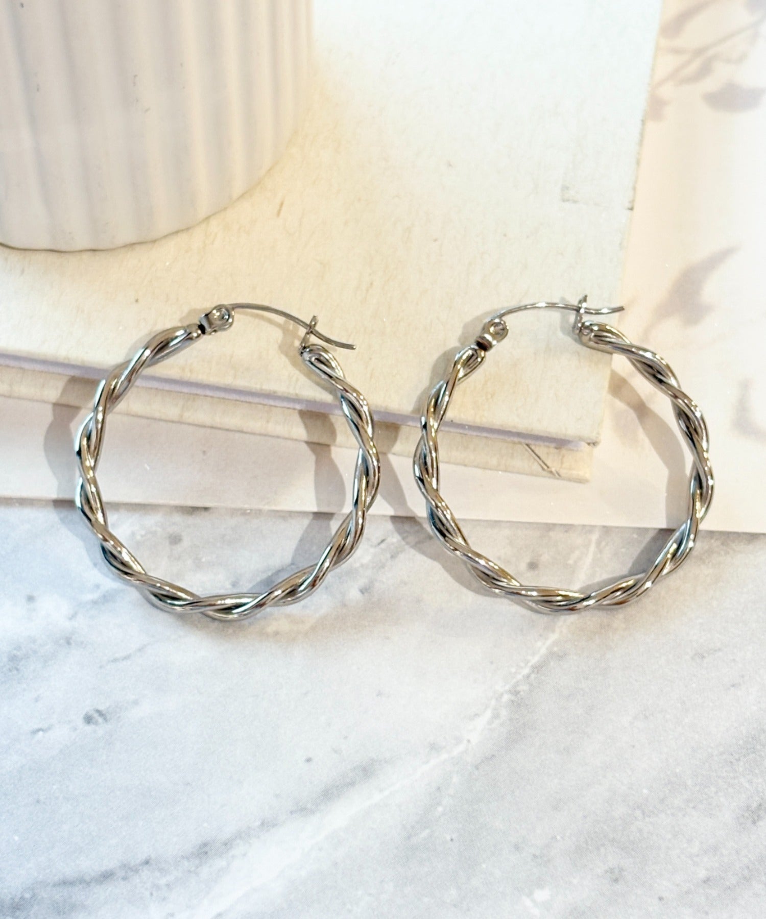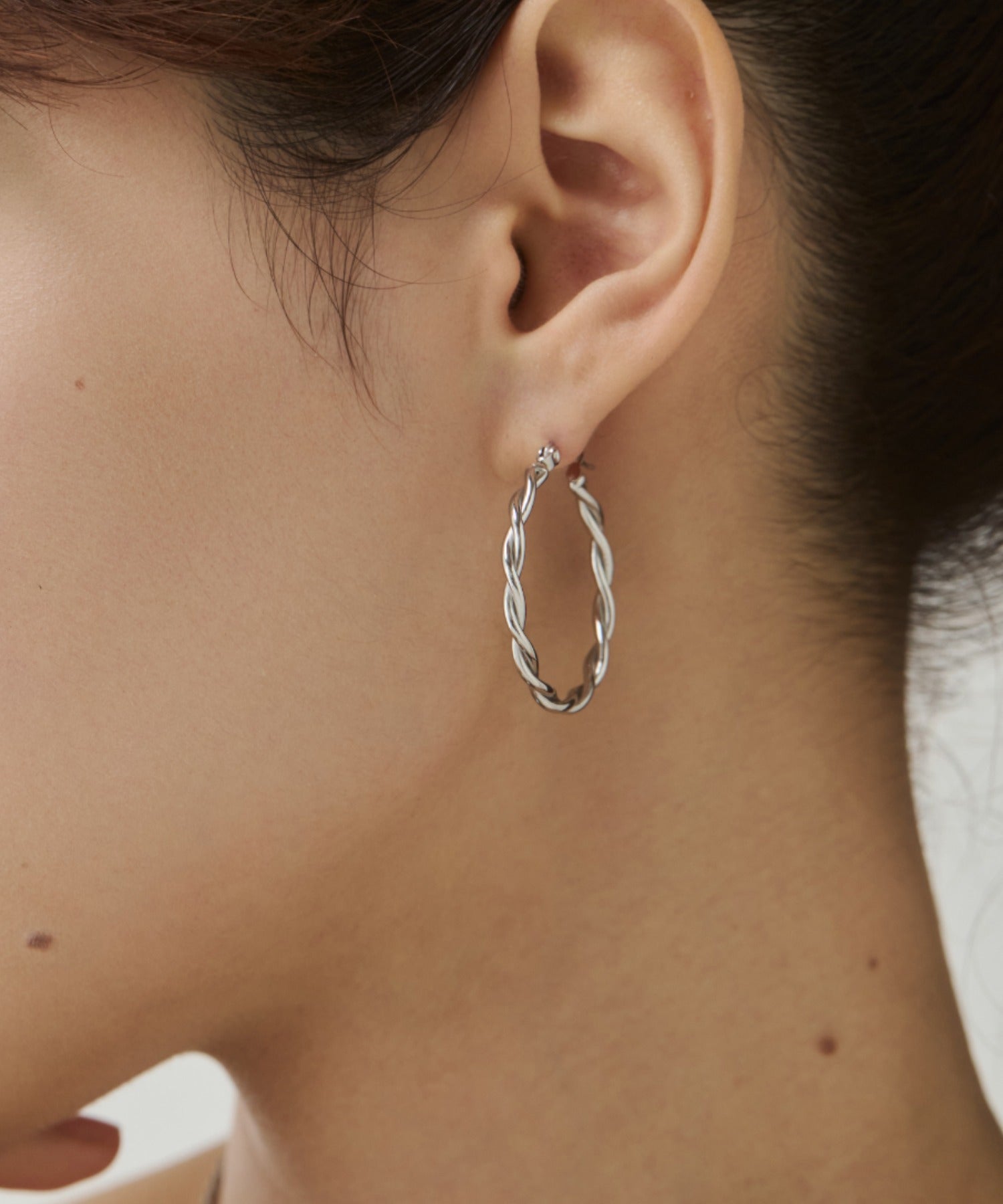 【 金属アレルギー対応 】ツイストフープピアス サージカルステンレス(両耳用)