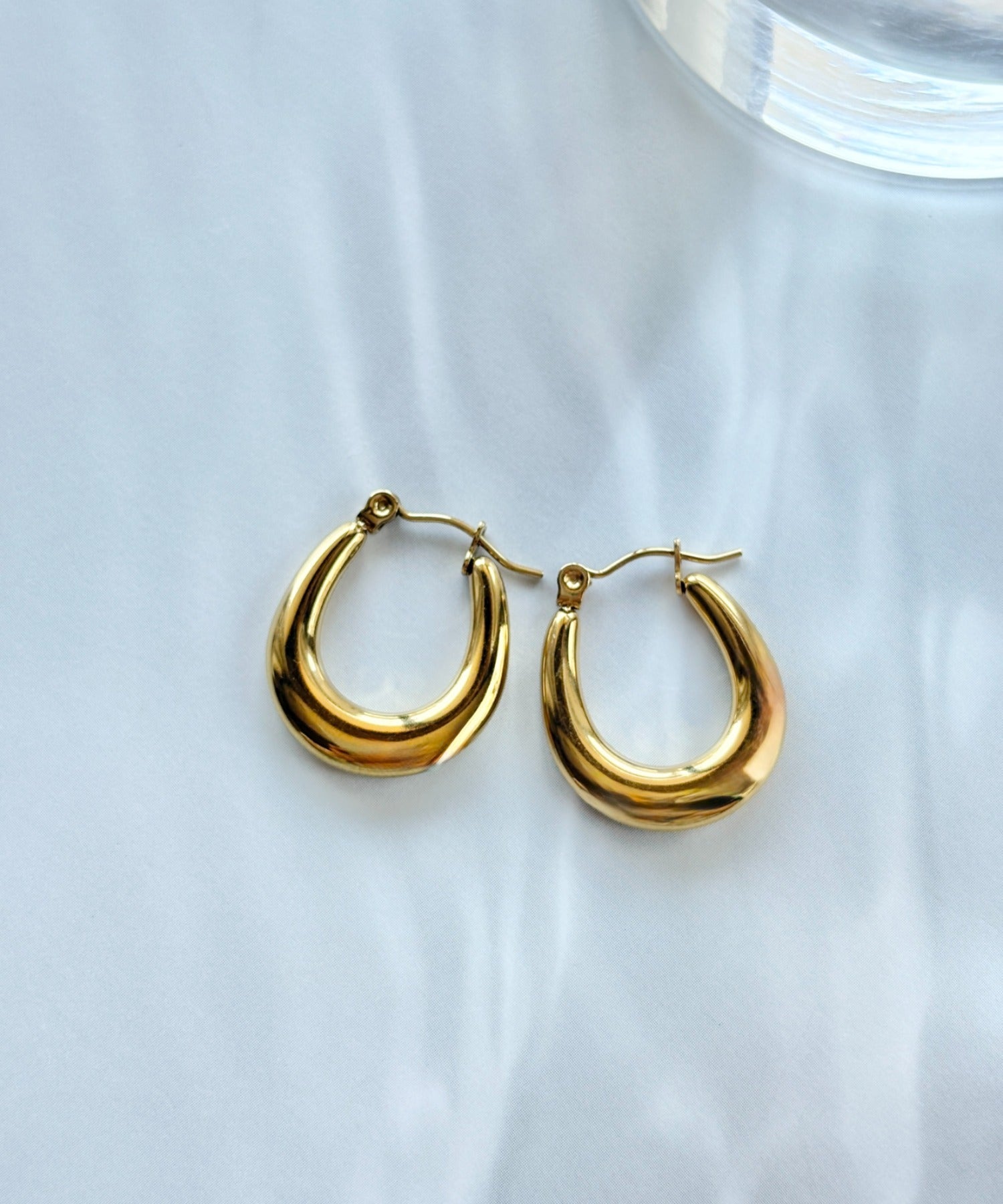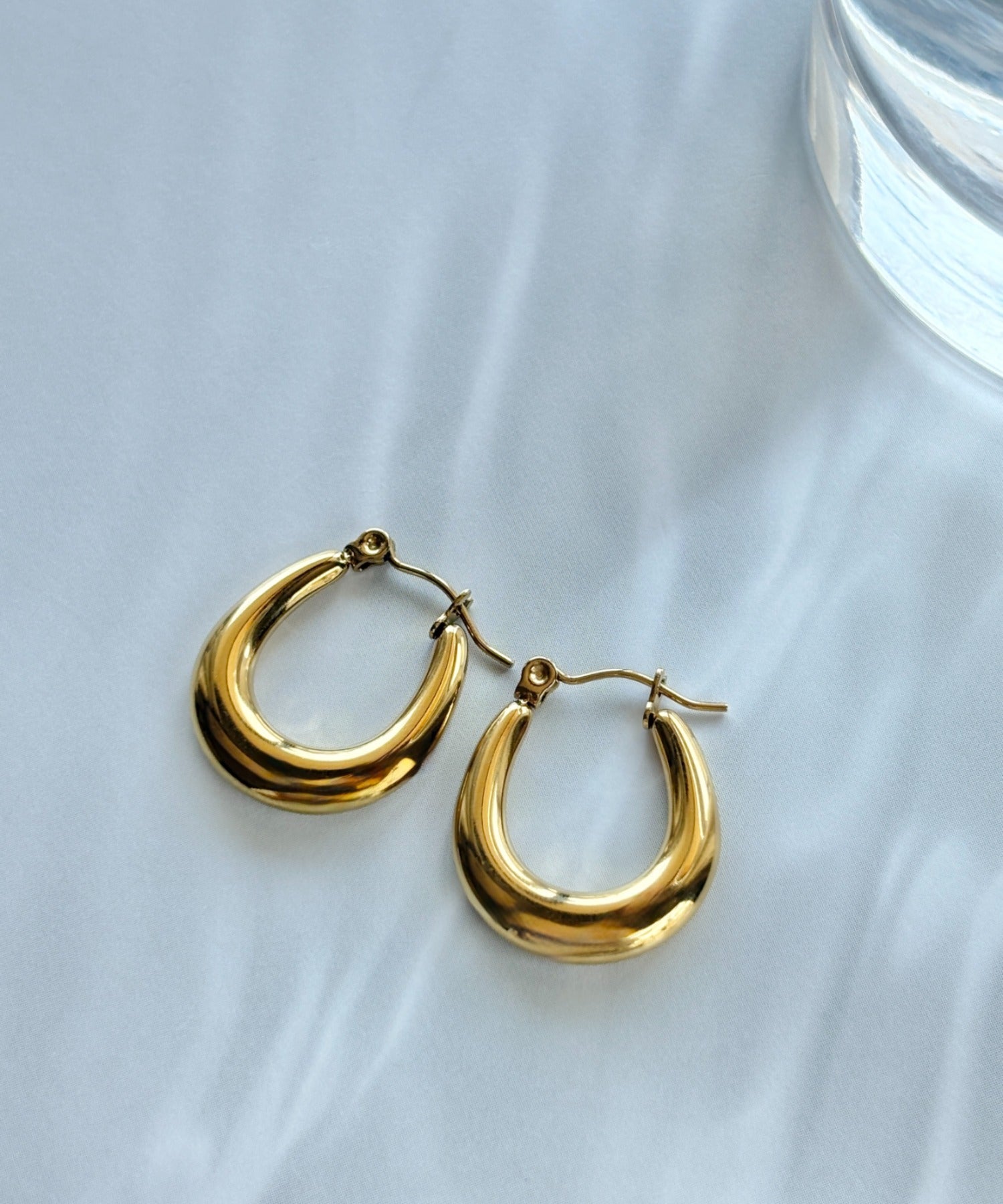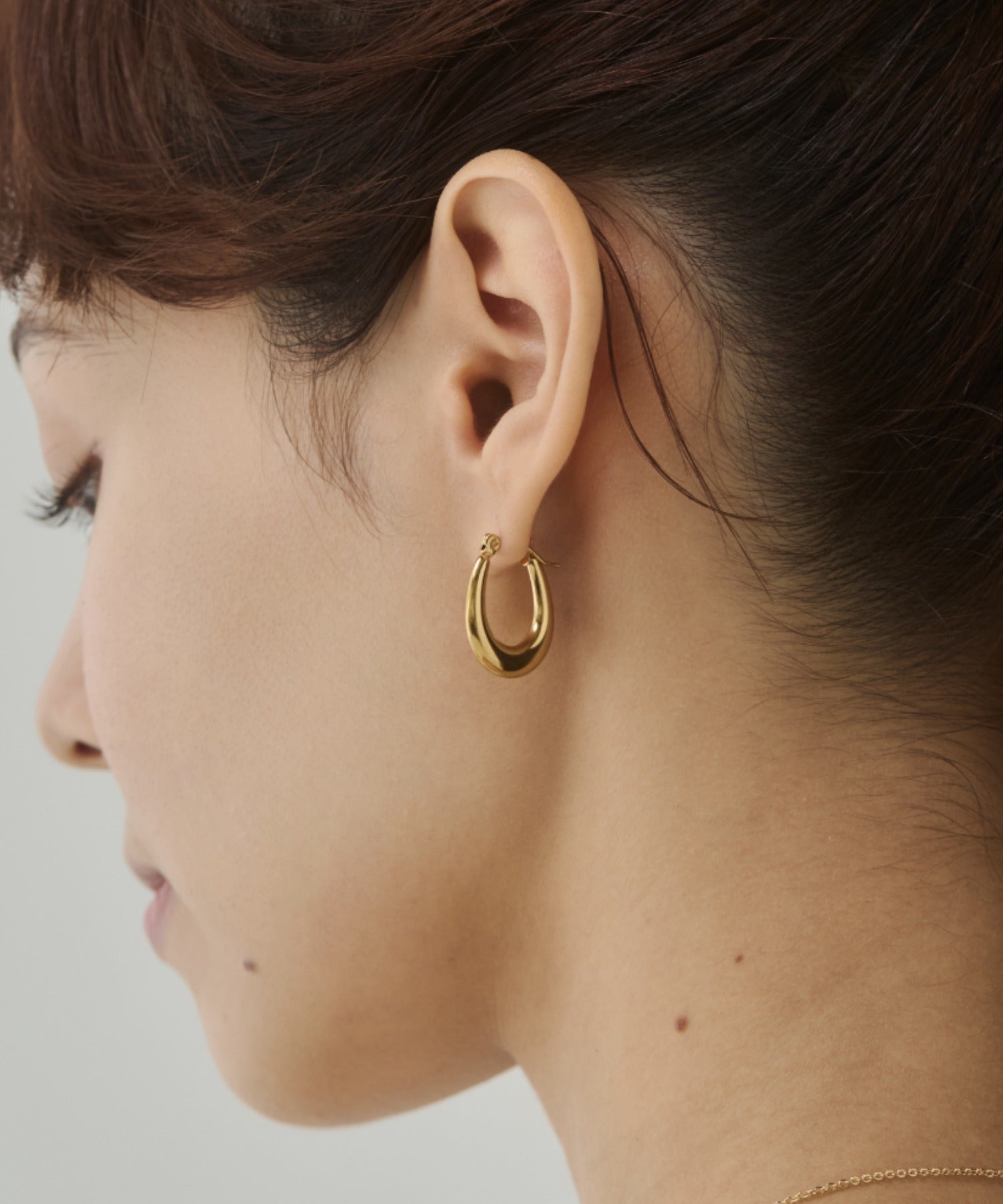 付けた時のバランスに最大限こだわったオーバルフープピアス(両耳用)。