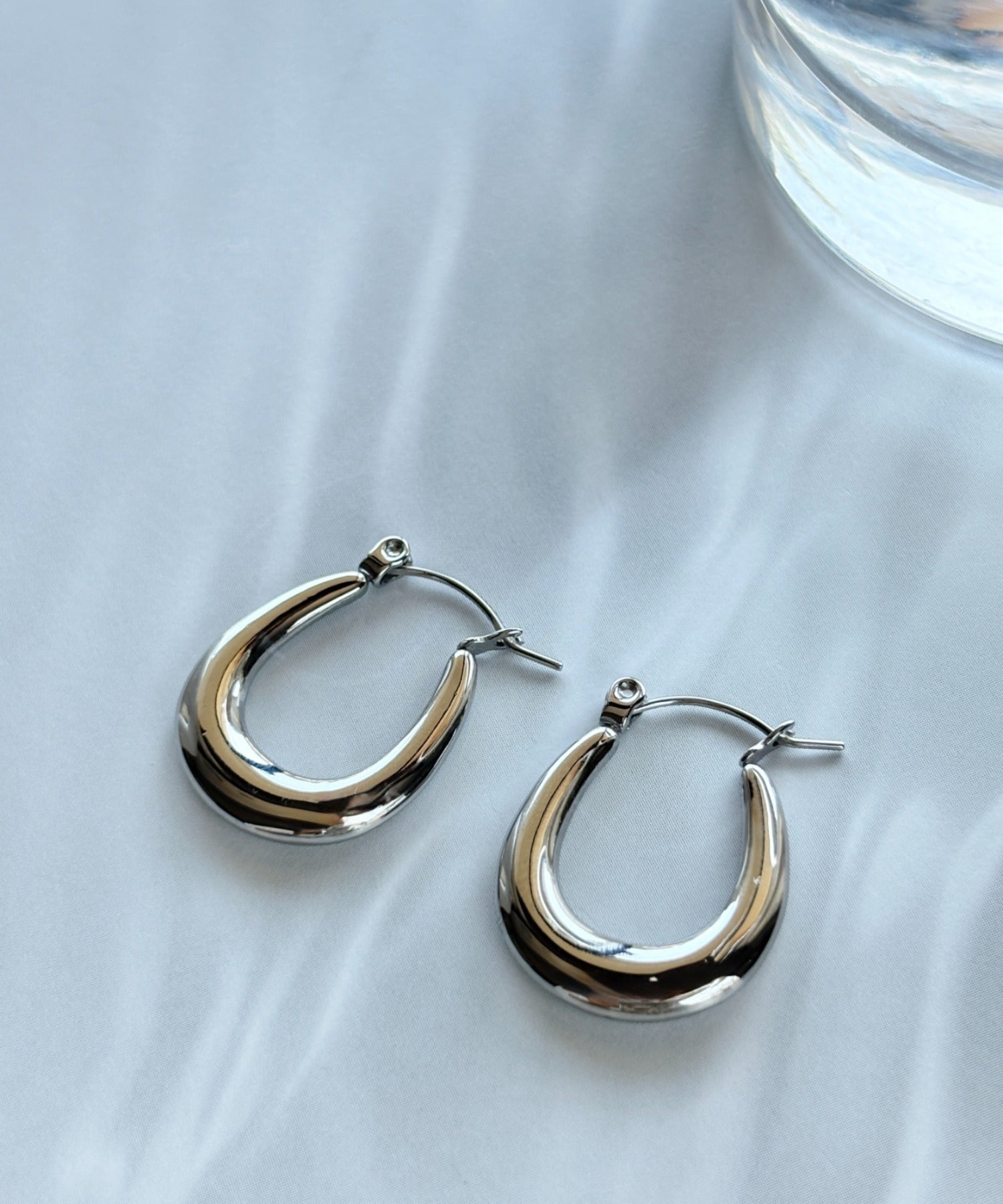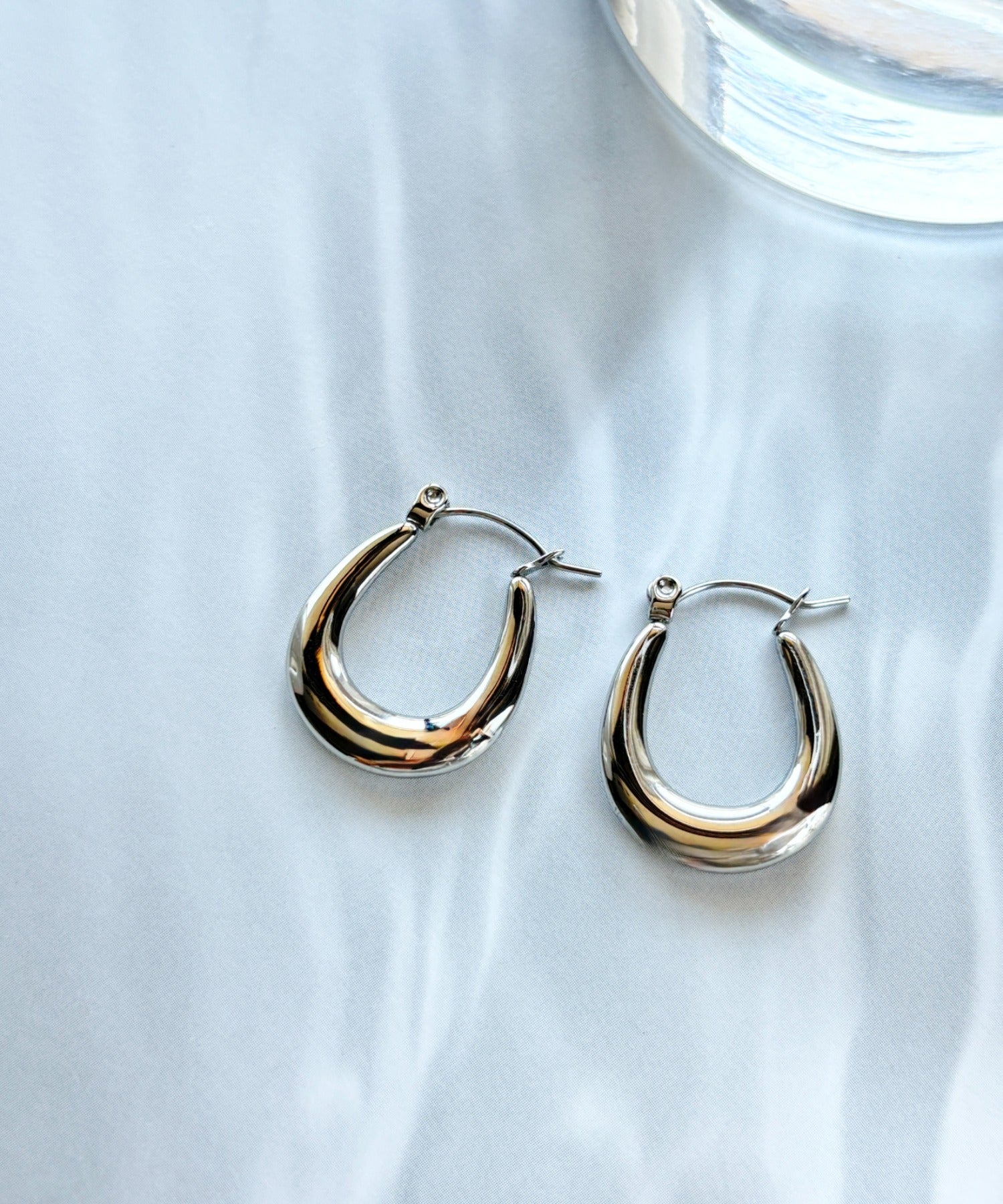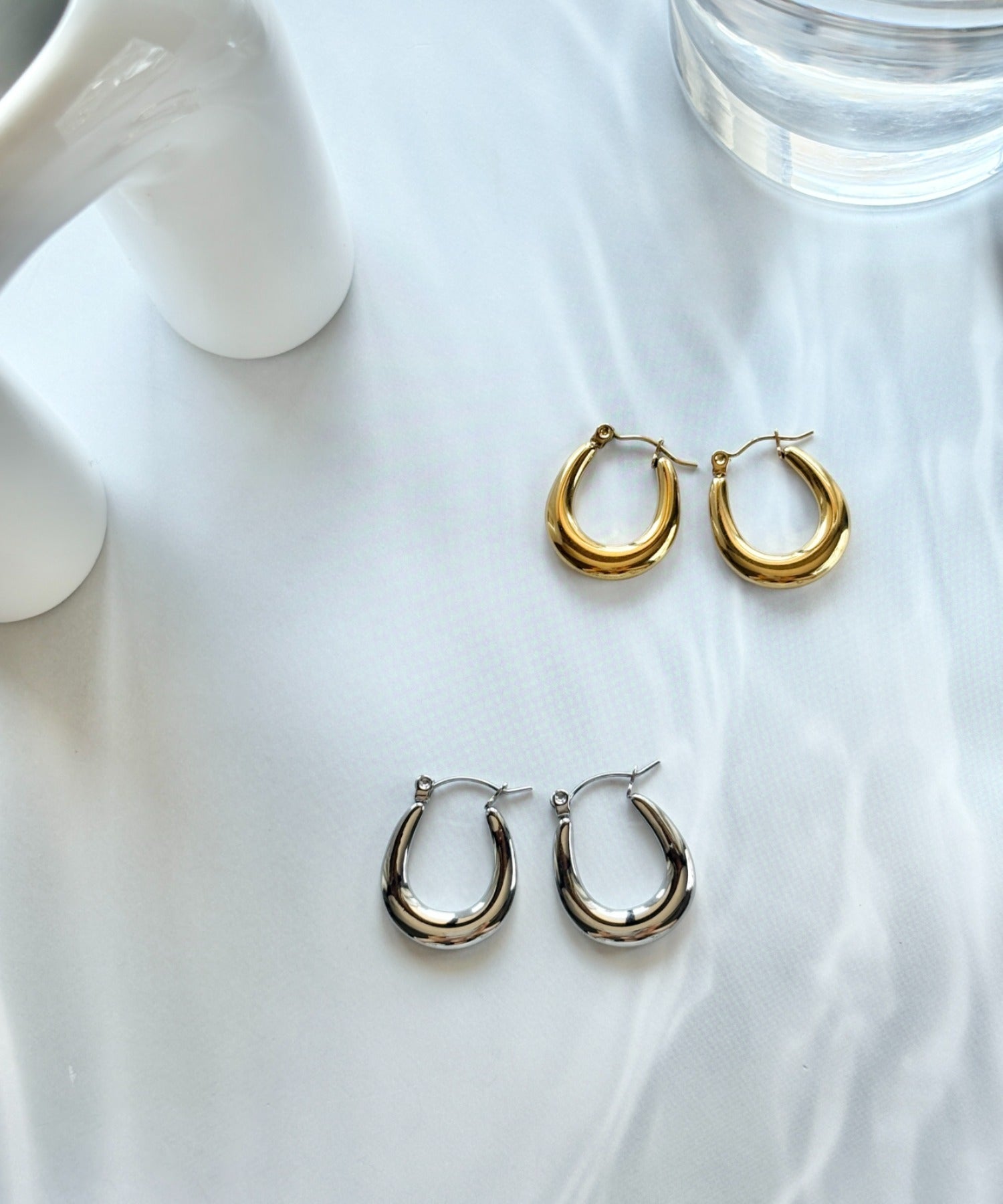 【 金属アレルギー対応 】オーバルフープピアス サージカルステンレス(両耳用)