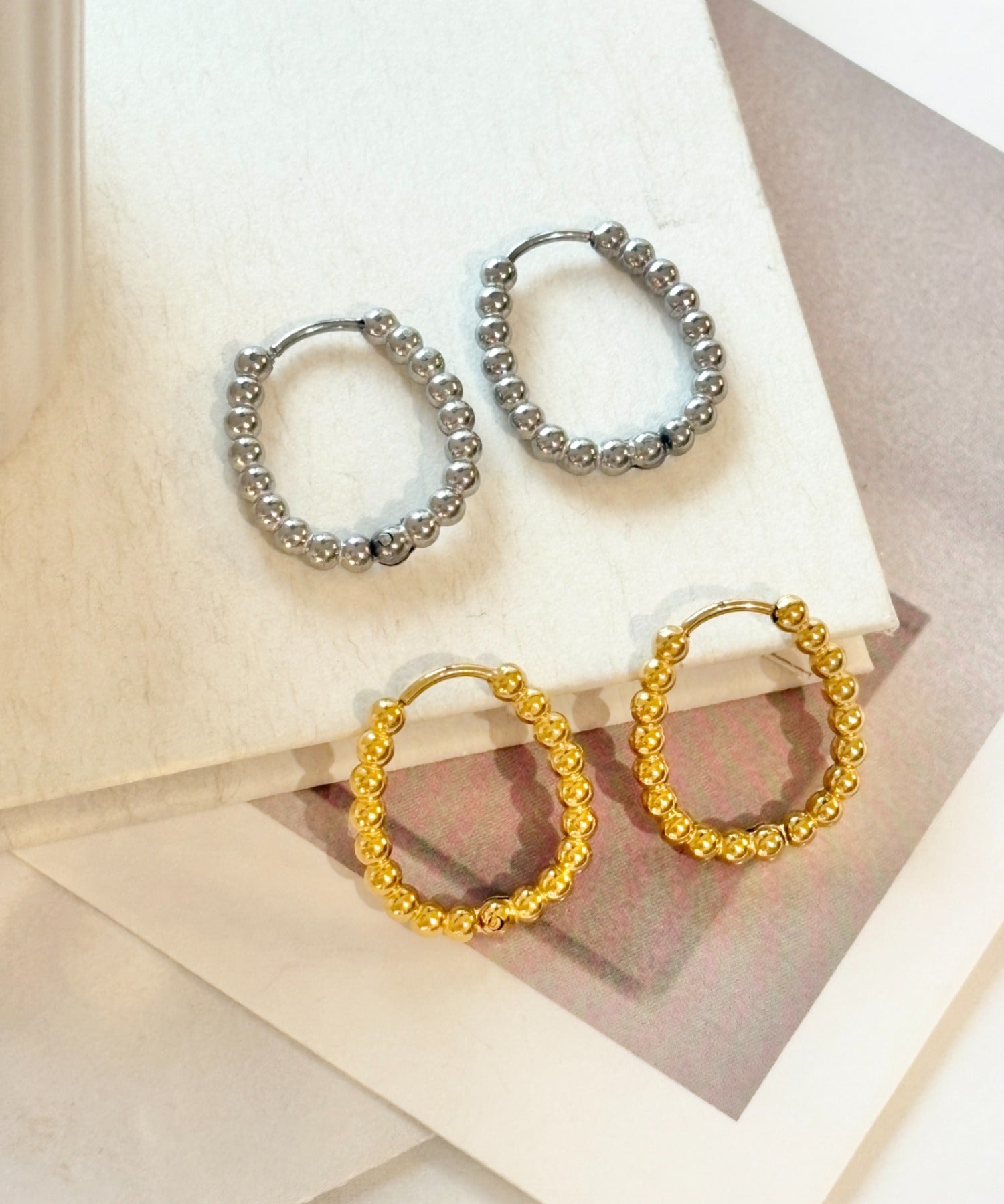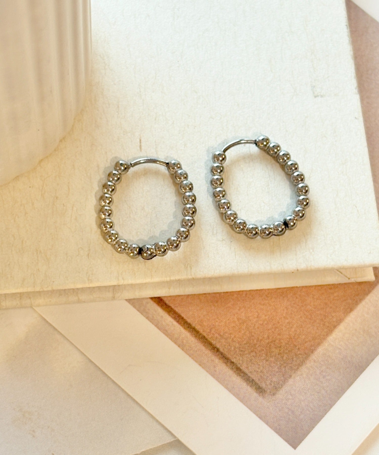 【 金属アレルギー対応 】ボールモチーフ フープピアス サージカルステンレス(両耳用)
