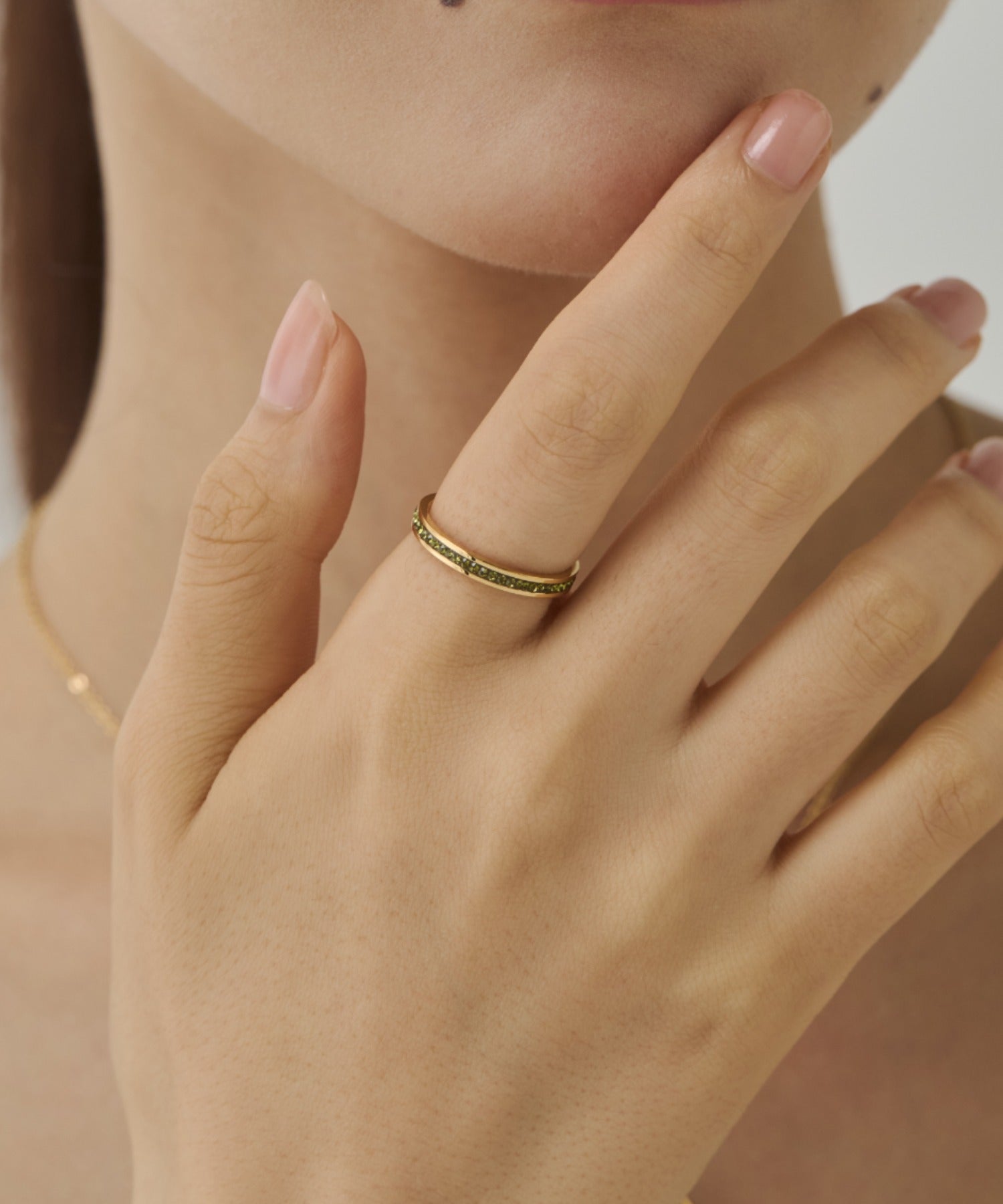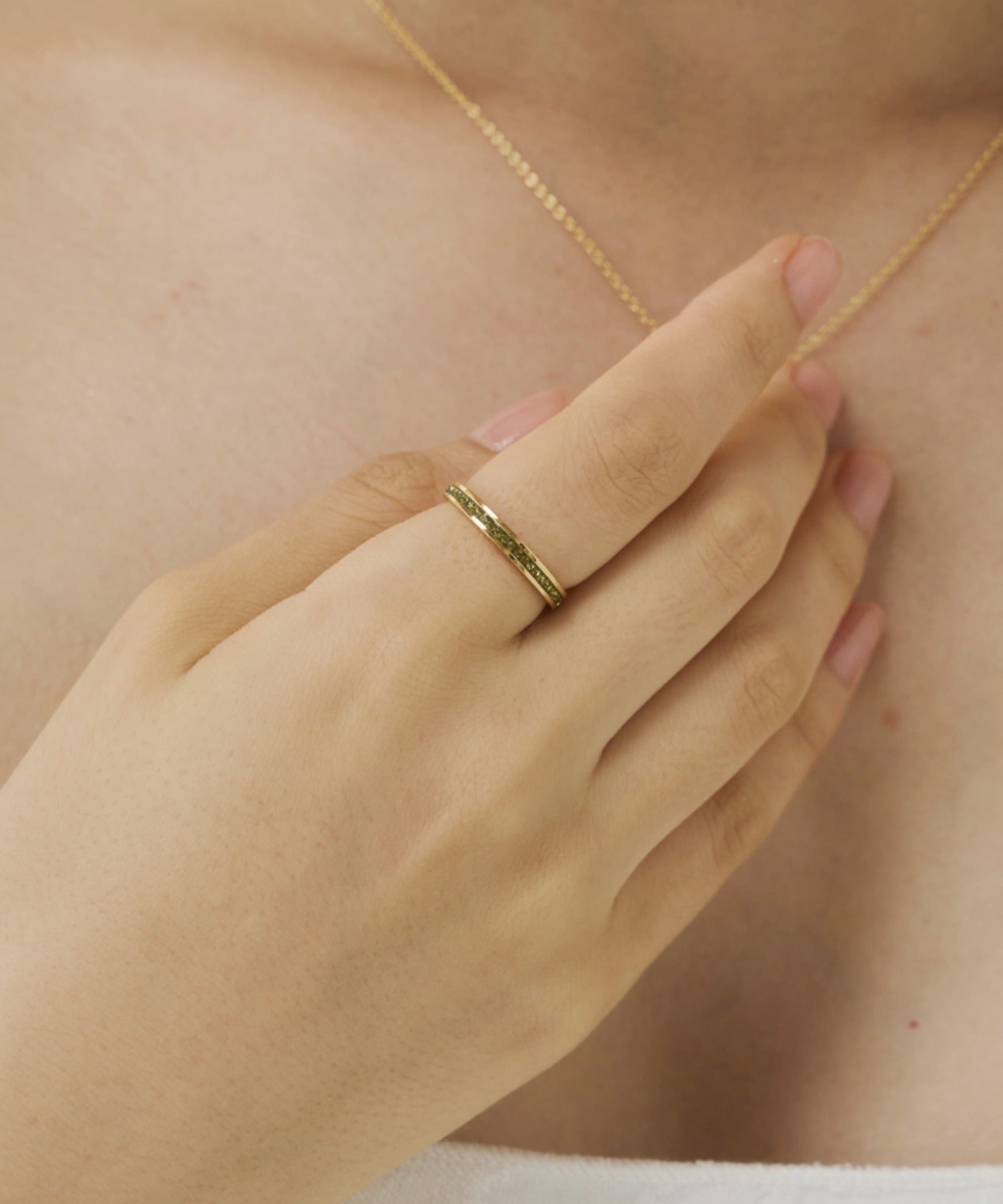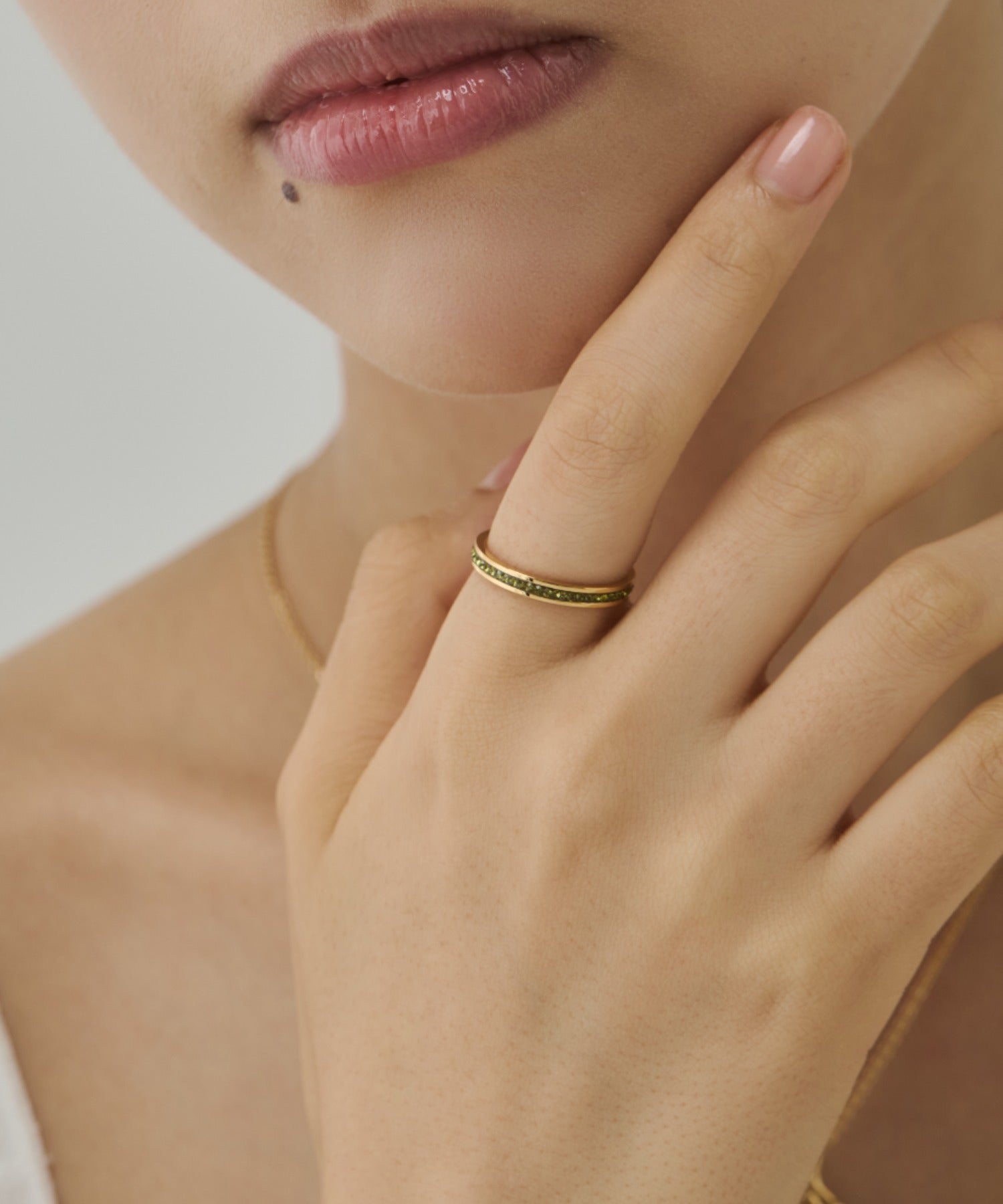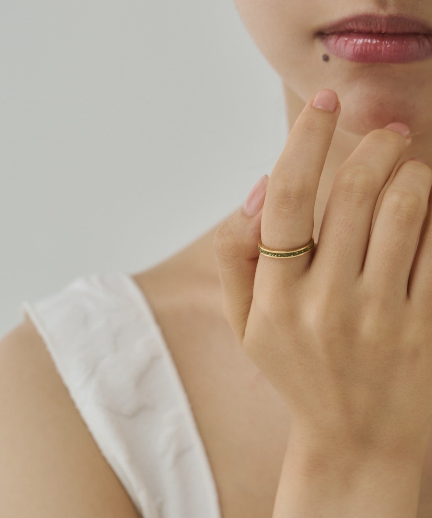 上品に光るリングが指もとを優美に照らしてくれるリング。