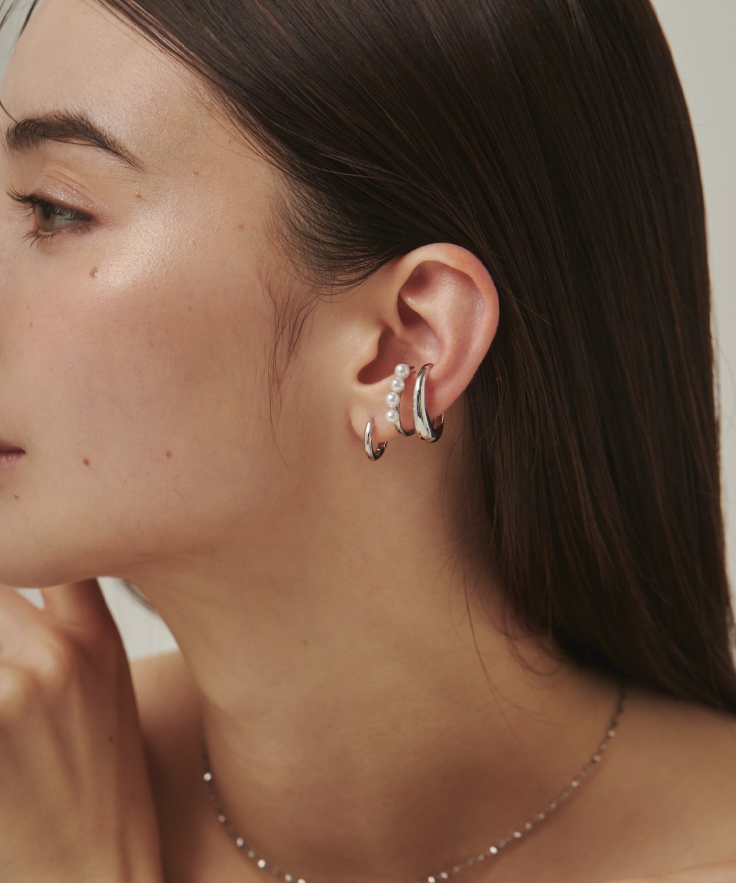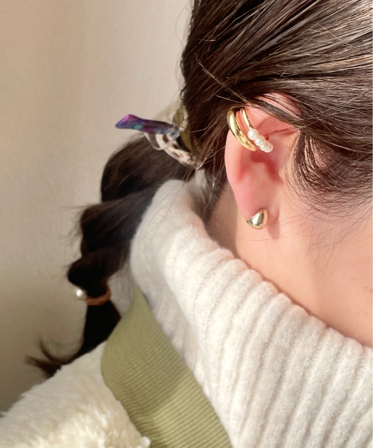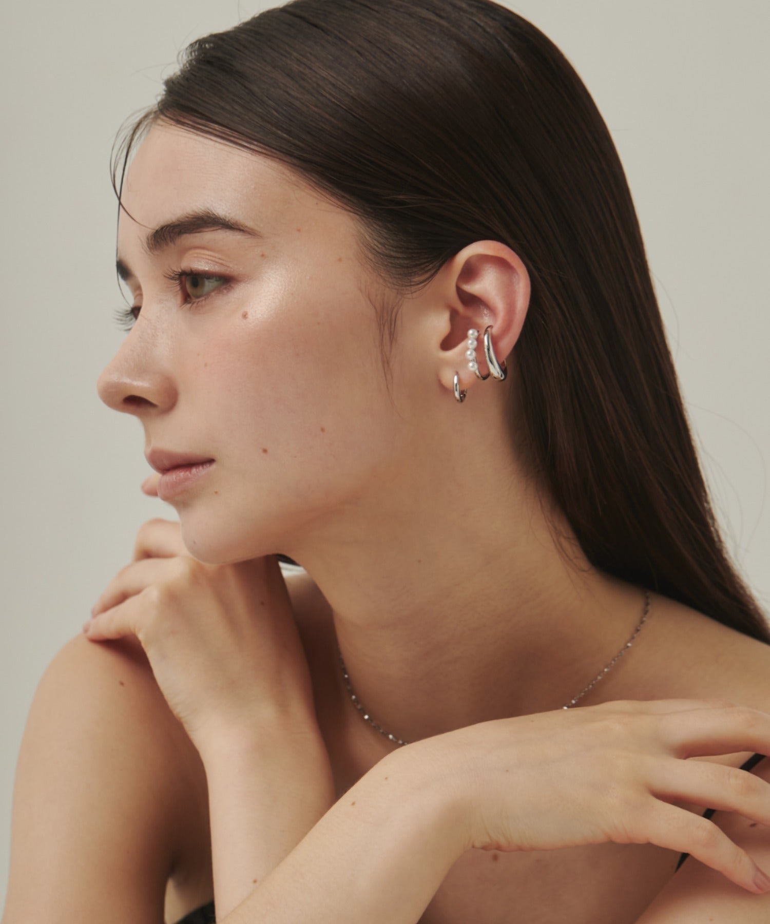 シンプルにイヤーカフを主役としたスタイルもおすすめ。