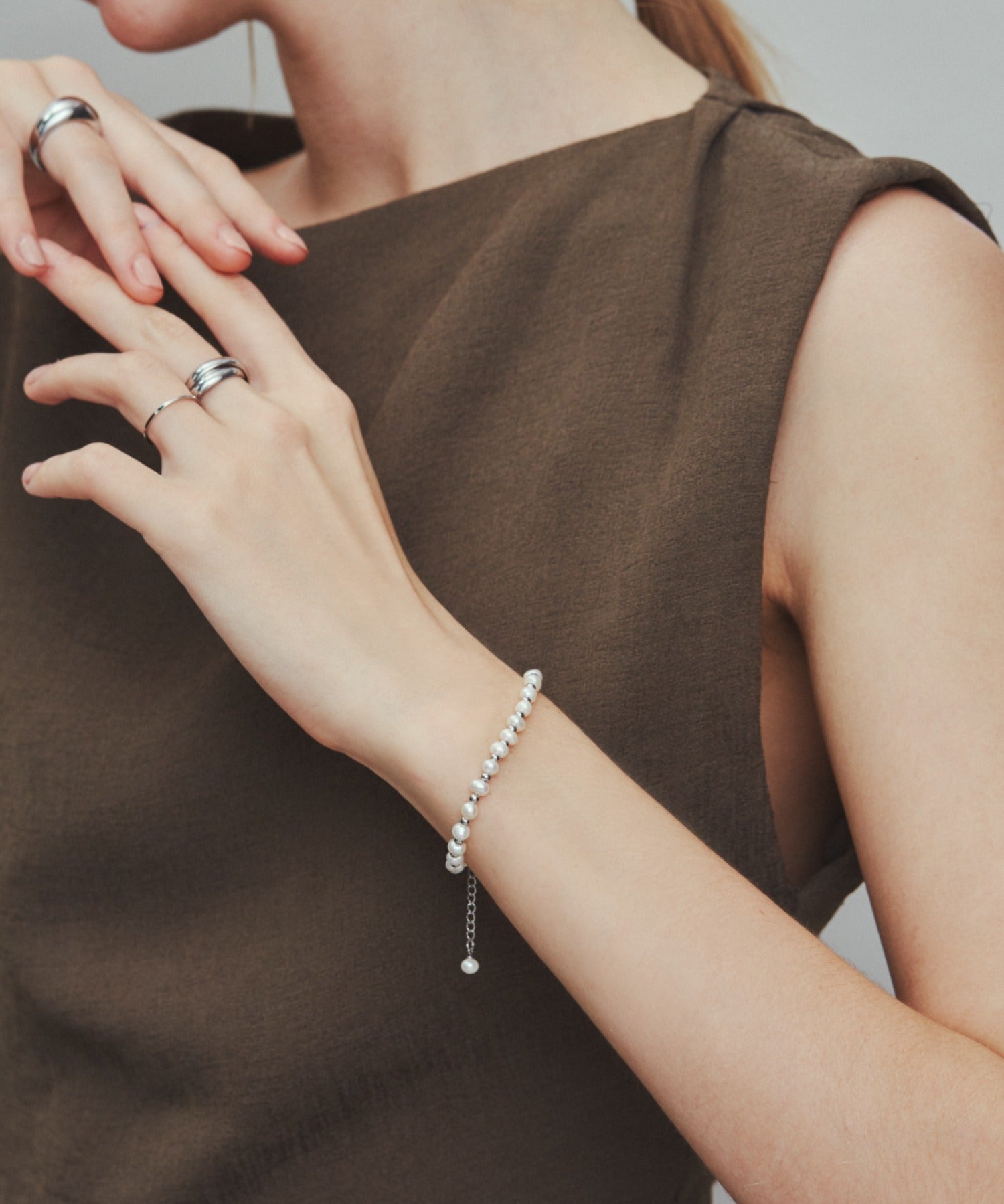 シンプルながらも付けたときのバランスにこだわったパールブレスレット。