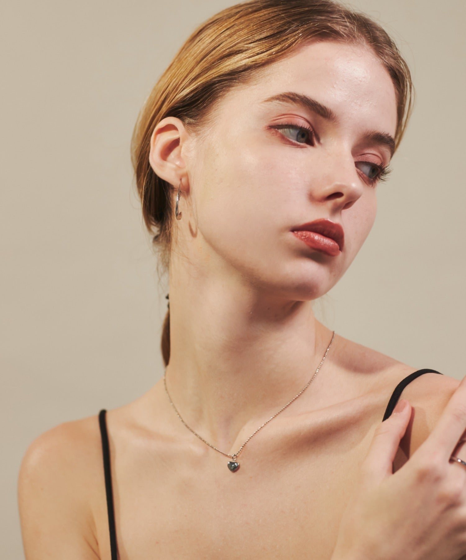 ミニハートモチーフが大人可愛い印象のネックレス。
