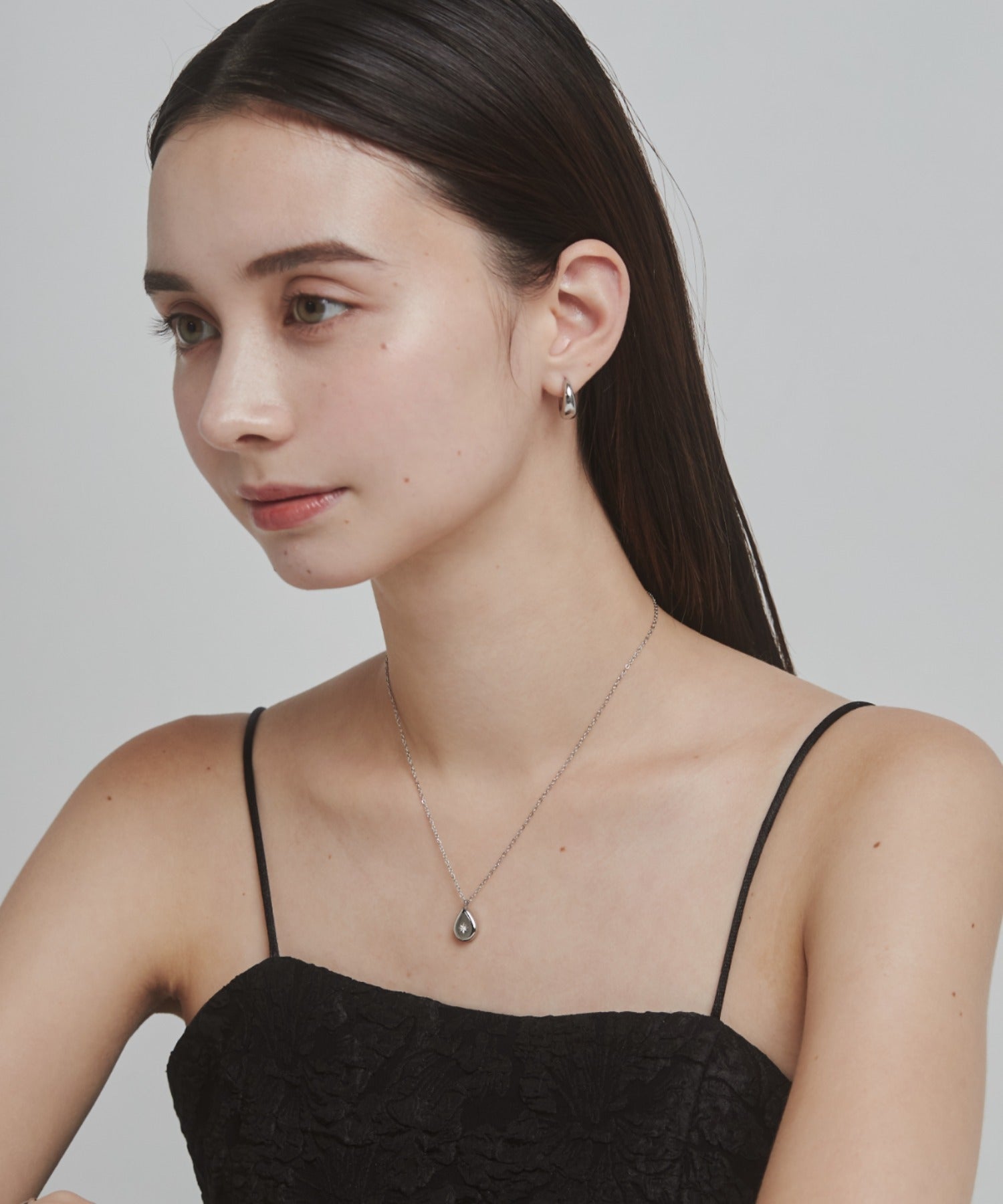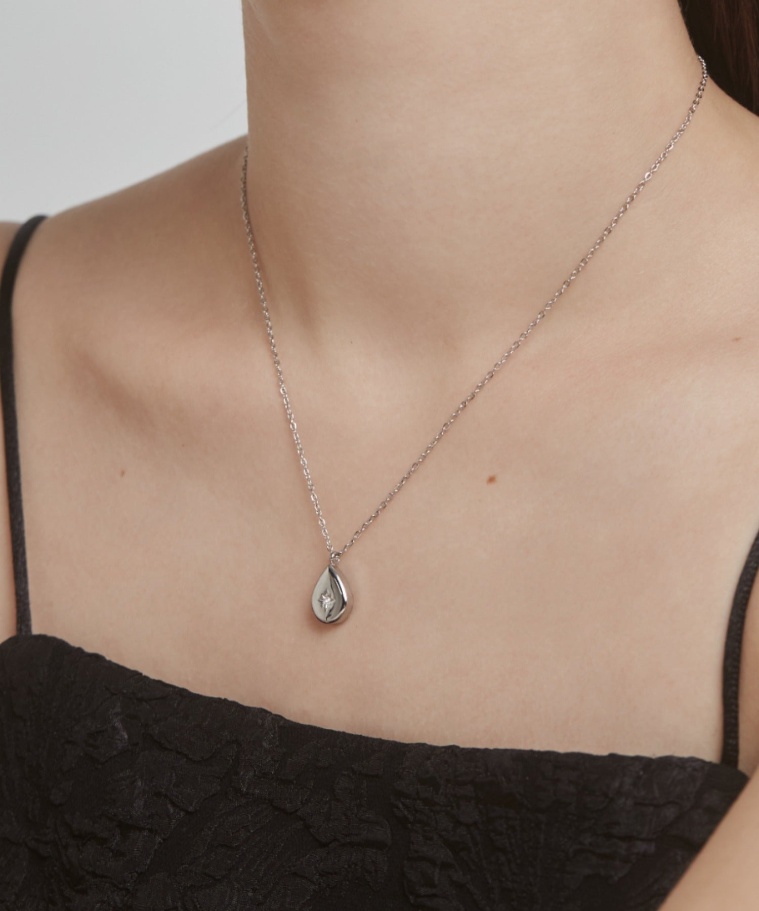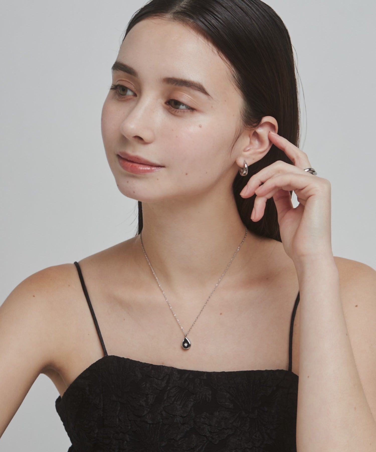 雫デザインのトップに美しく光り輝くビジューをあしらったデザインネックレス。
