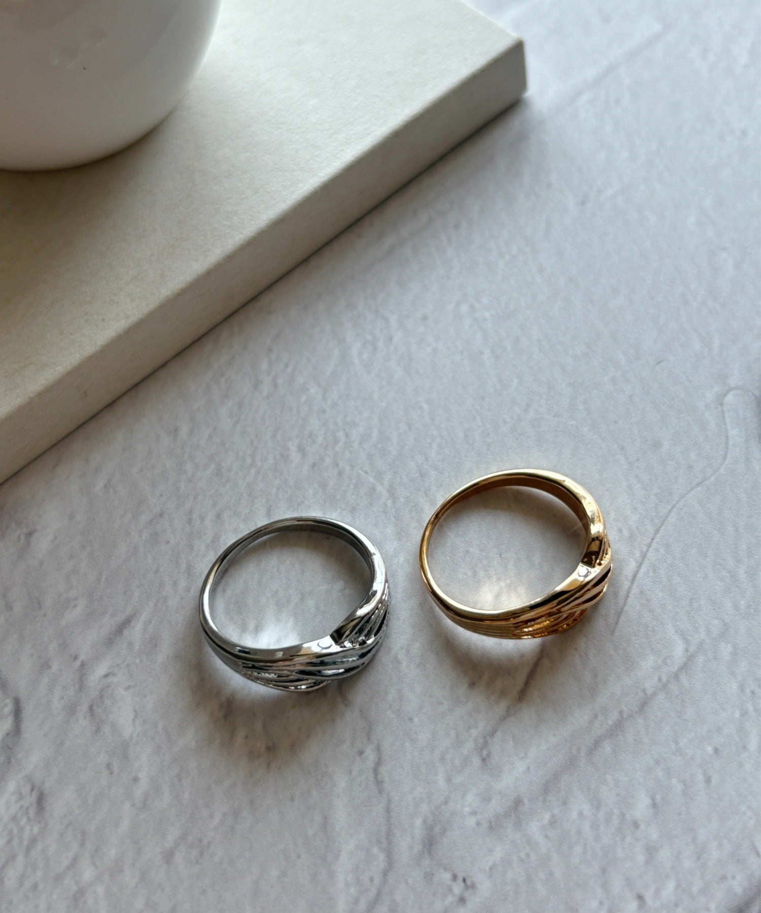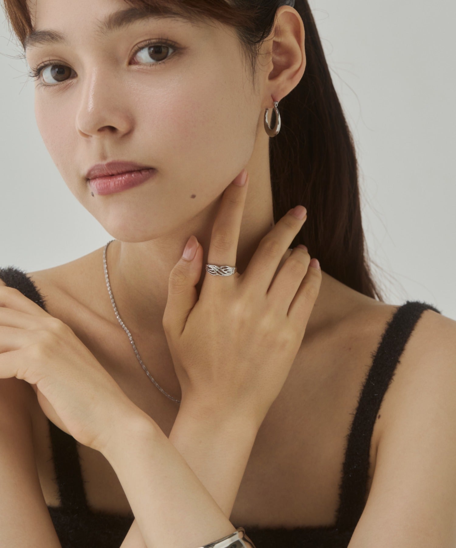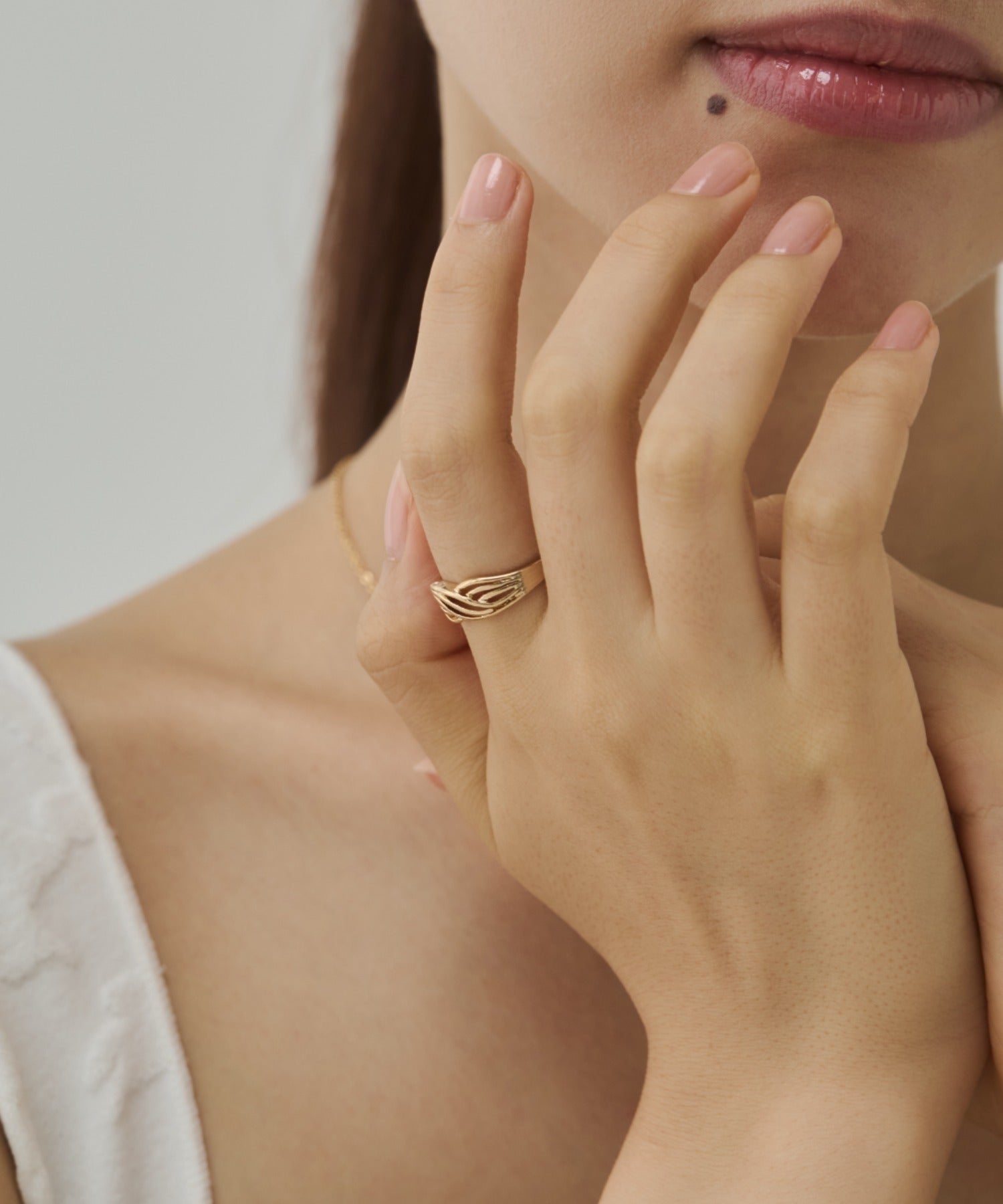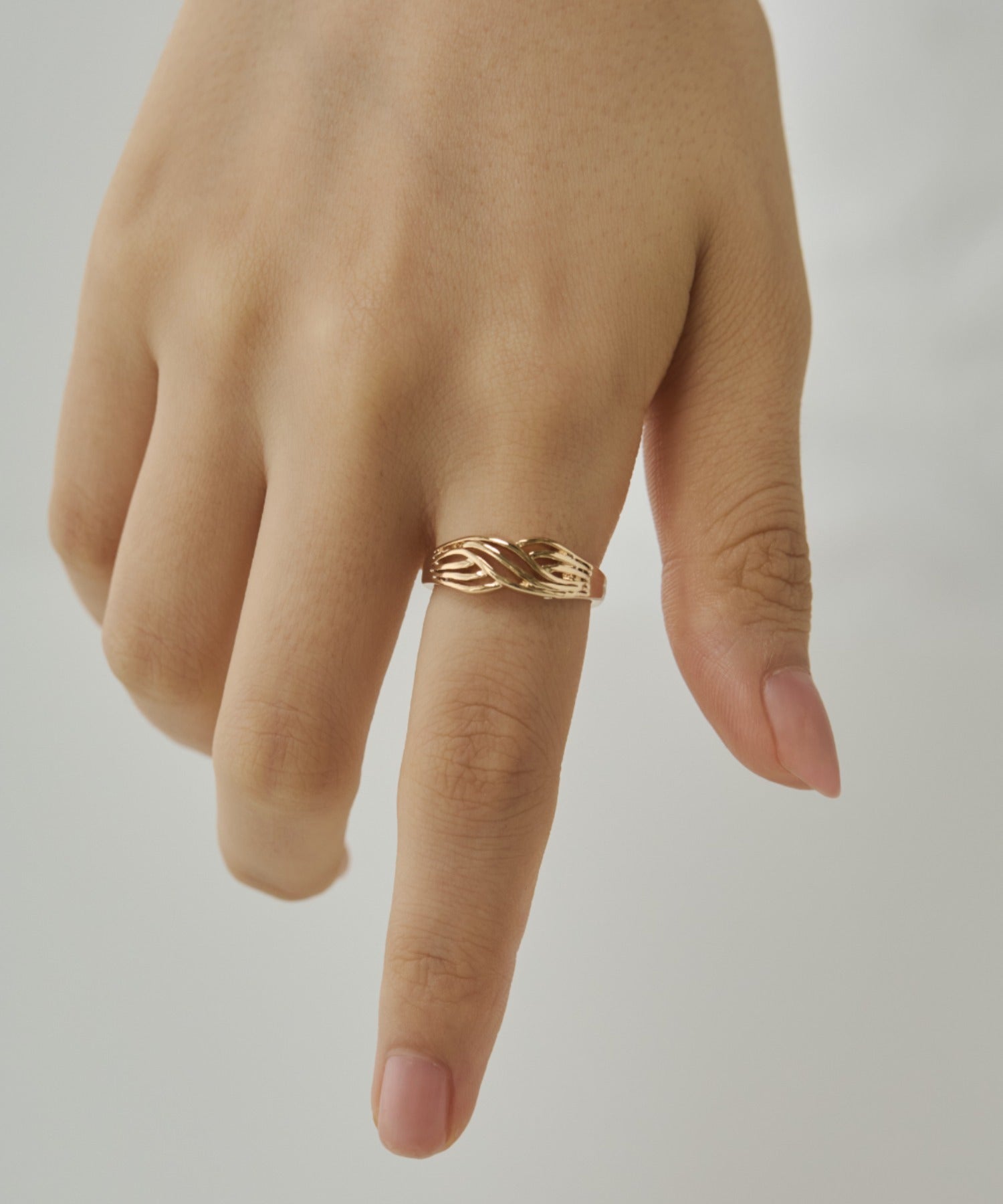 ニュアンス感のあるデザインが大人可愛い印象のリング。程よいサイズ感で、付けるだけでいつものコーディネートを格上げしてくれます◎
