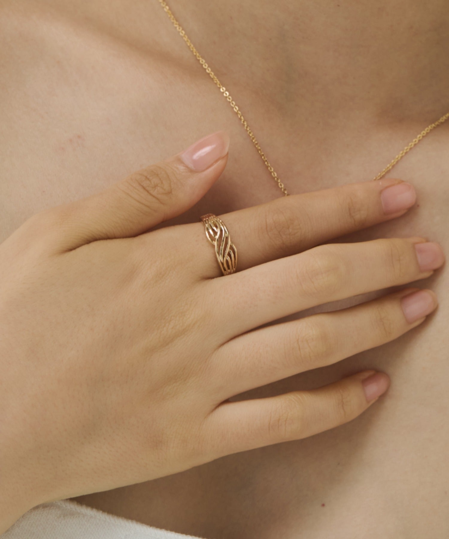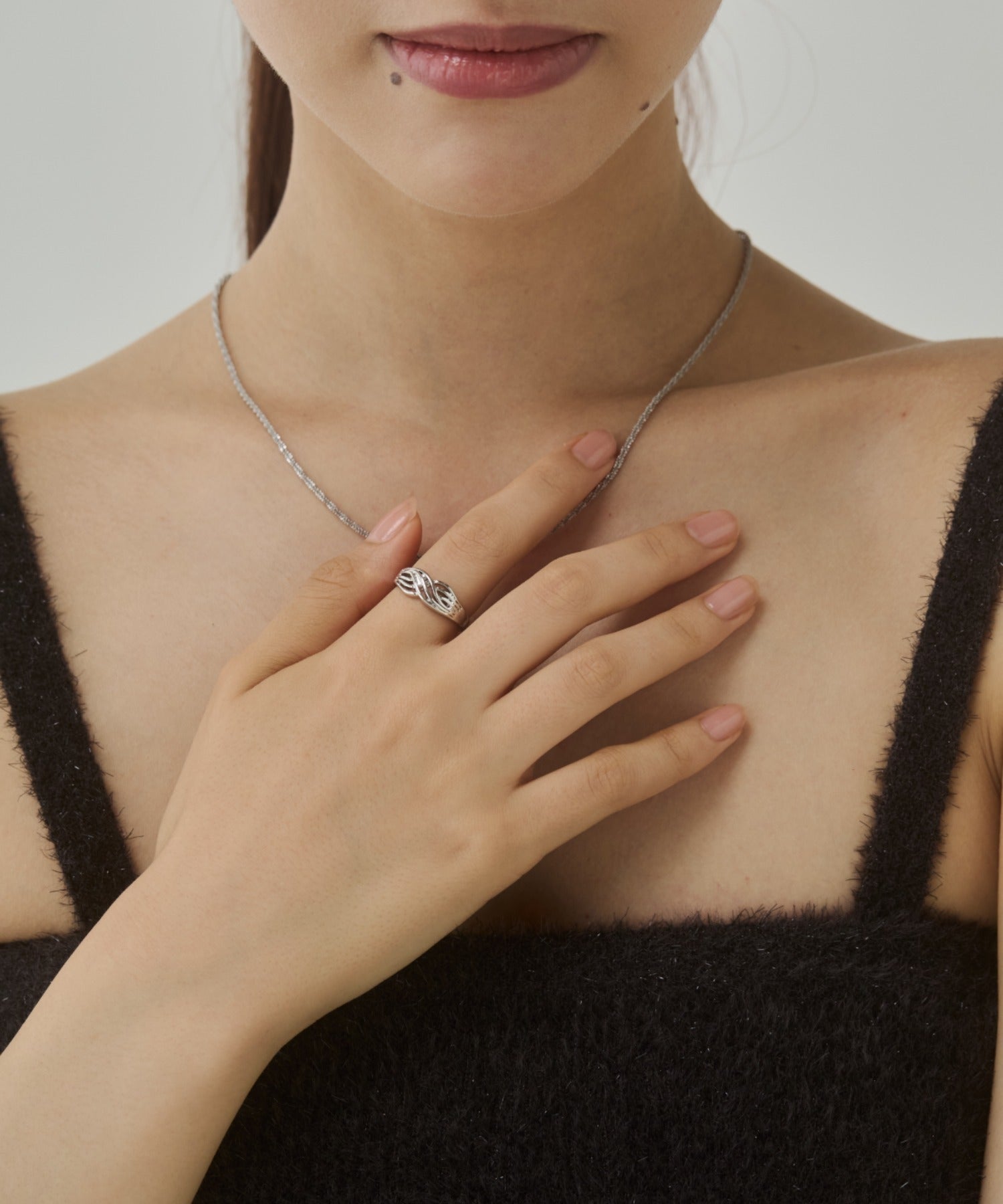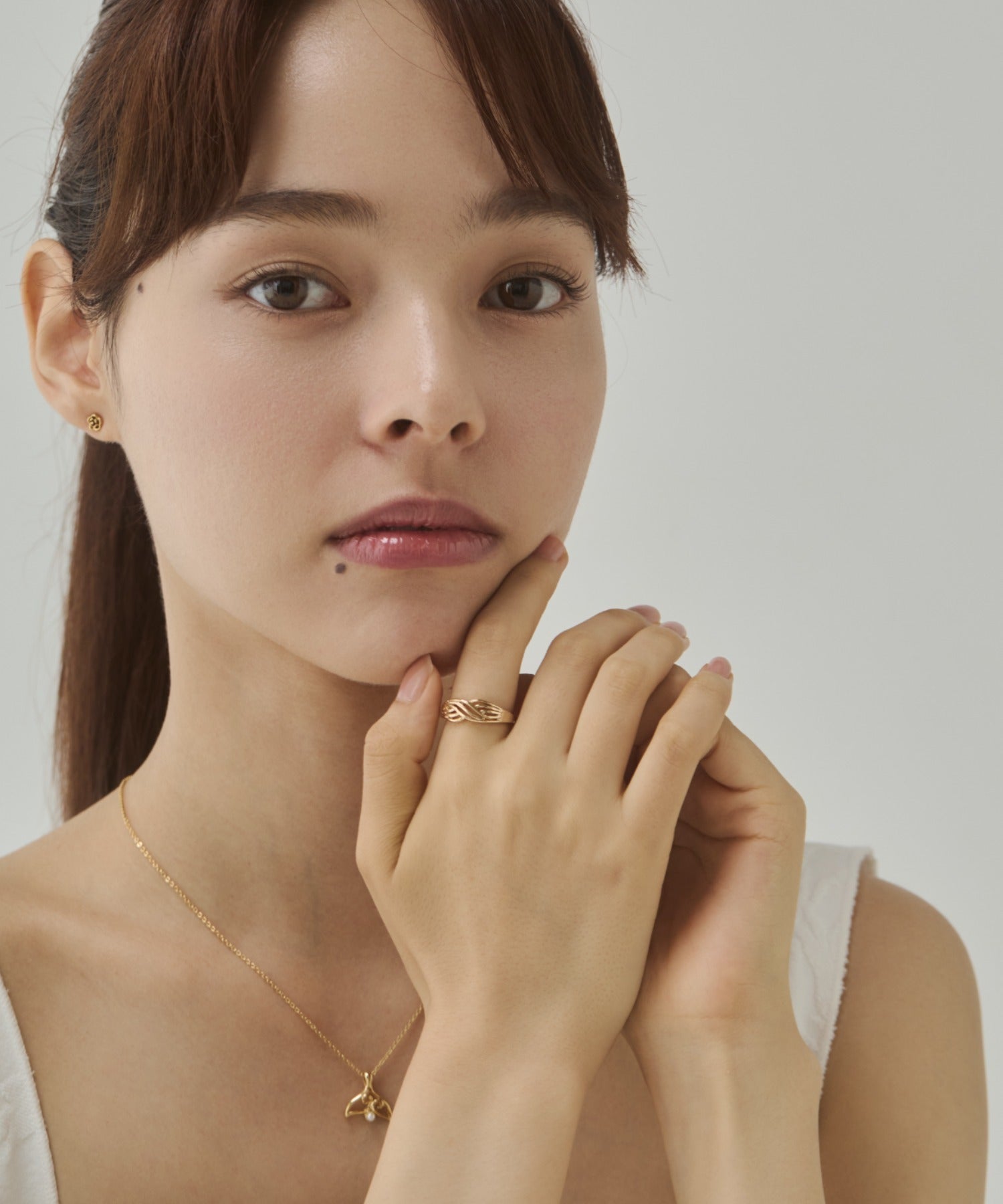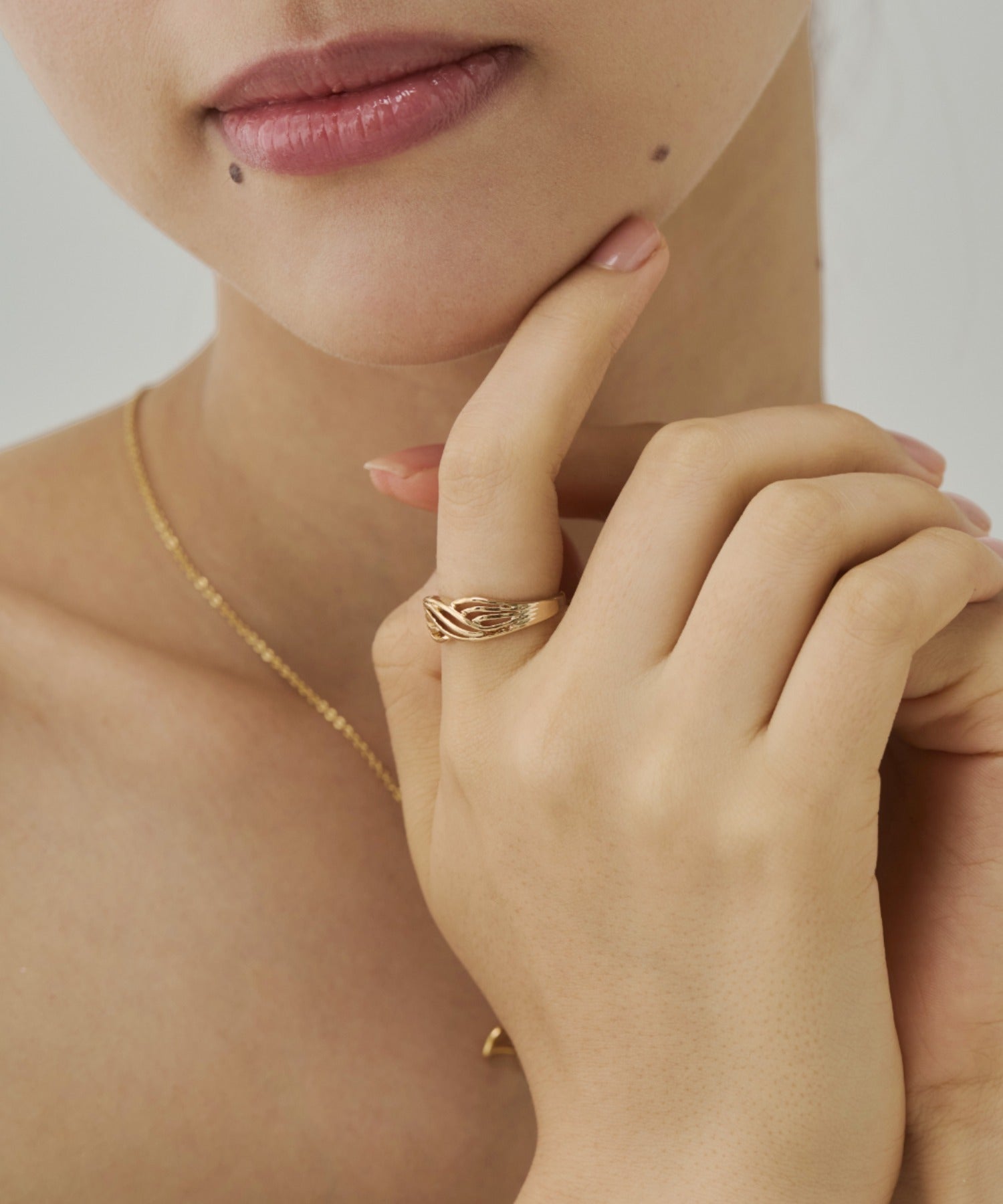 ニュアンス感のあるデザインが大人可愛い印象のリング。程よいサイズ感で、付けるだけでいつものコーディネートを格上げしてくれます◎