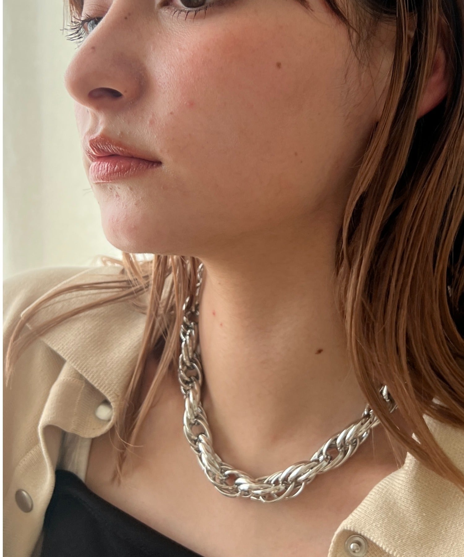 存在感のあるボリュームチェーンネックレスはつけると一気にモードな印象に!