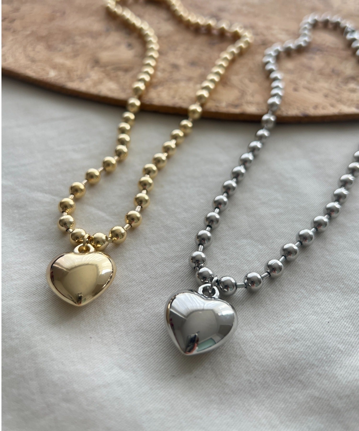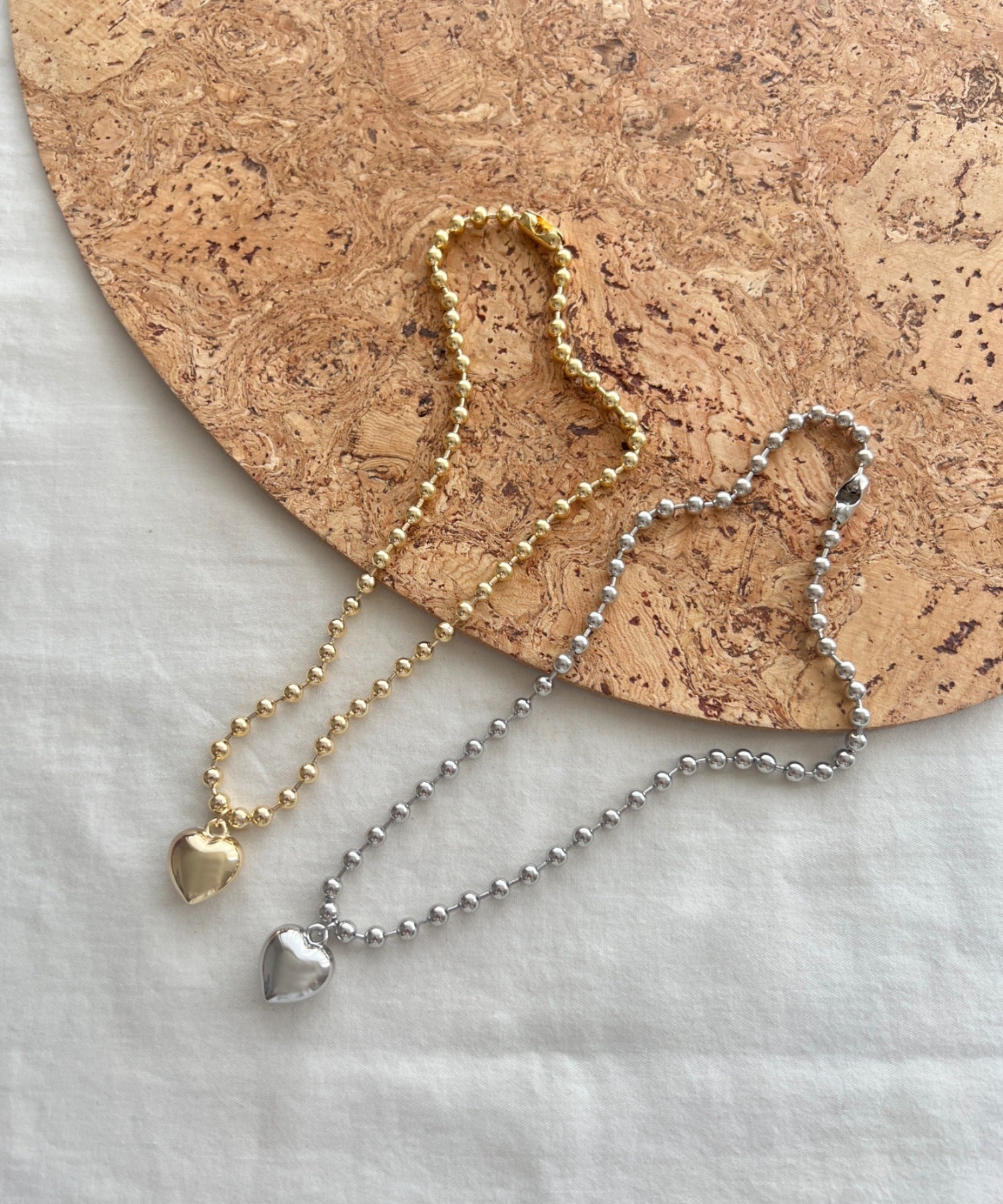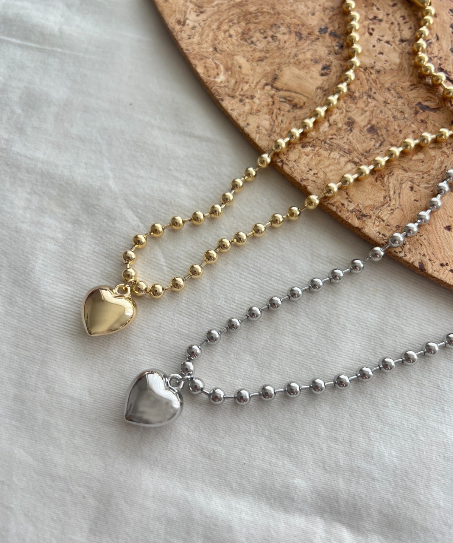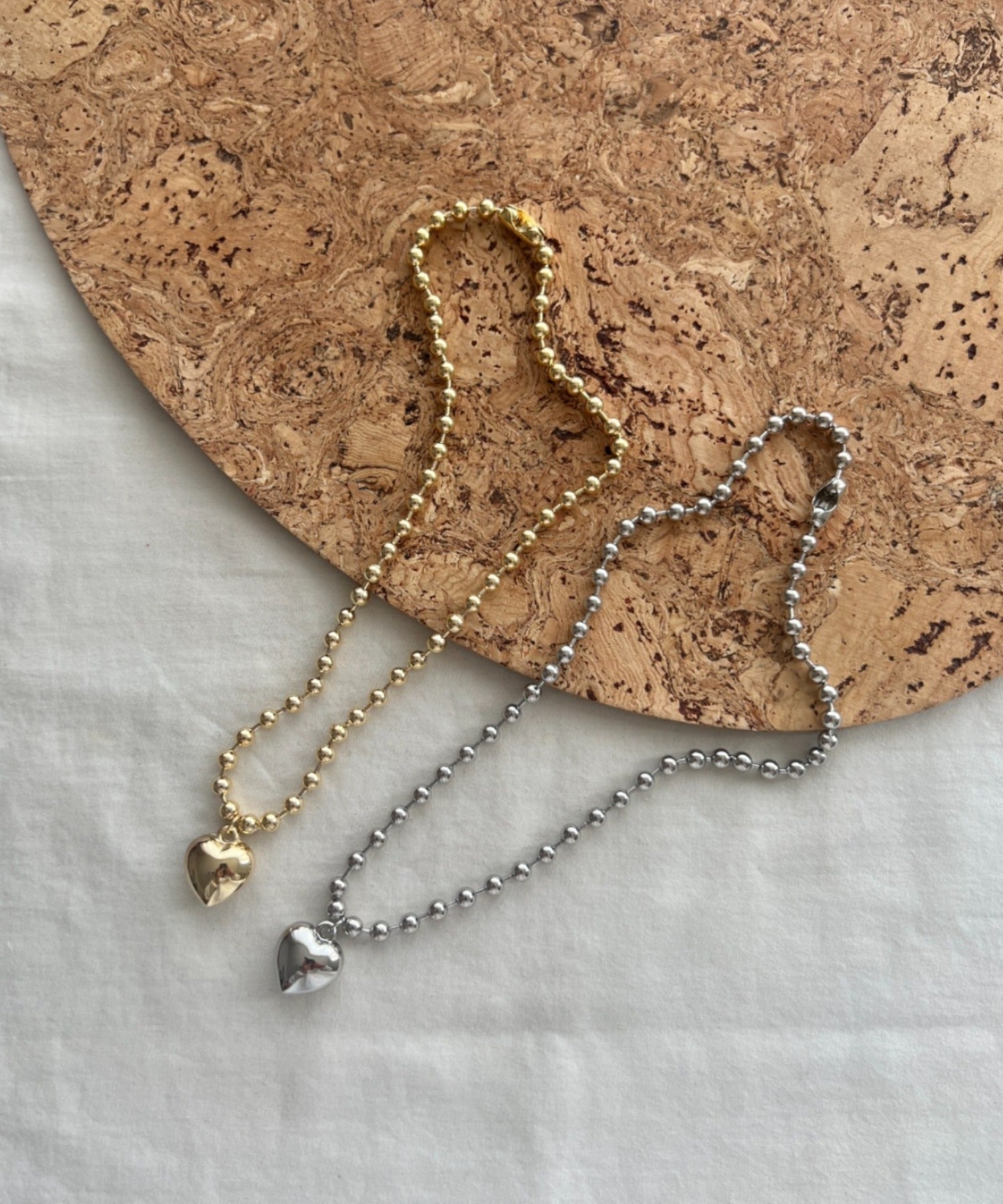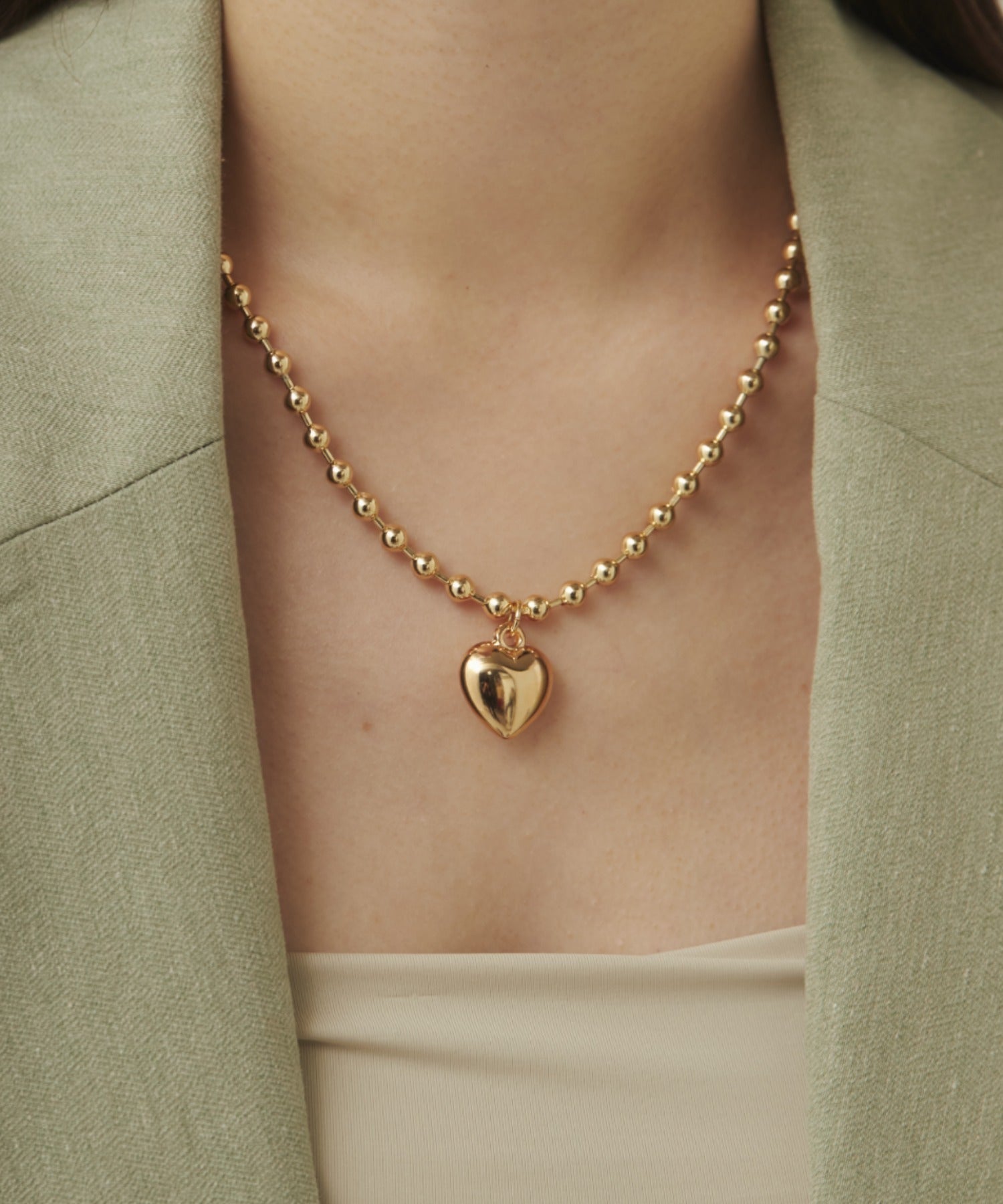 ぷっくりメタルハート & ボールチェーンネックレス