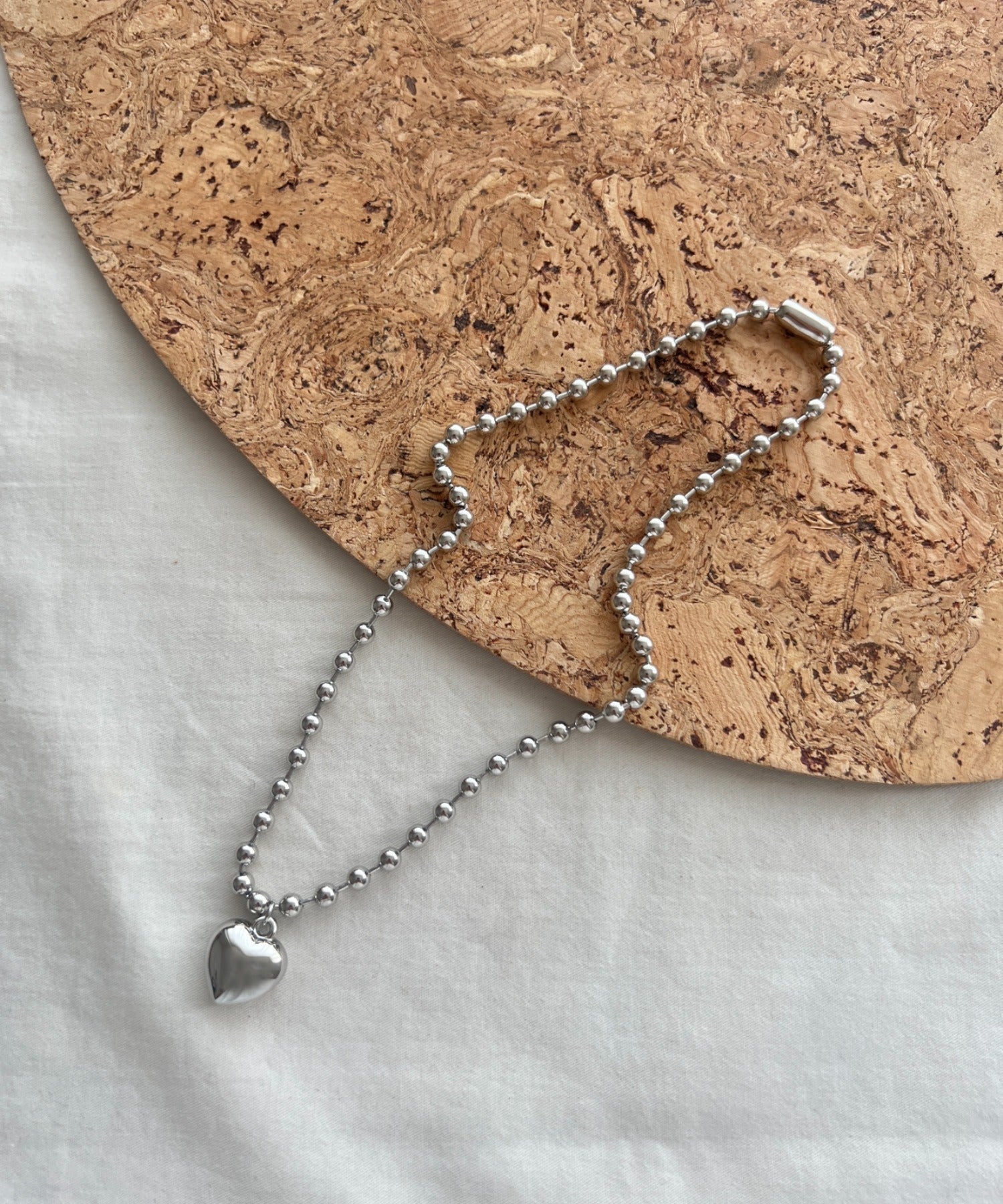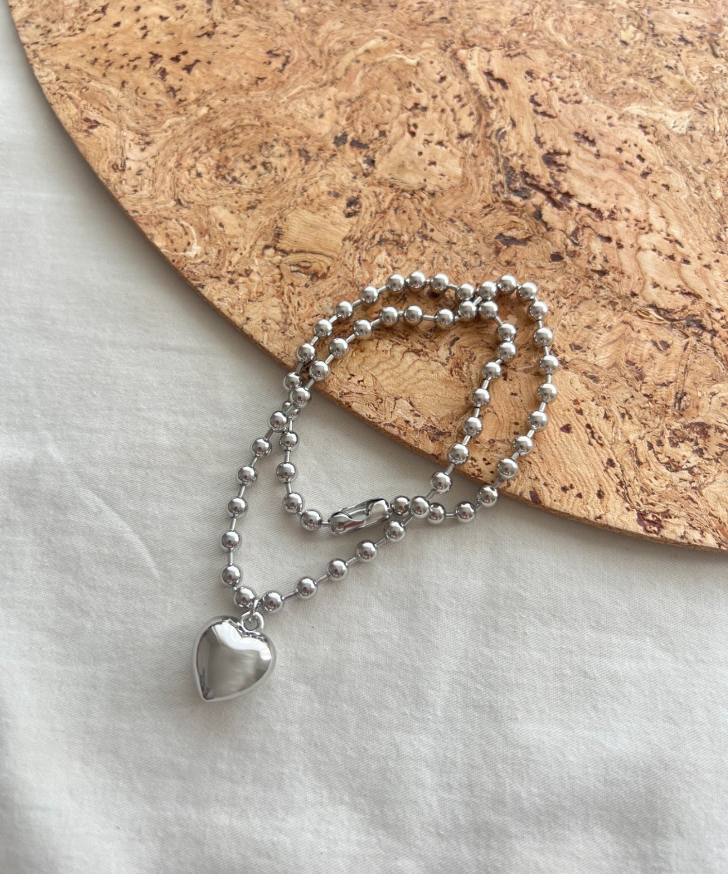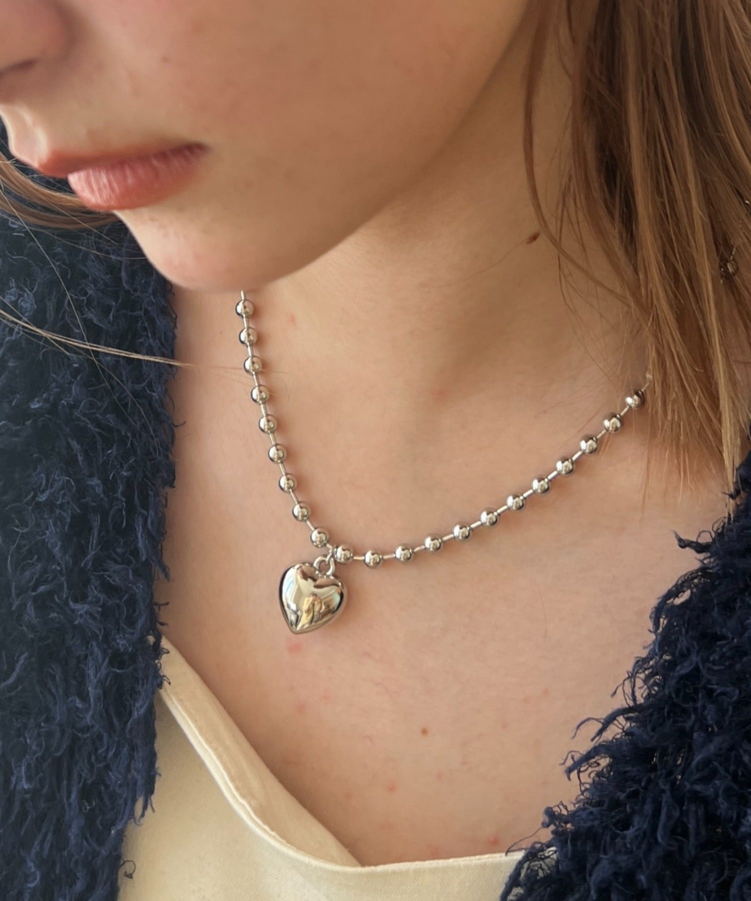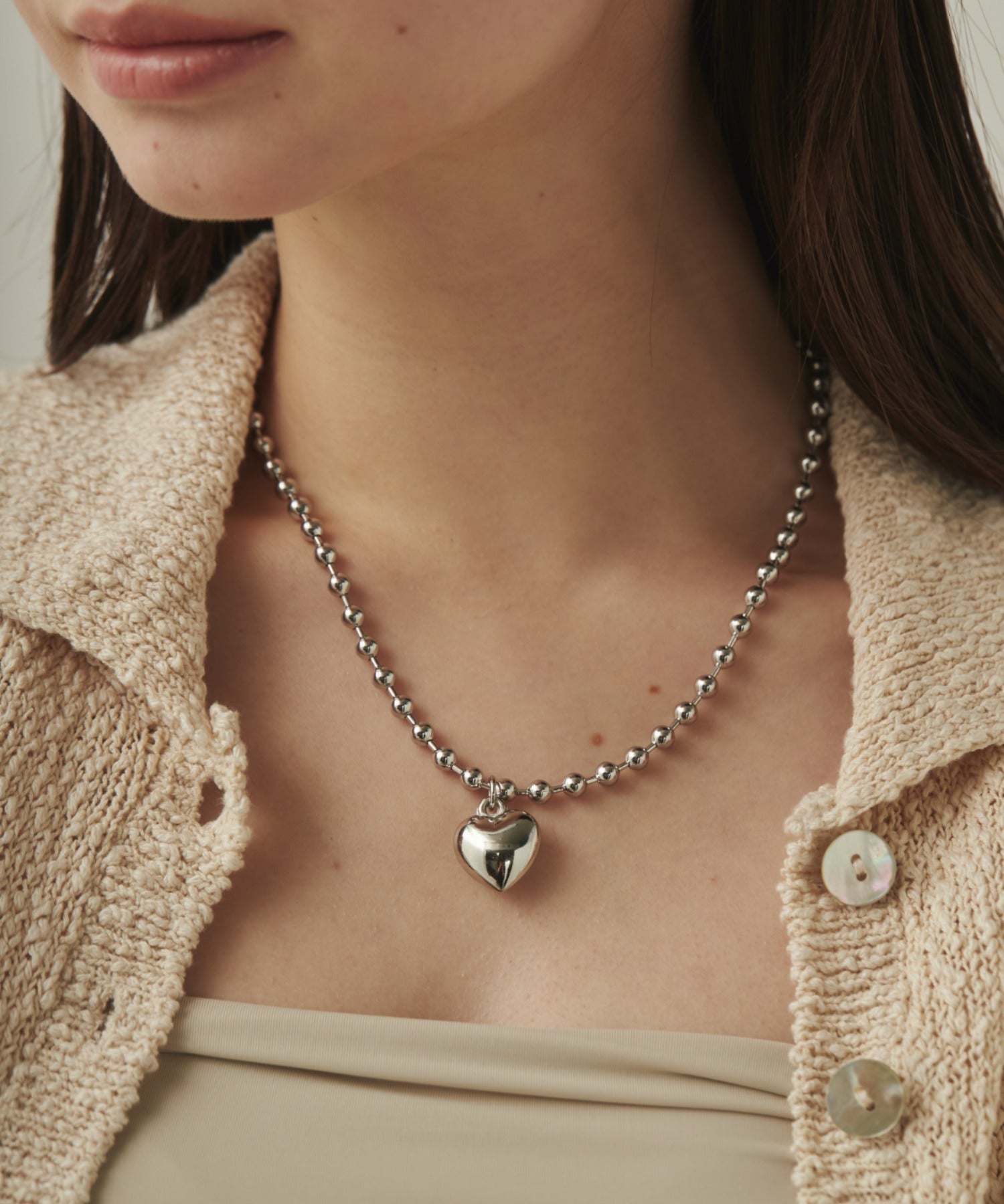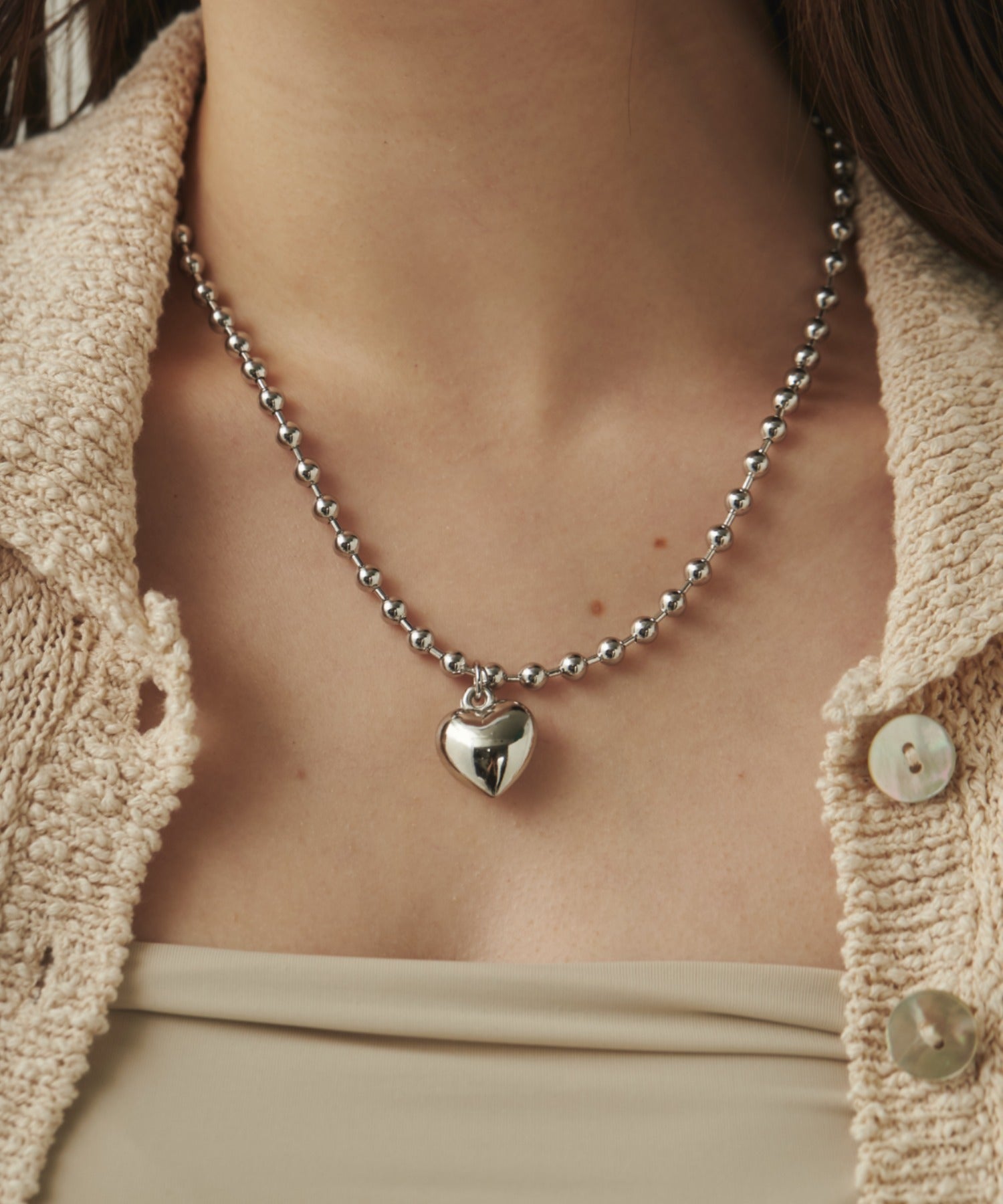 ぷっくりメタルハート & ボールチェーンネックレス