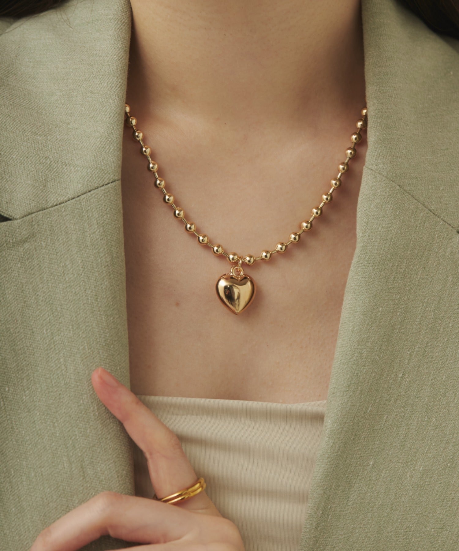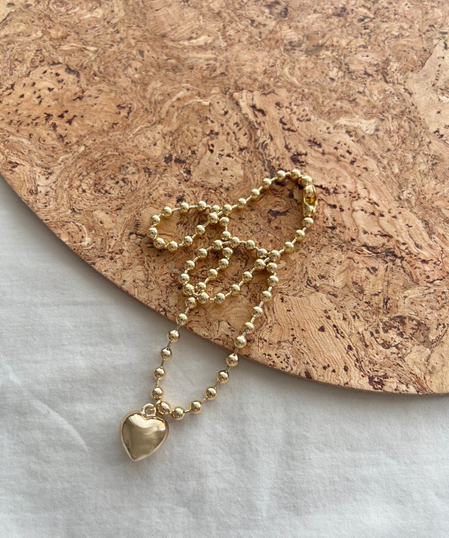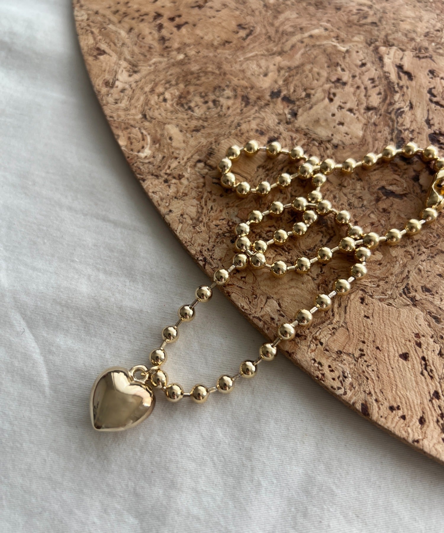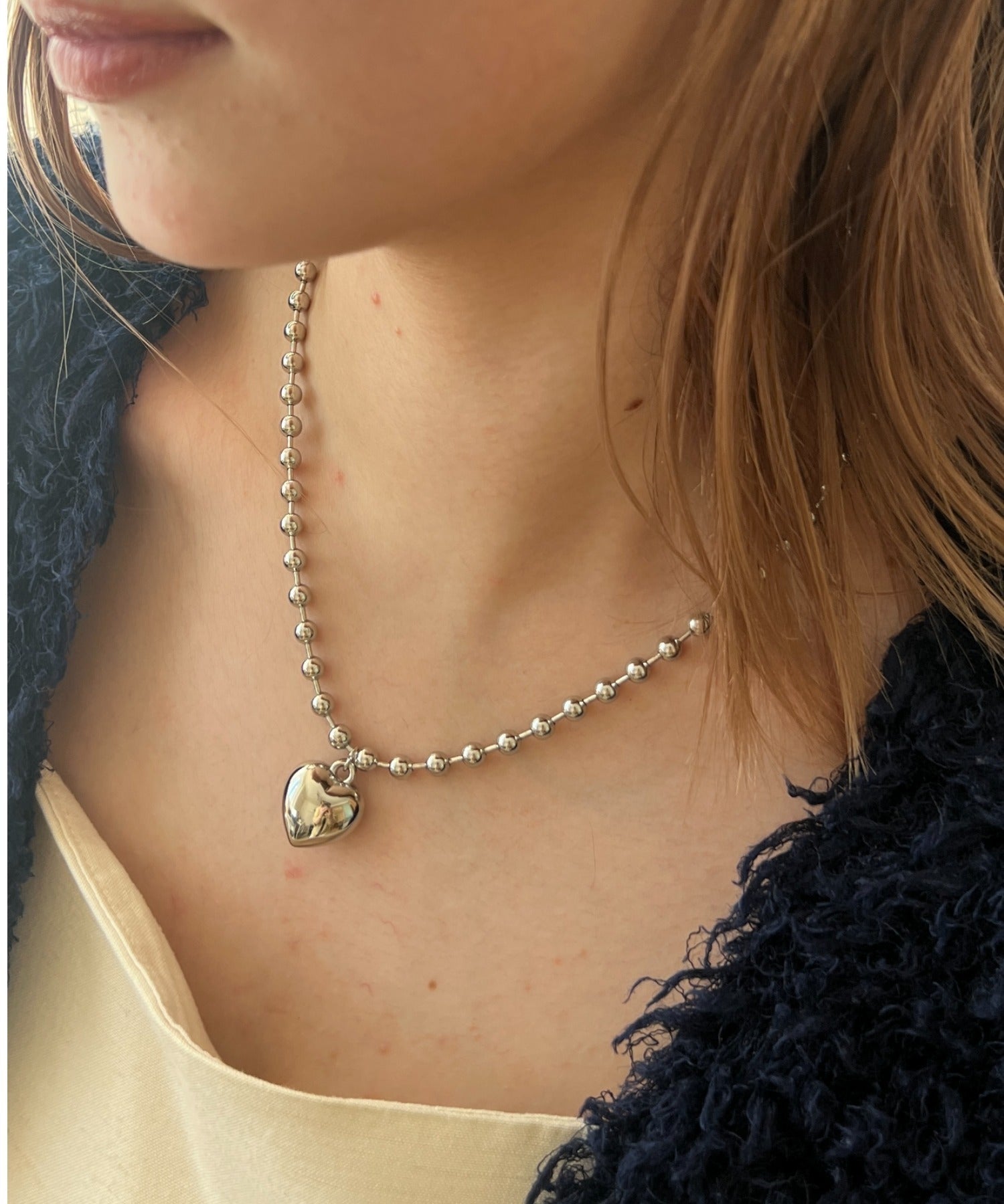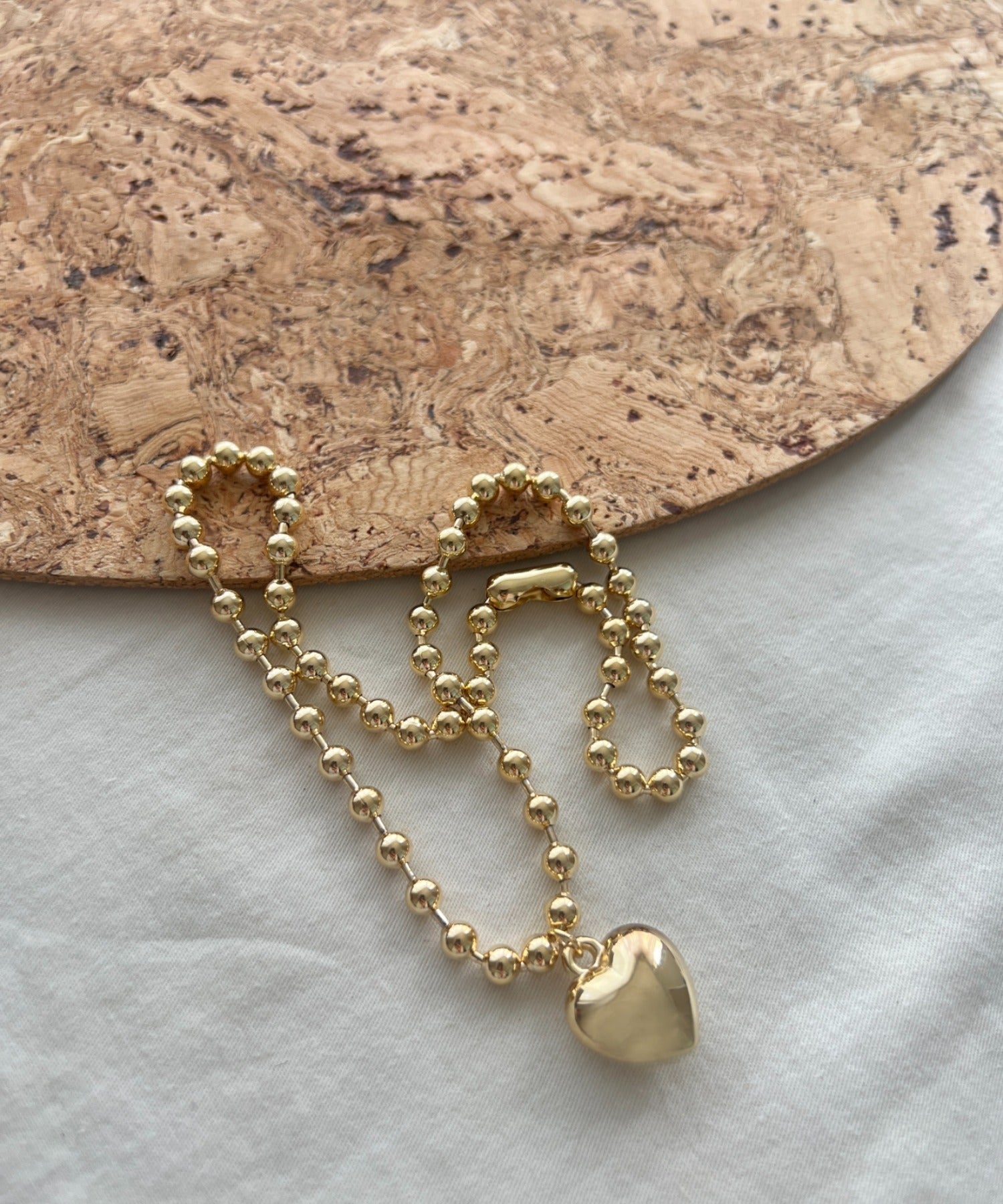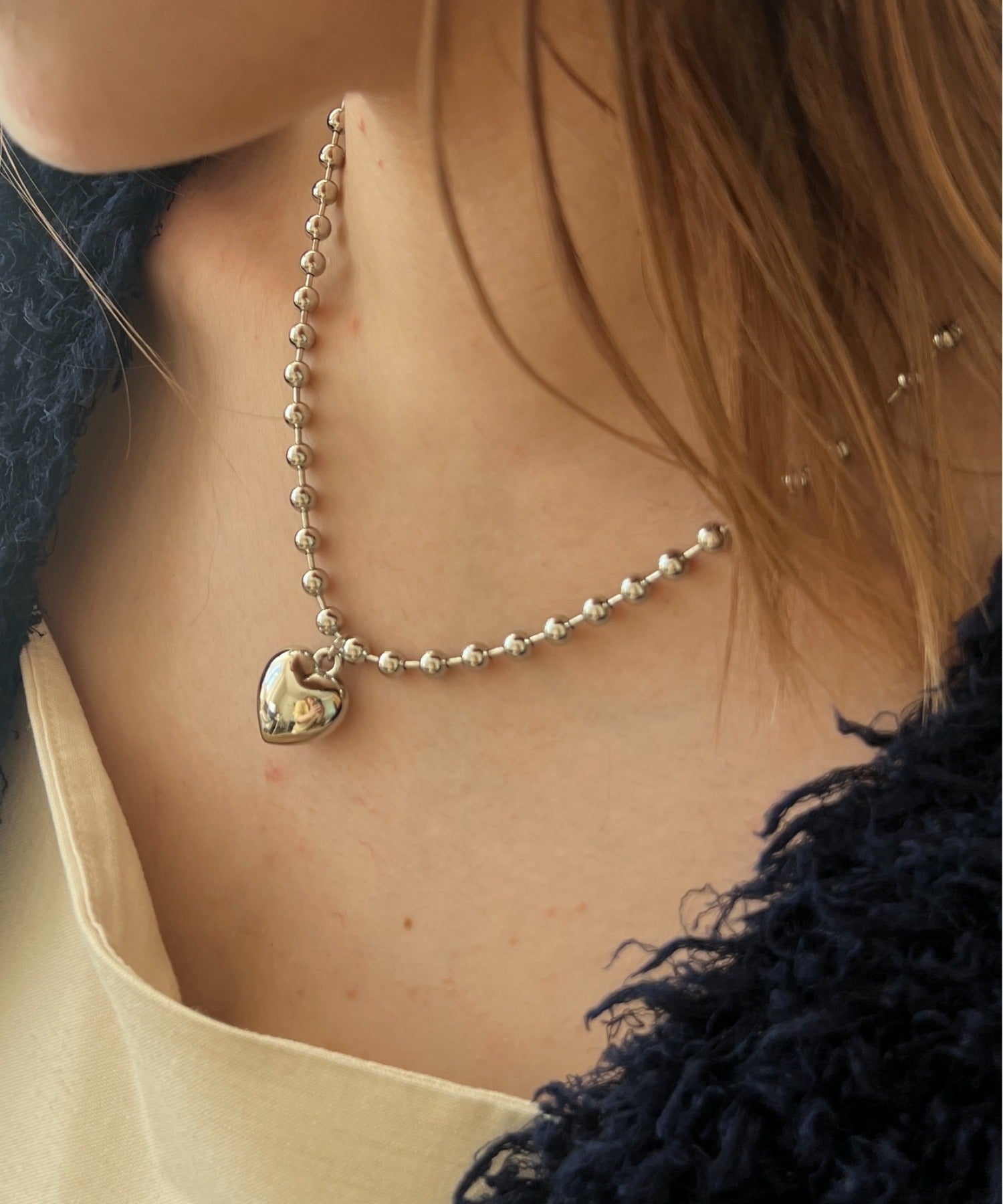 ぷっくりメタルハート & ボールチェーンネックレス