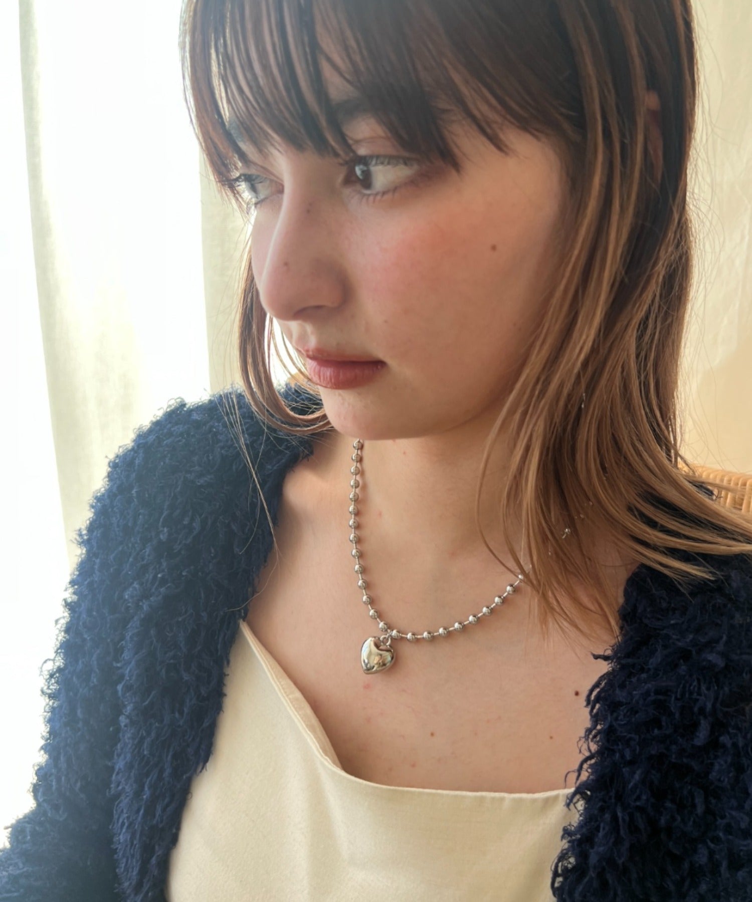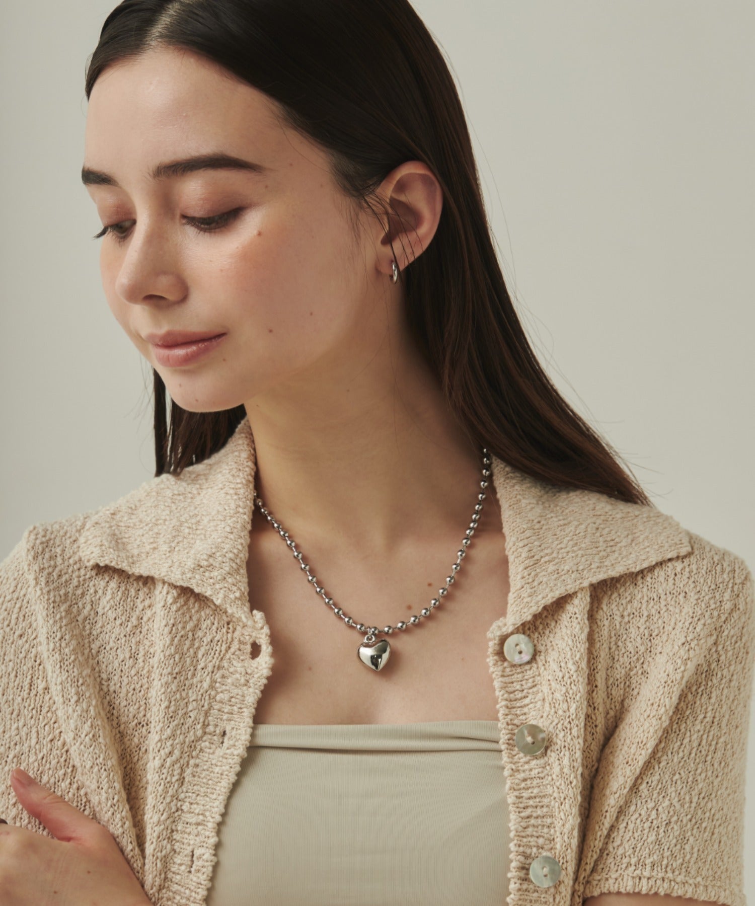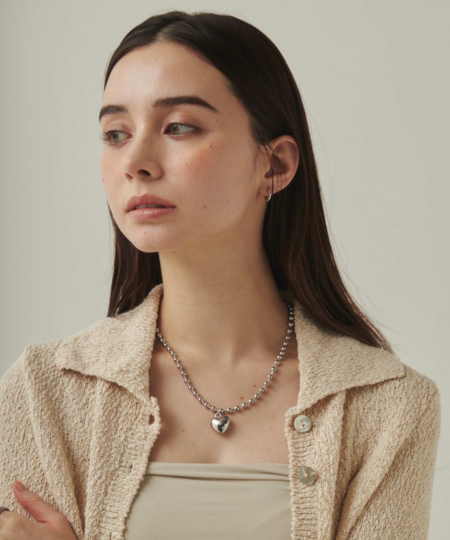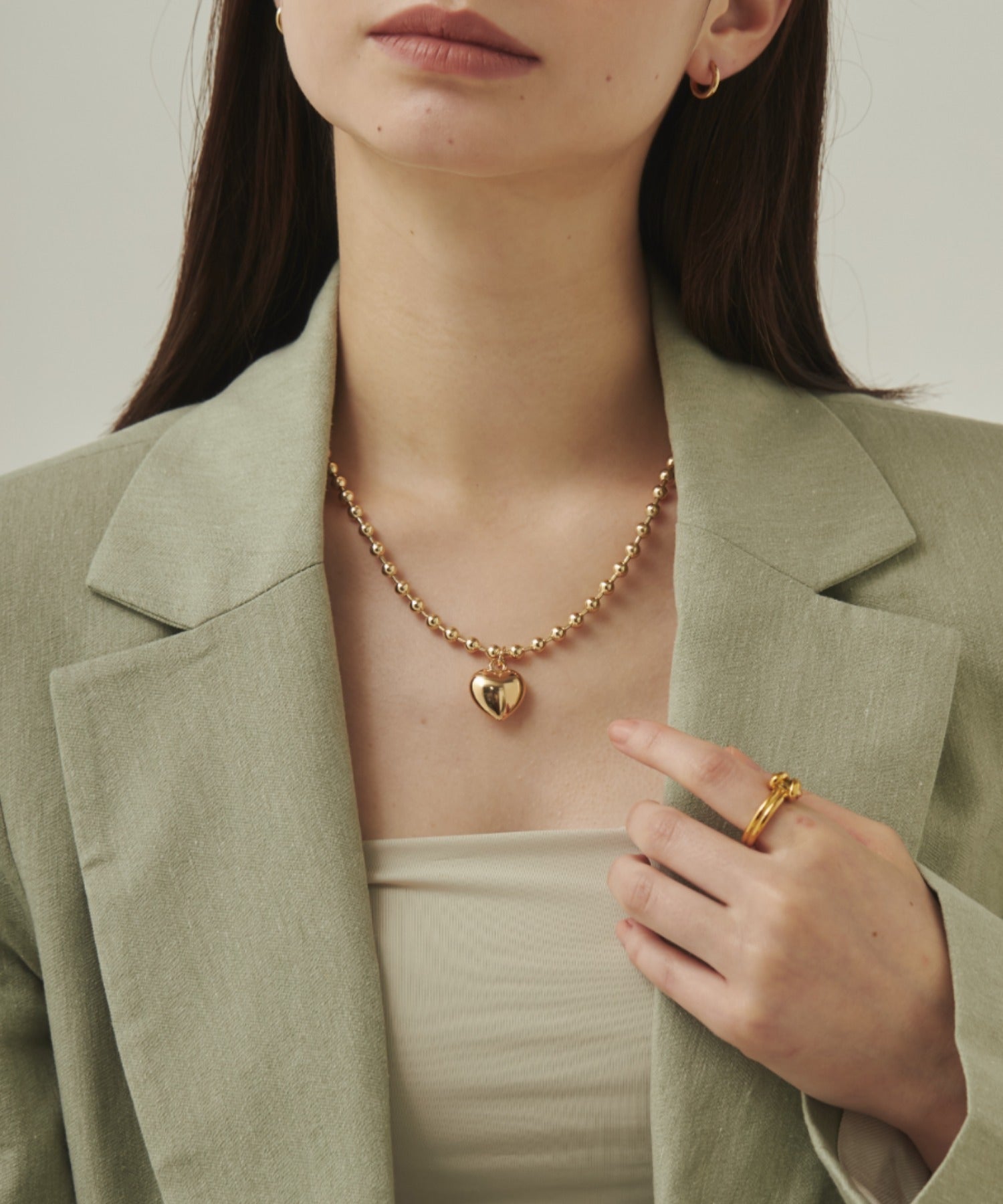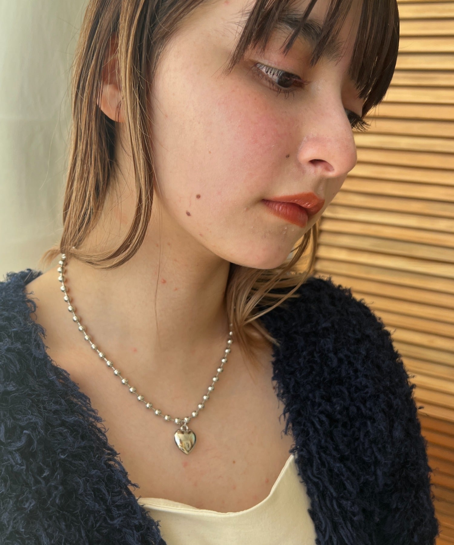 ぷっくりメタルハート & ボールチェーンネックレス