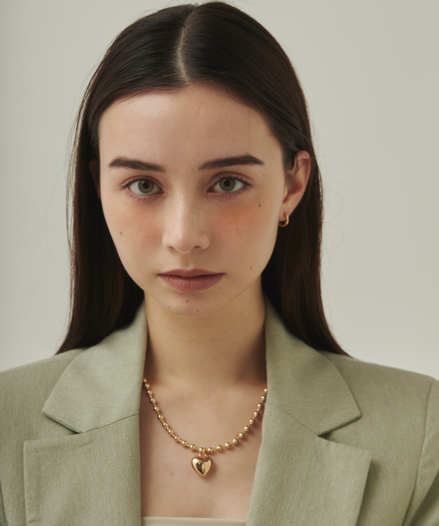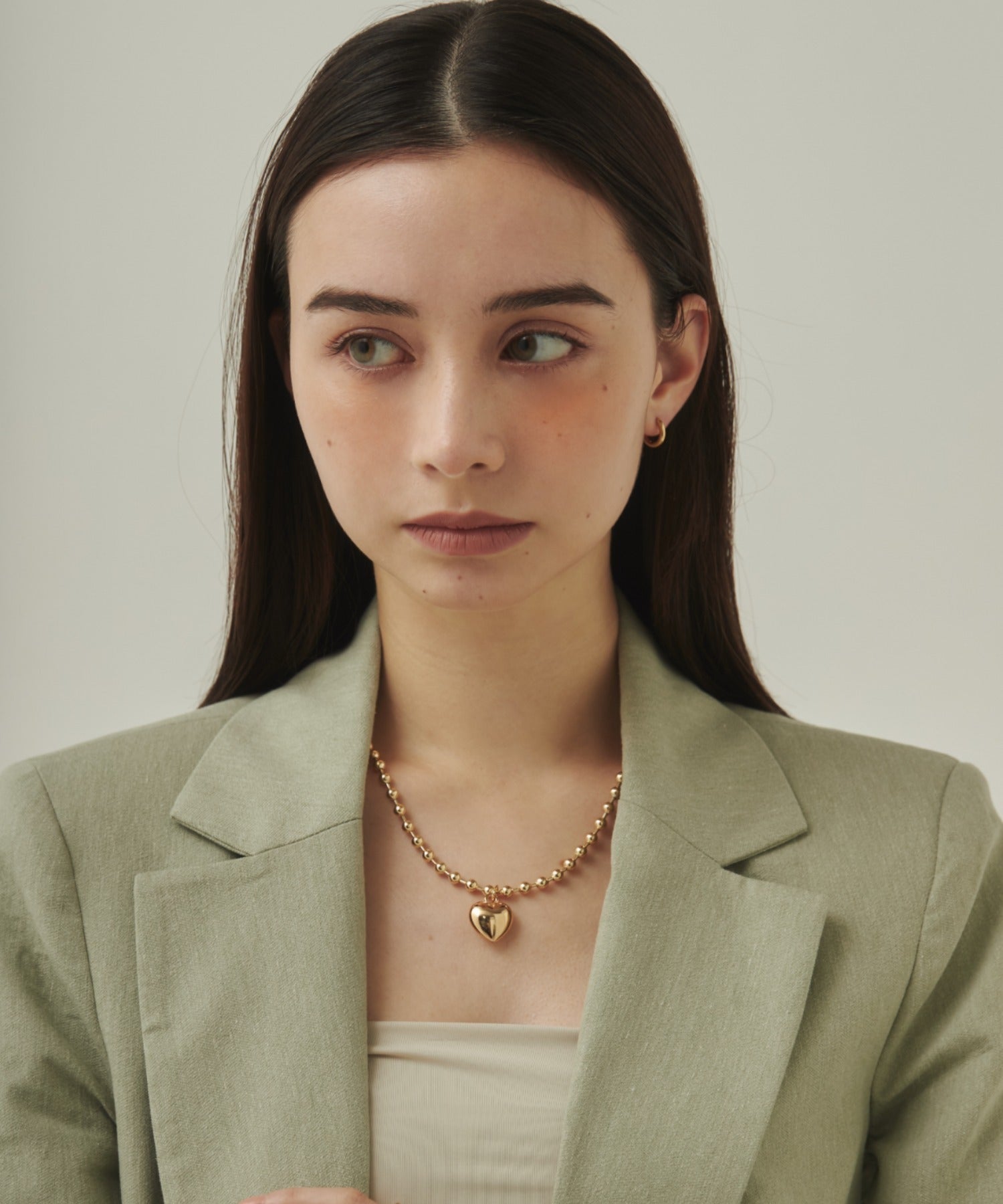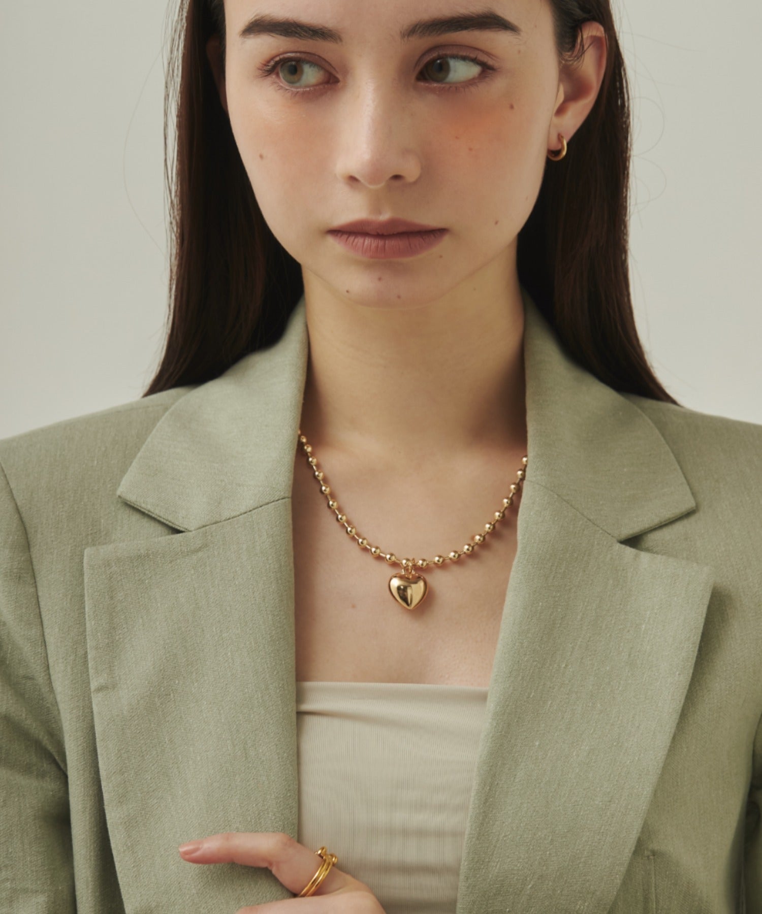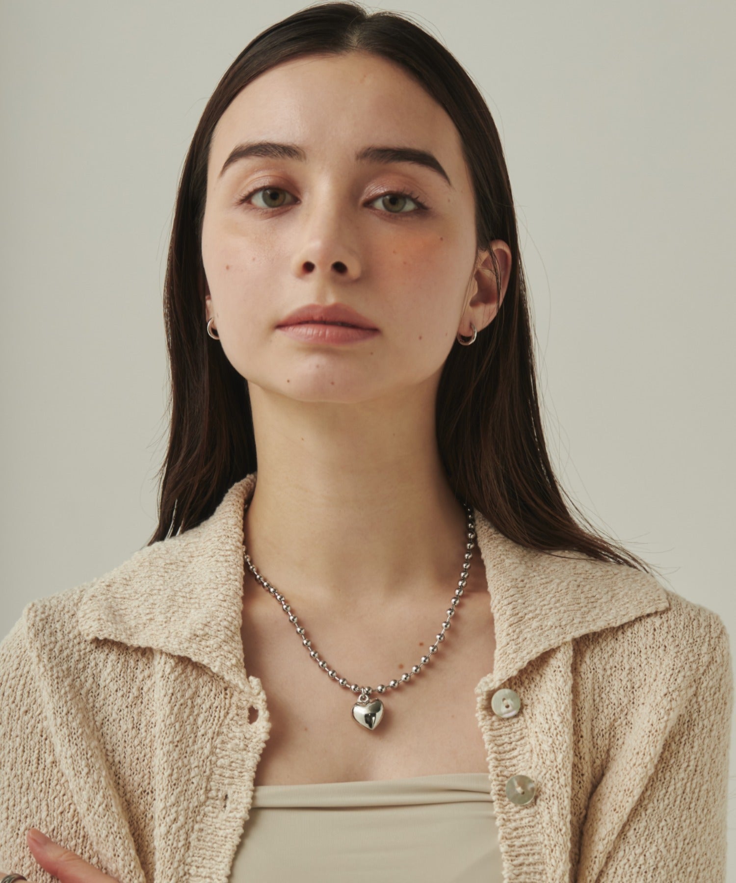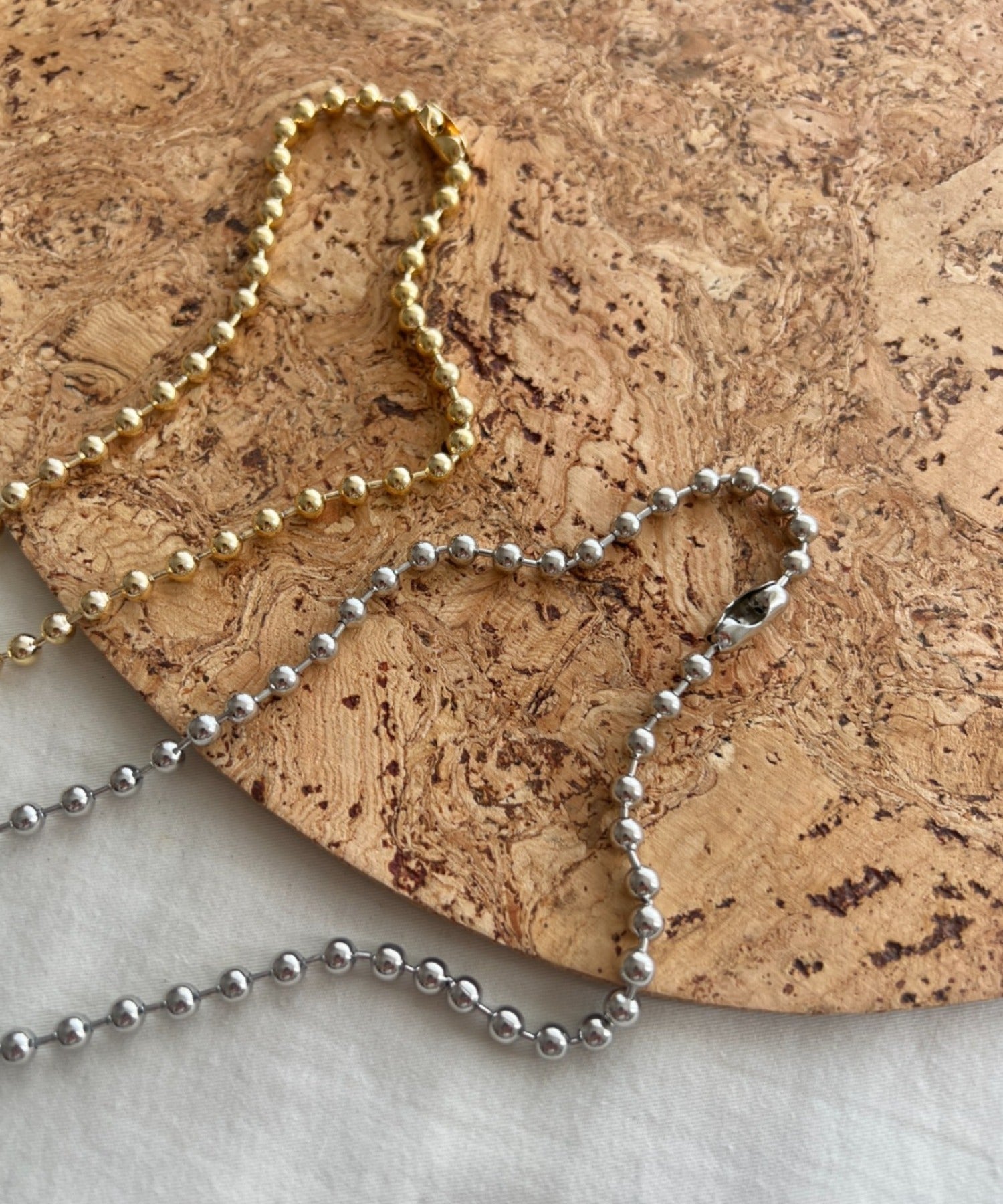 ぷっくりメタルハート & ボールチェーンネックレス