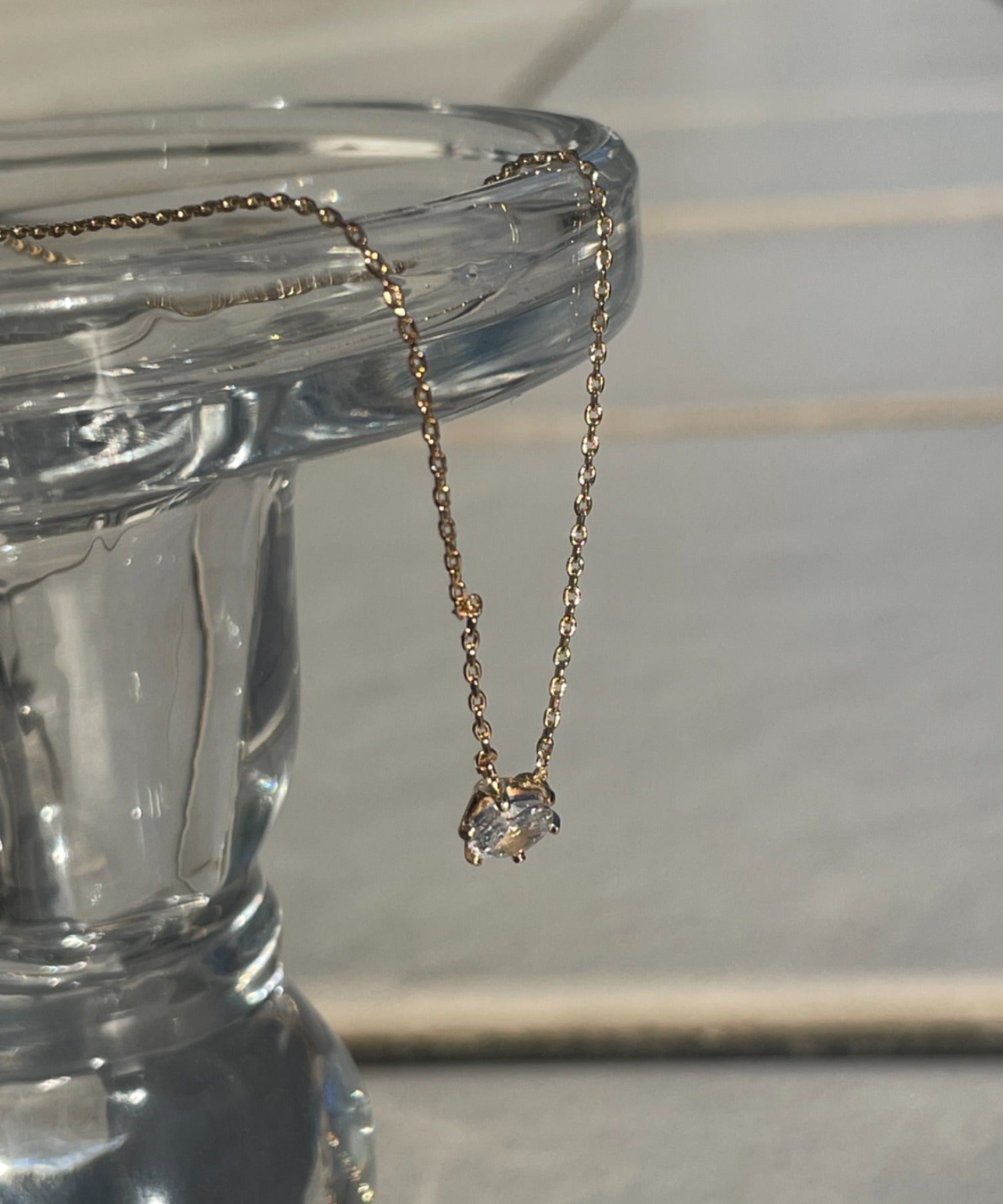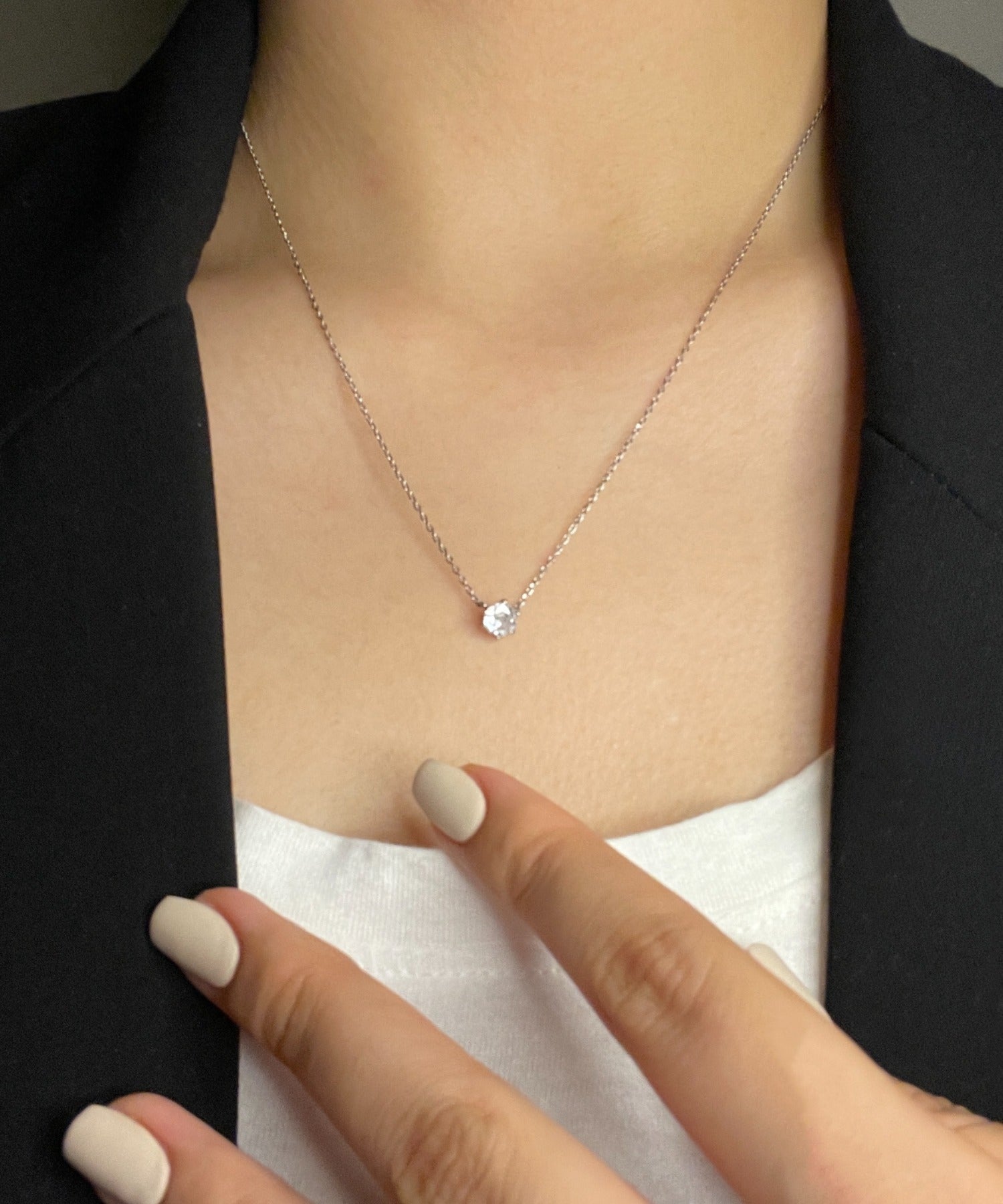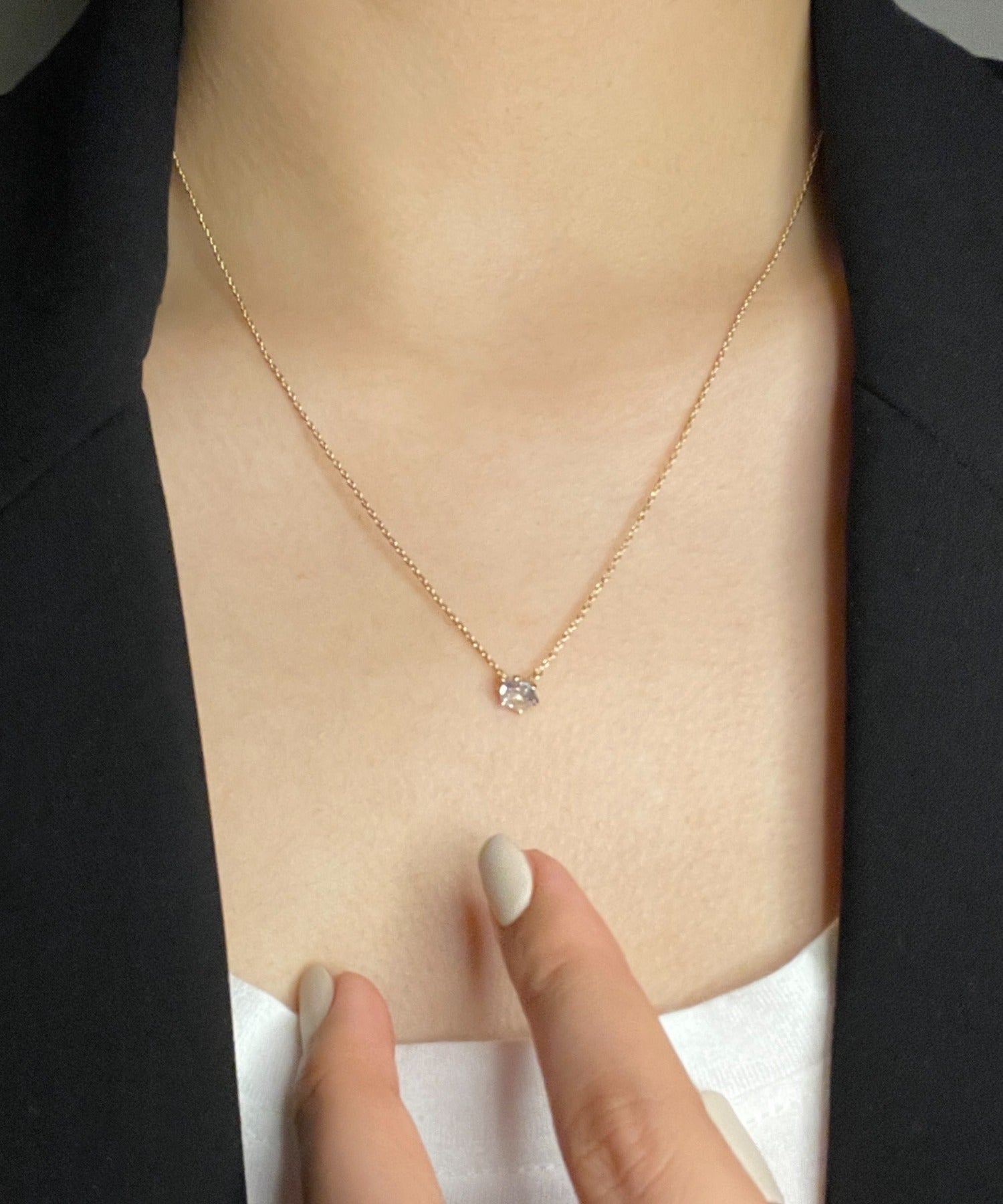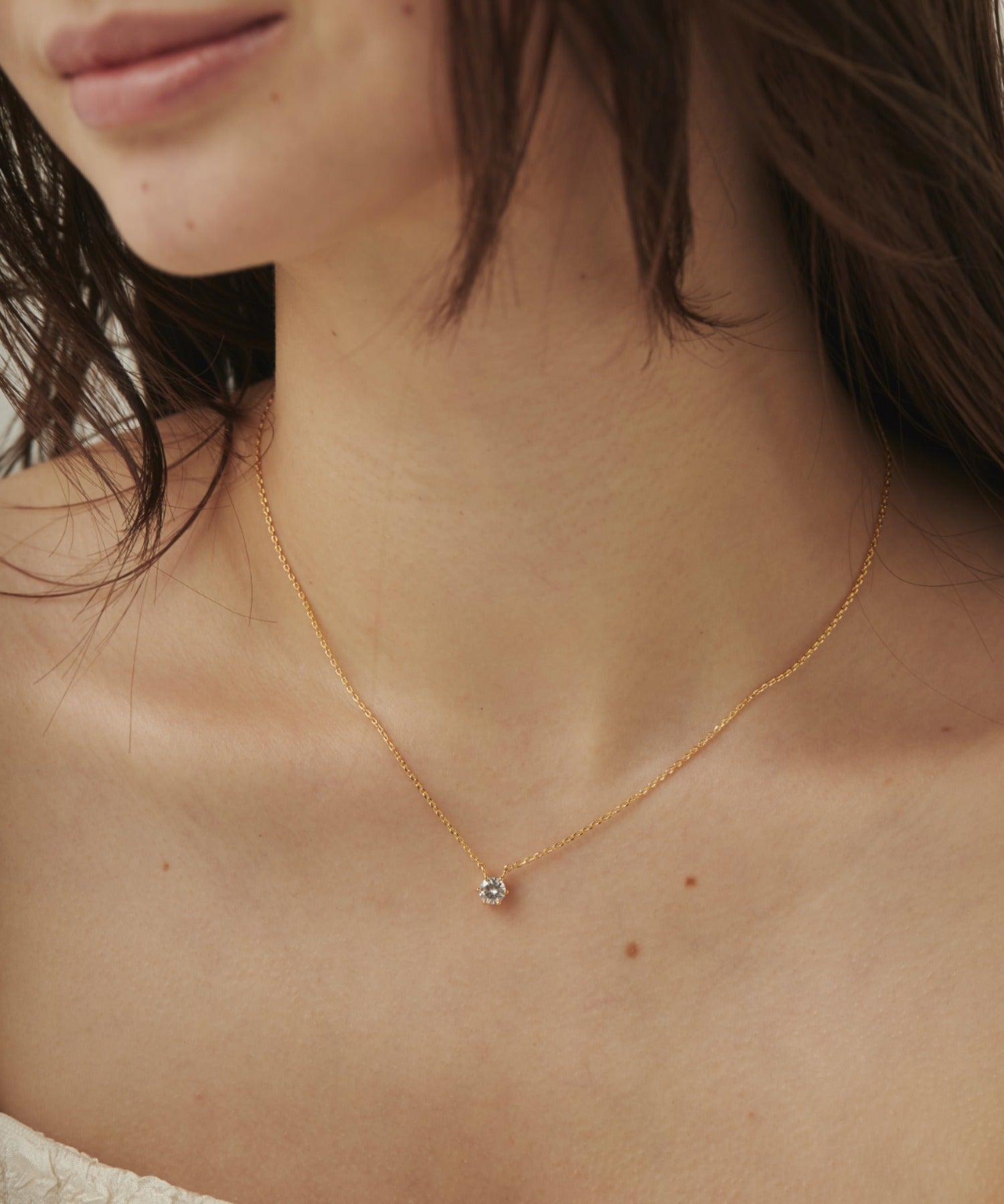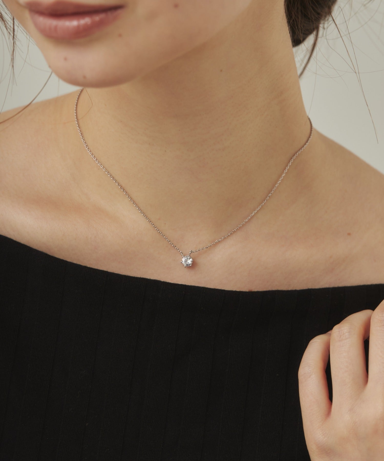 シンプルなデザインでありながらもデコルテに上品さを添えることが出来るネックレス。