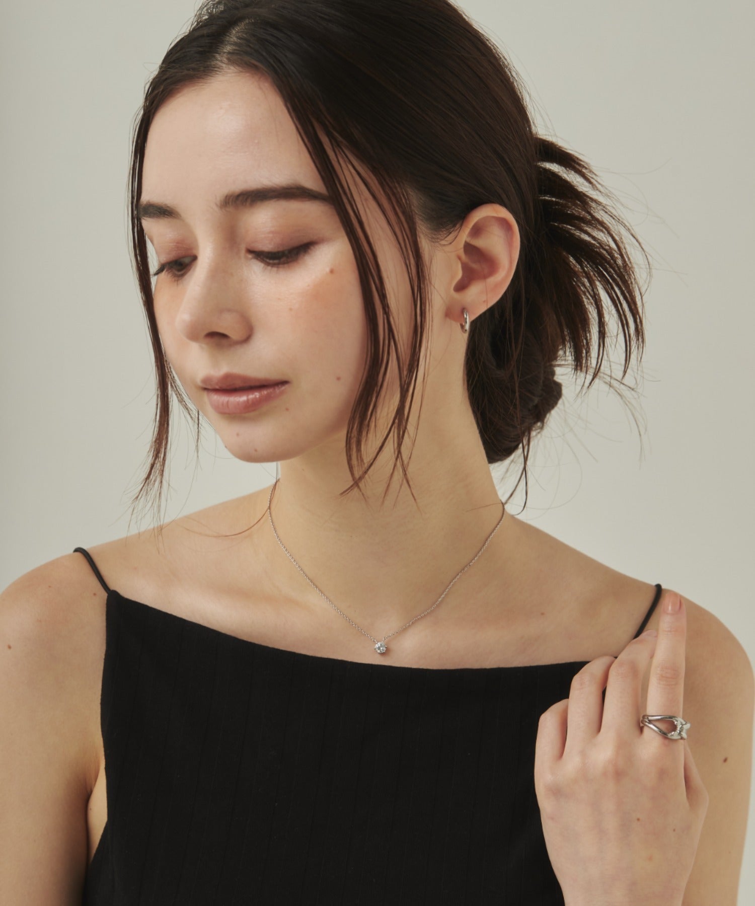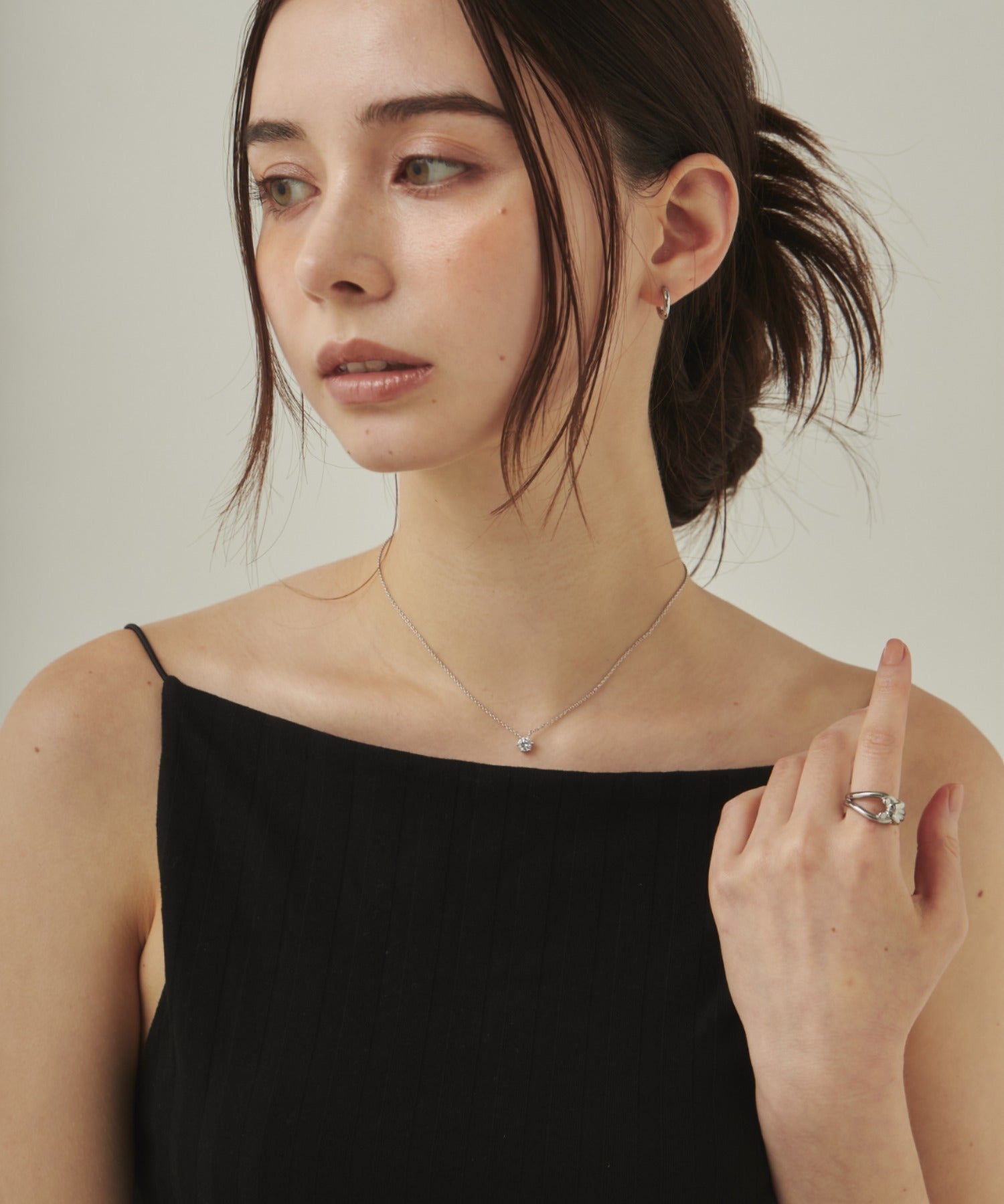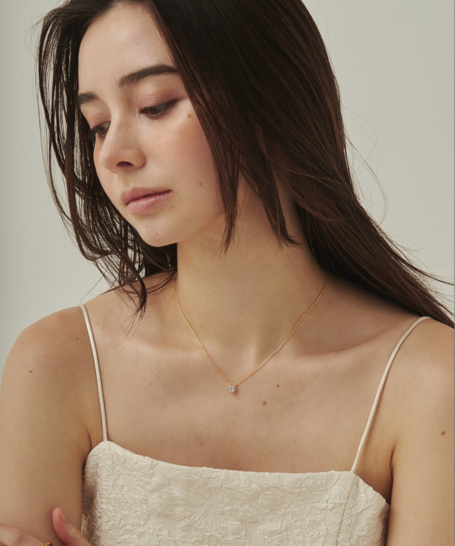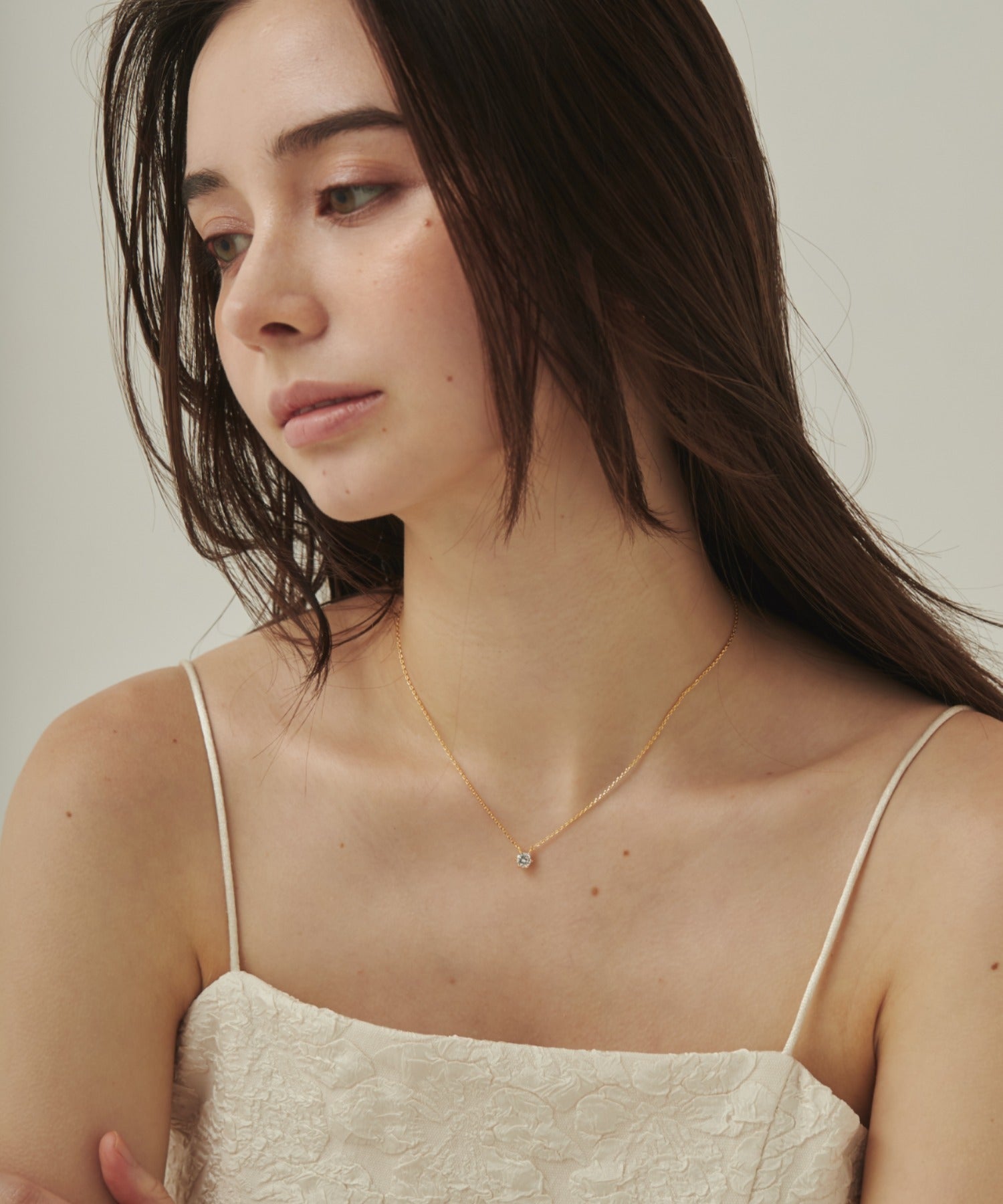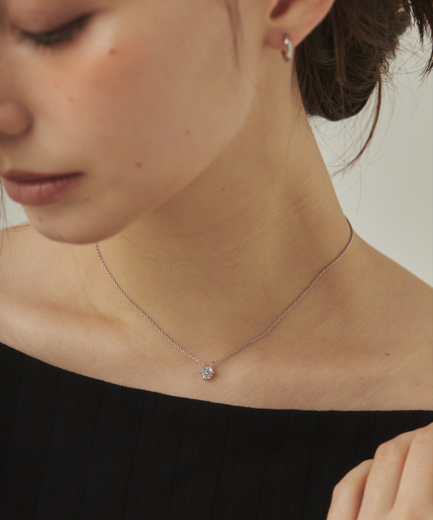 シンプルなデザインでありながらもデコルテに上品さを添えることが出来るネックレス。