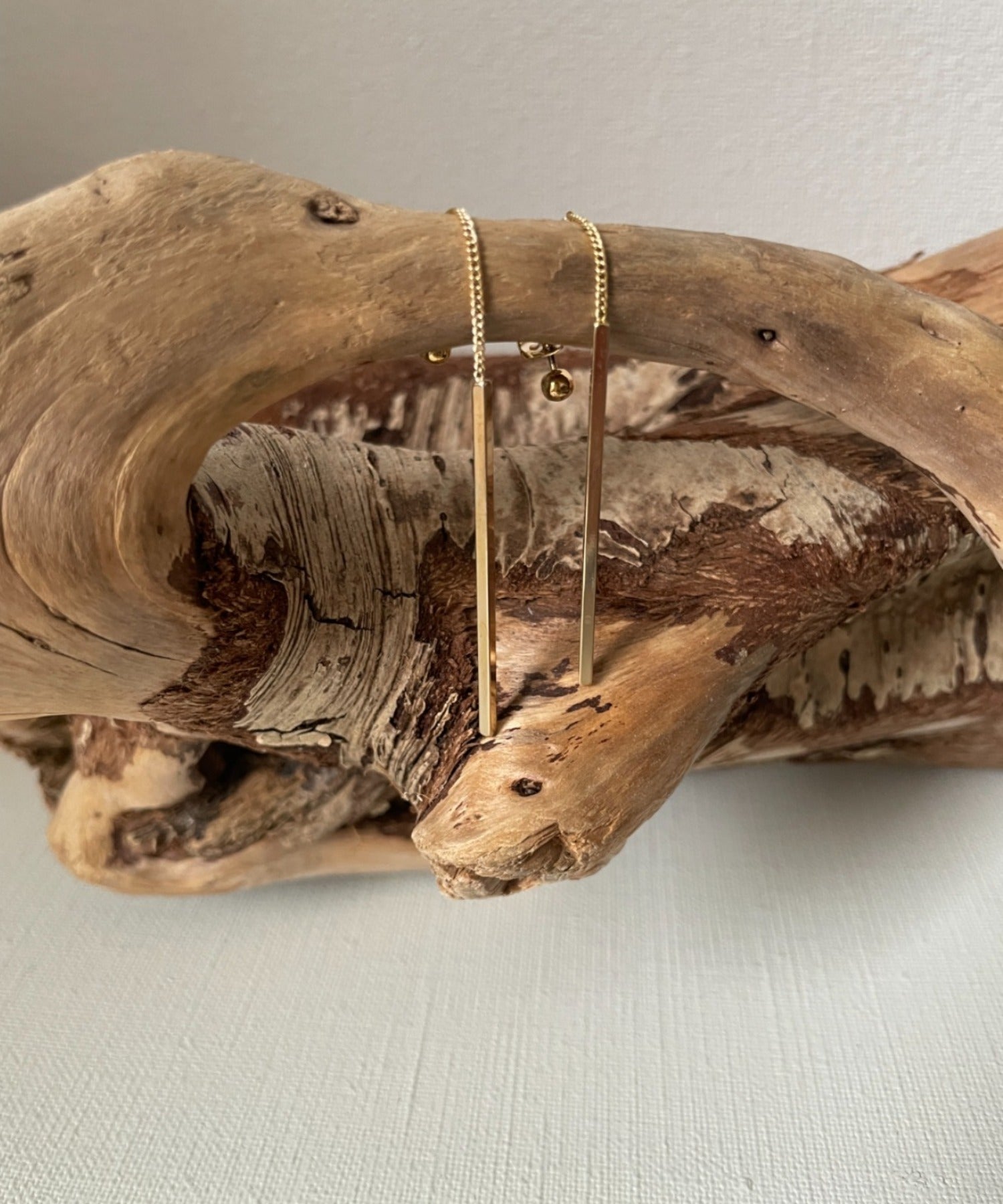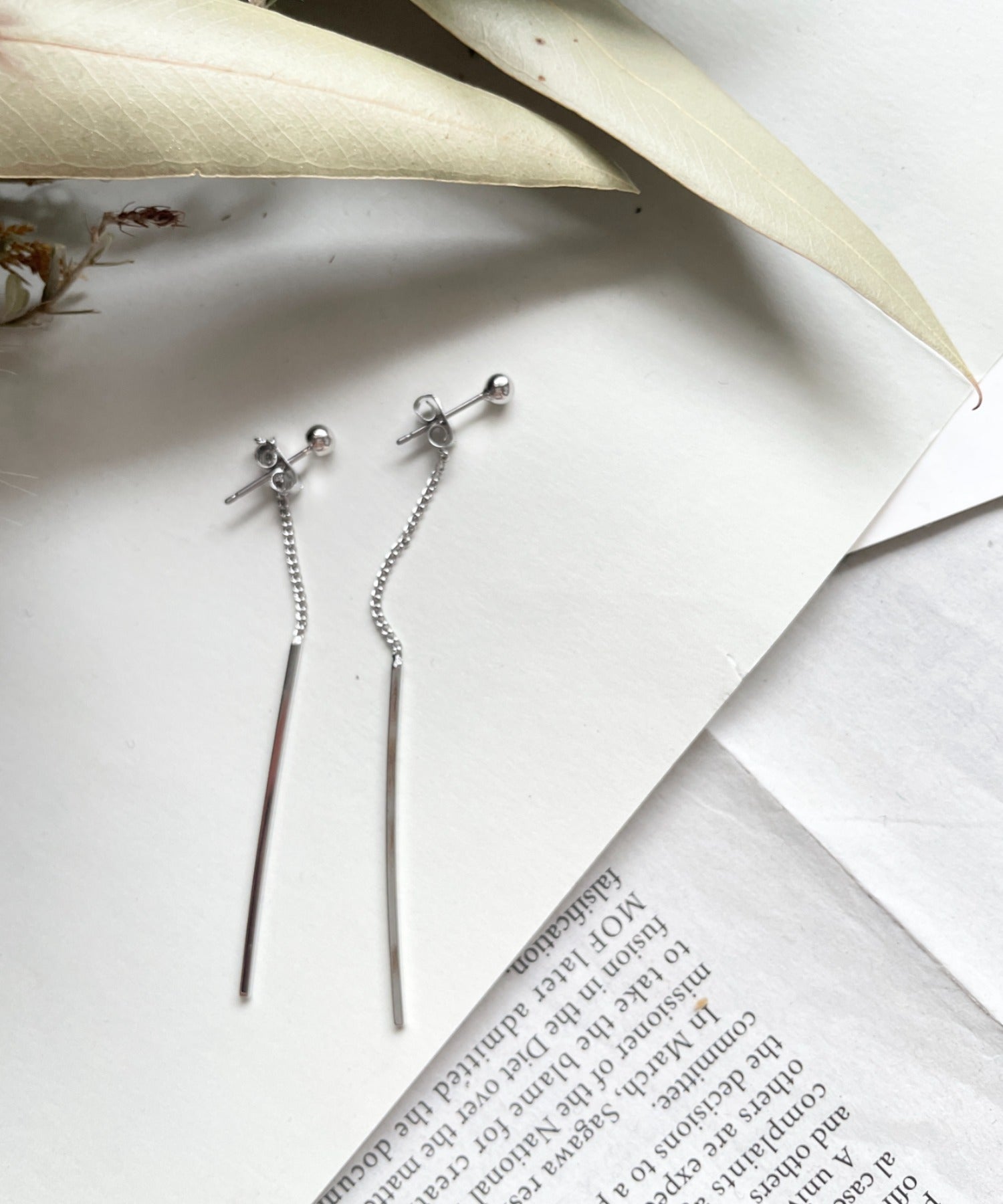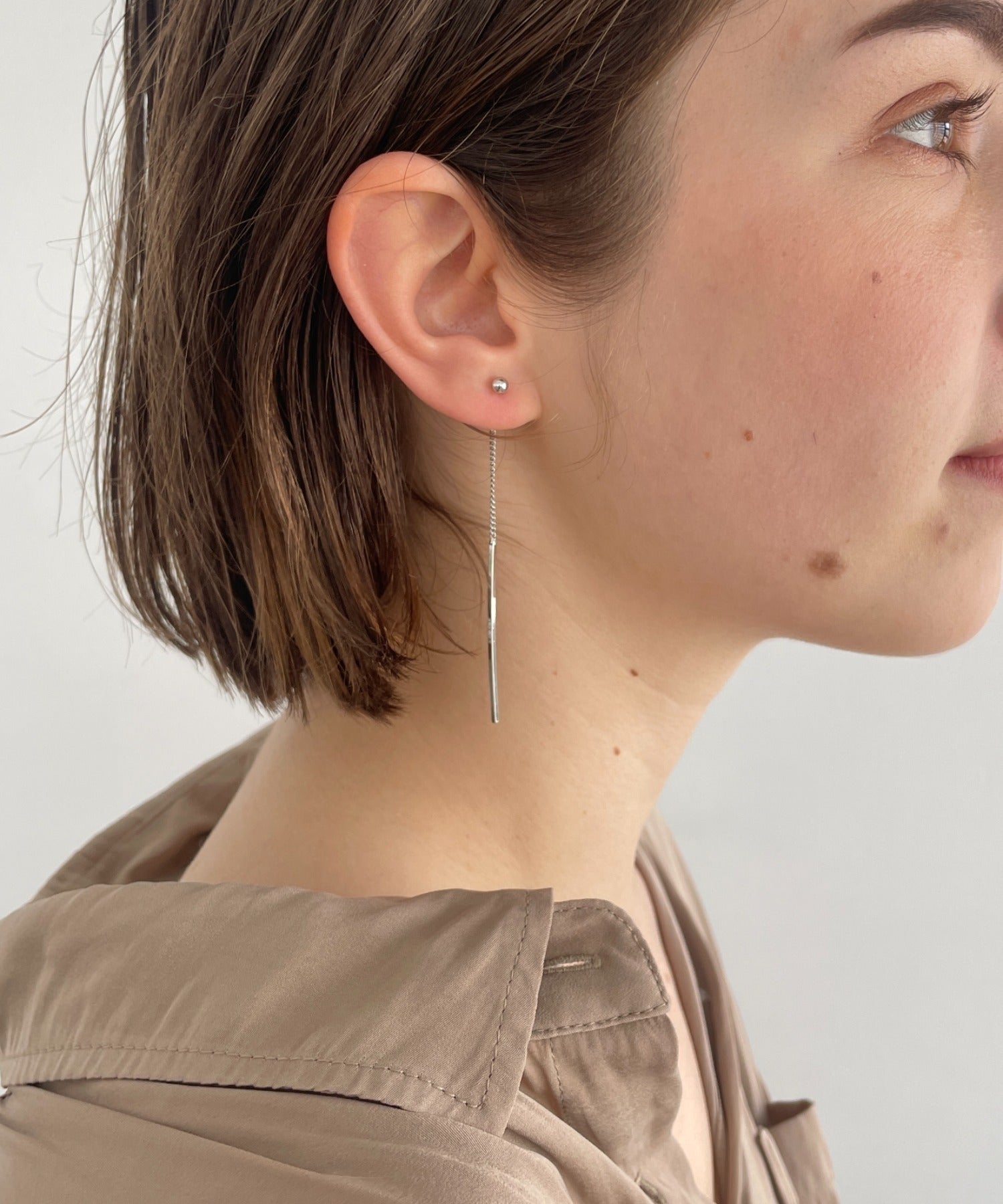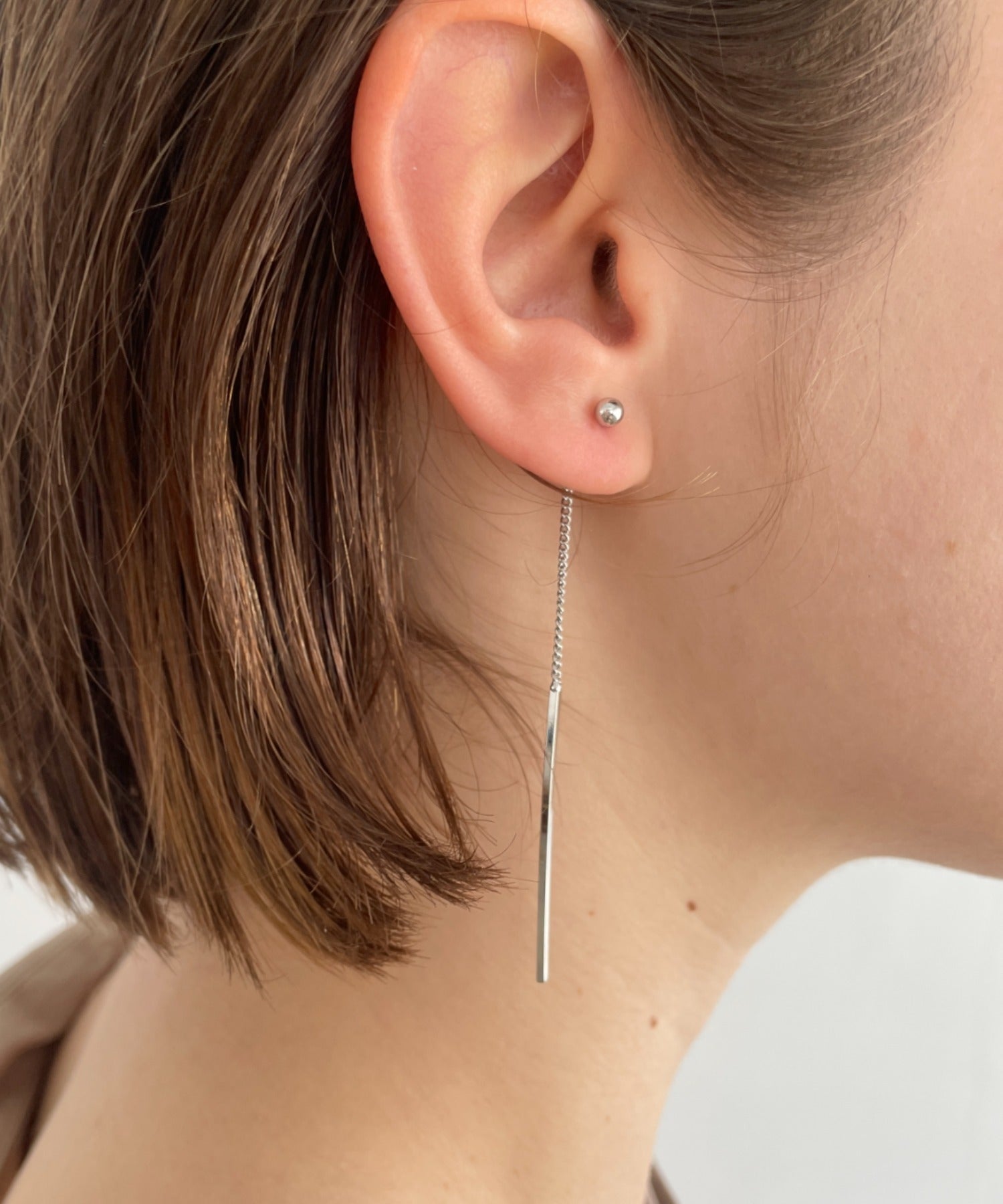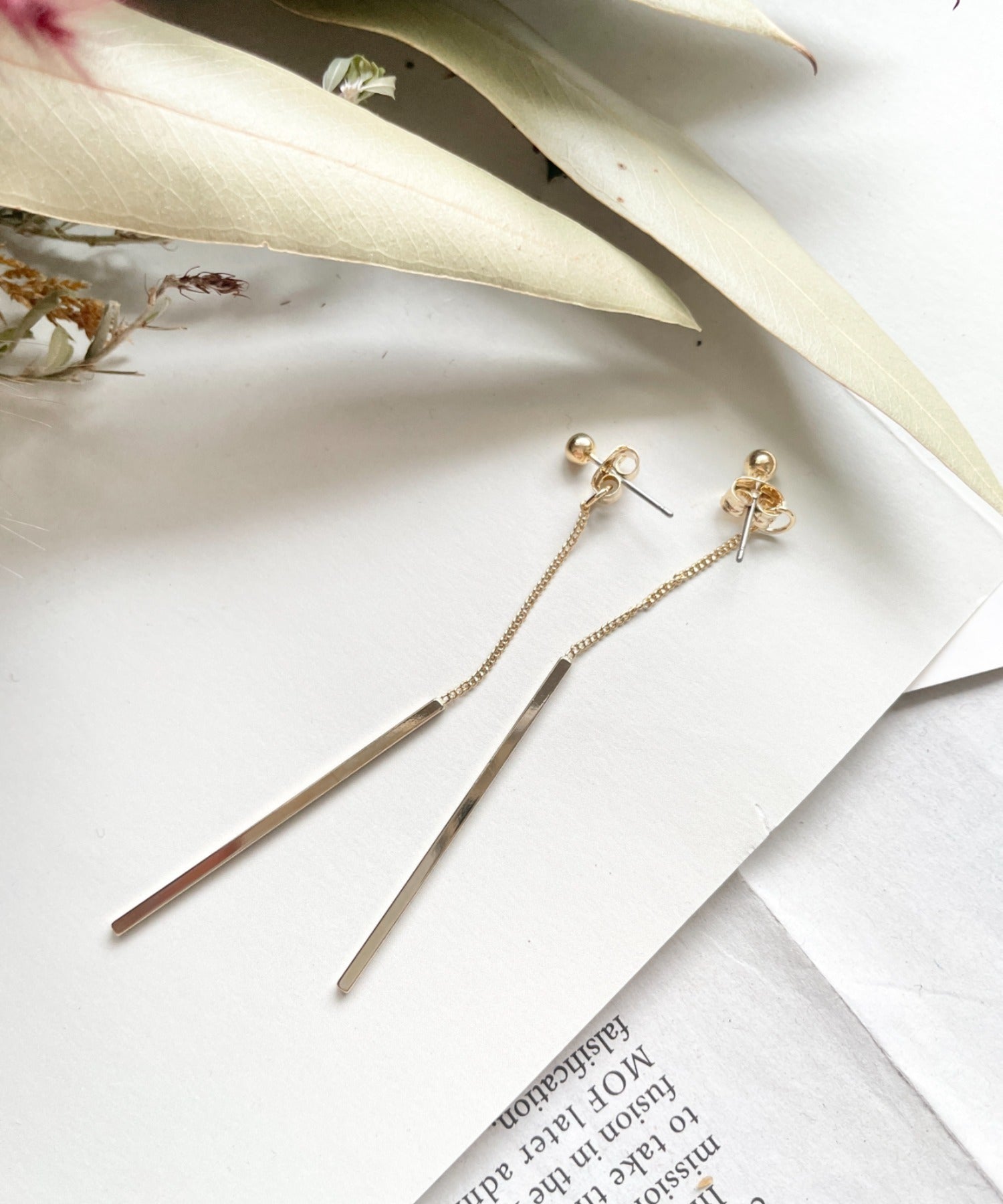 ゆらゆらゆれる耳すっきりとしたシルエットが美しいロングピアス。