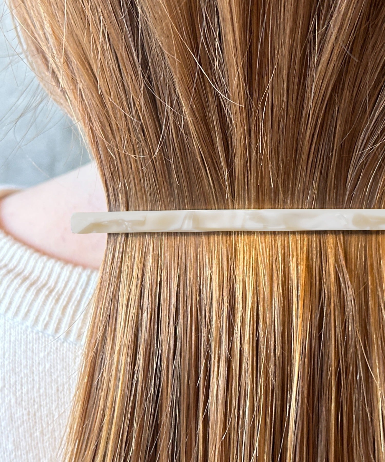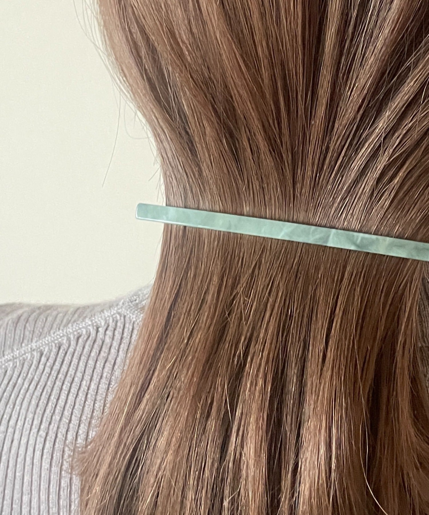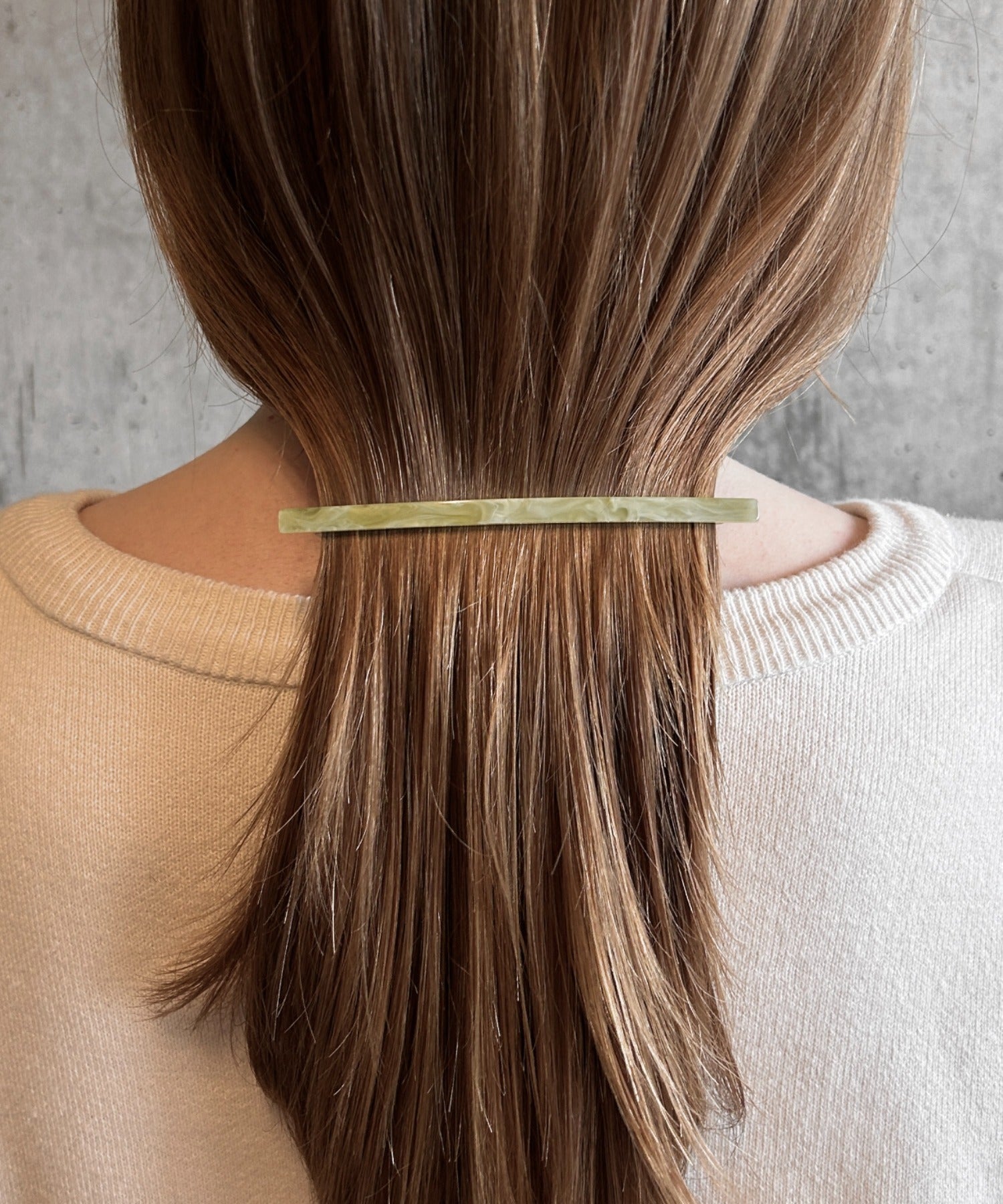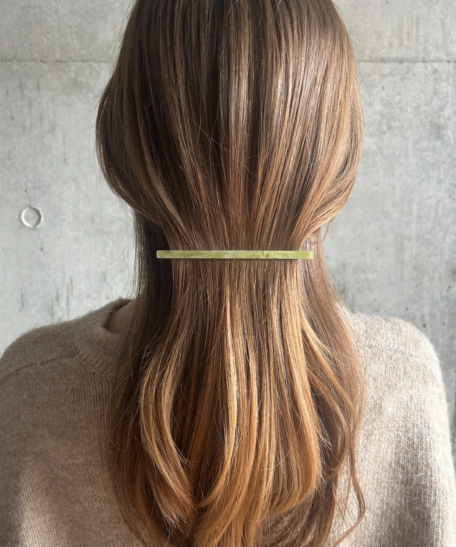 細くすっきりとしたデザインのバレッタは大人上品なまとめ髪にぴったり。普段使いやオフィすでも使えます。