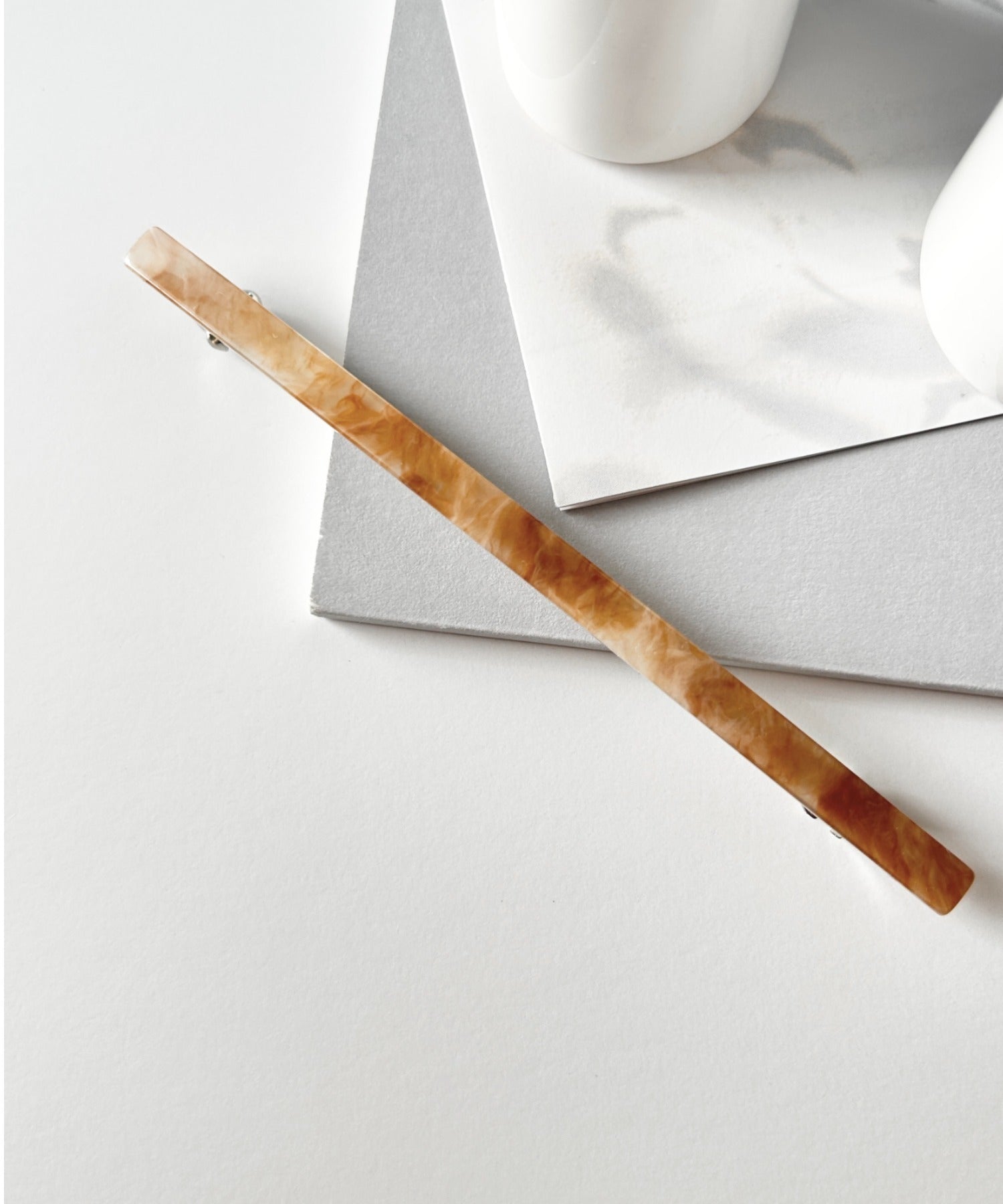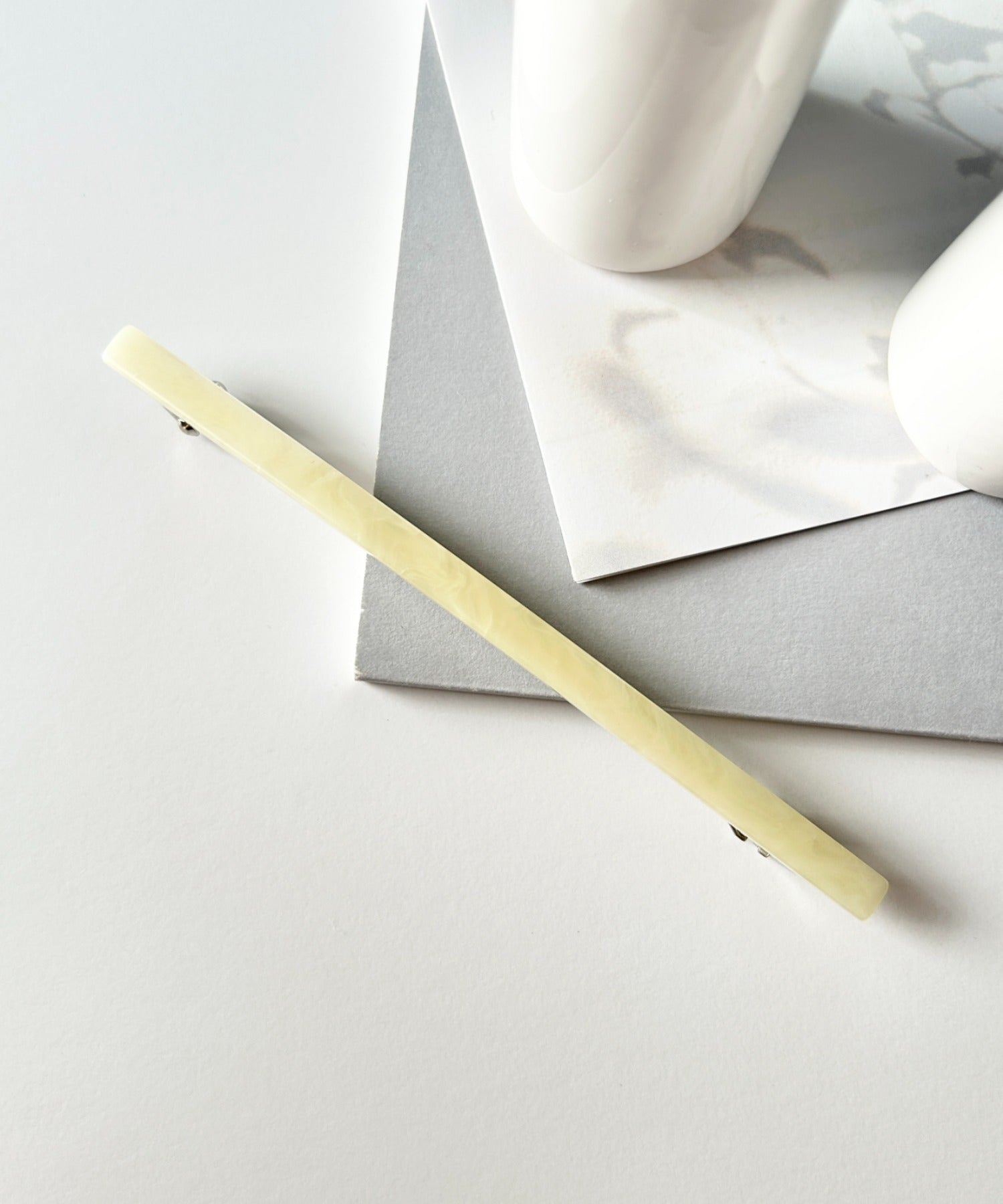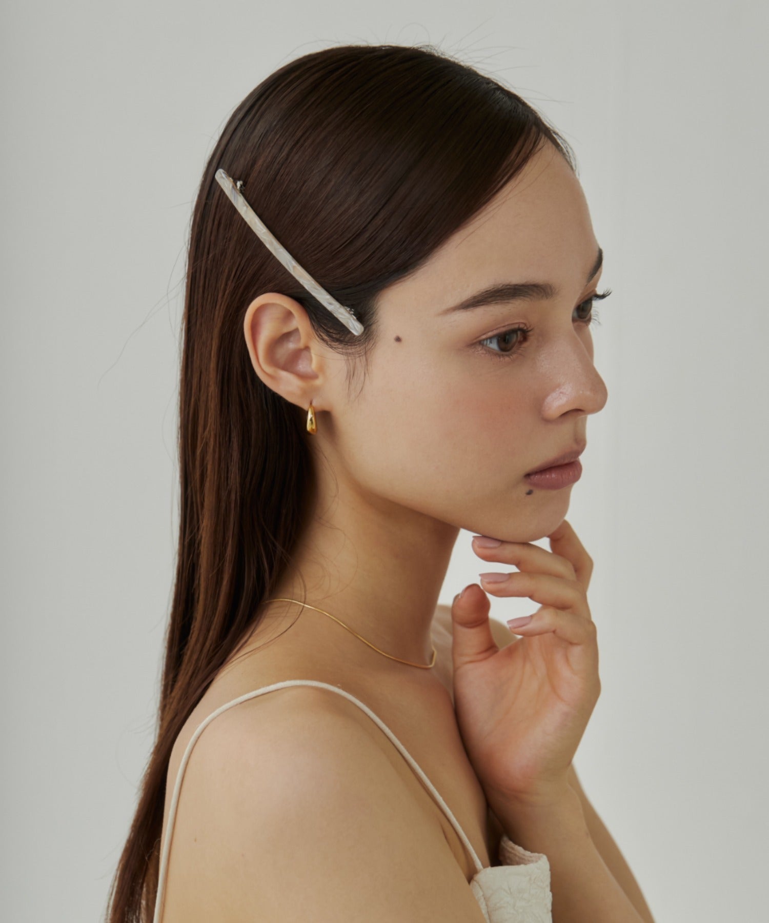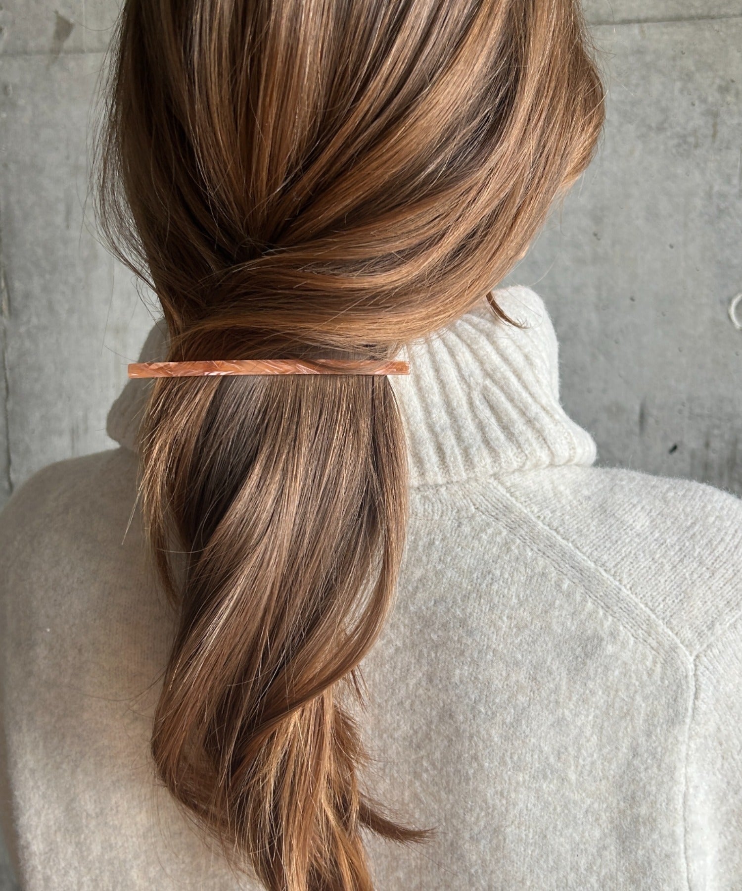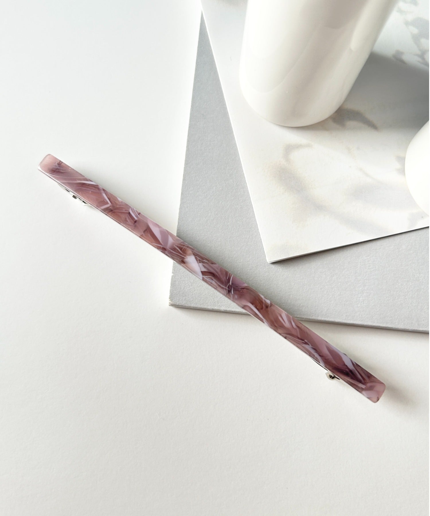 細くすっきりとしたデザインのバレッタは大人上品なまとめ髪にぴったり。普段使いやオフィすでも使えます。