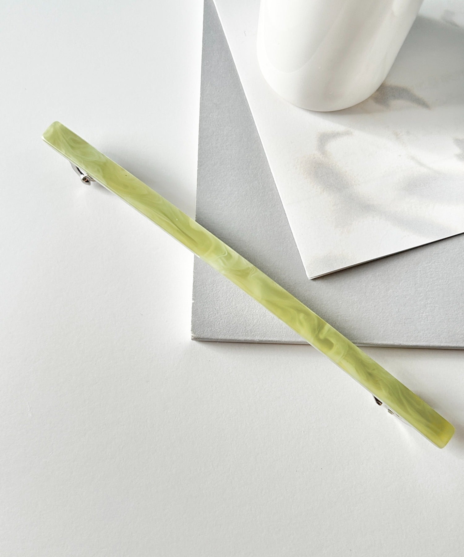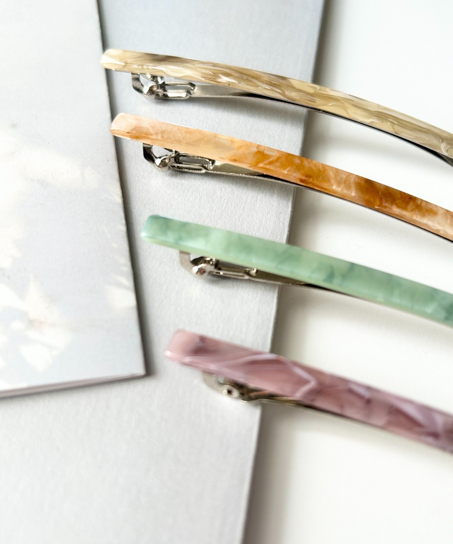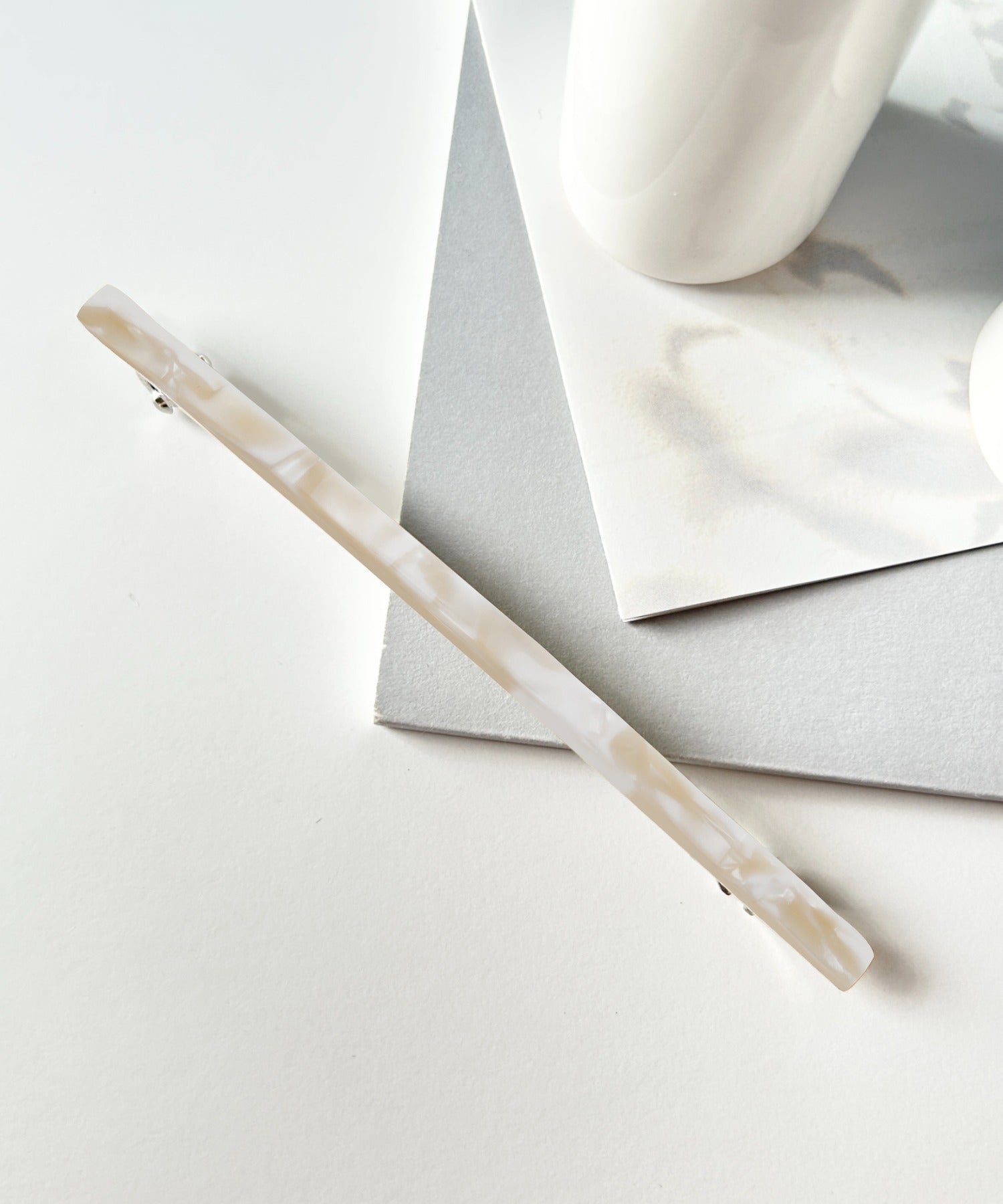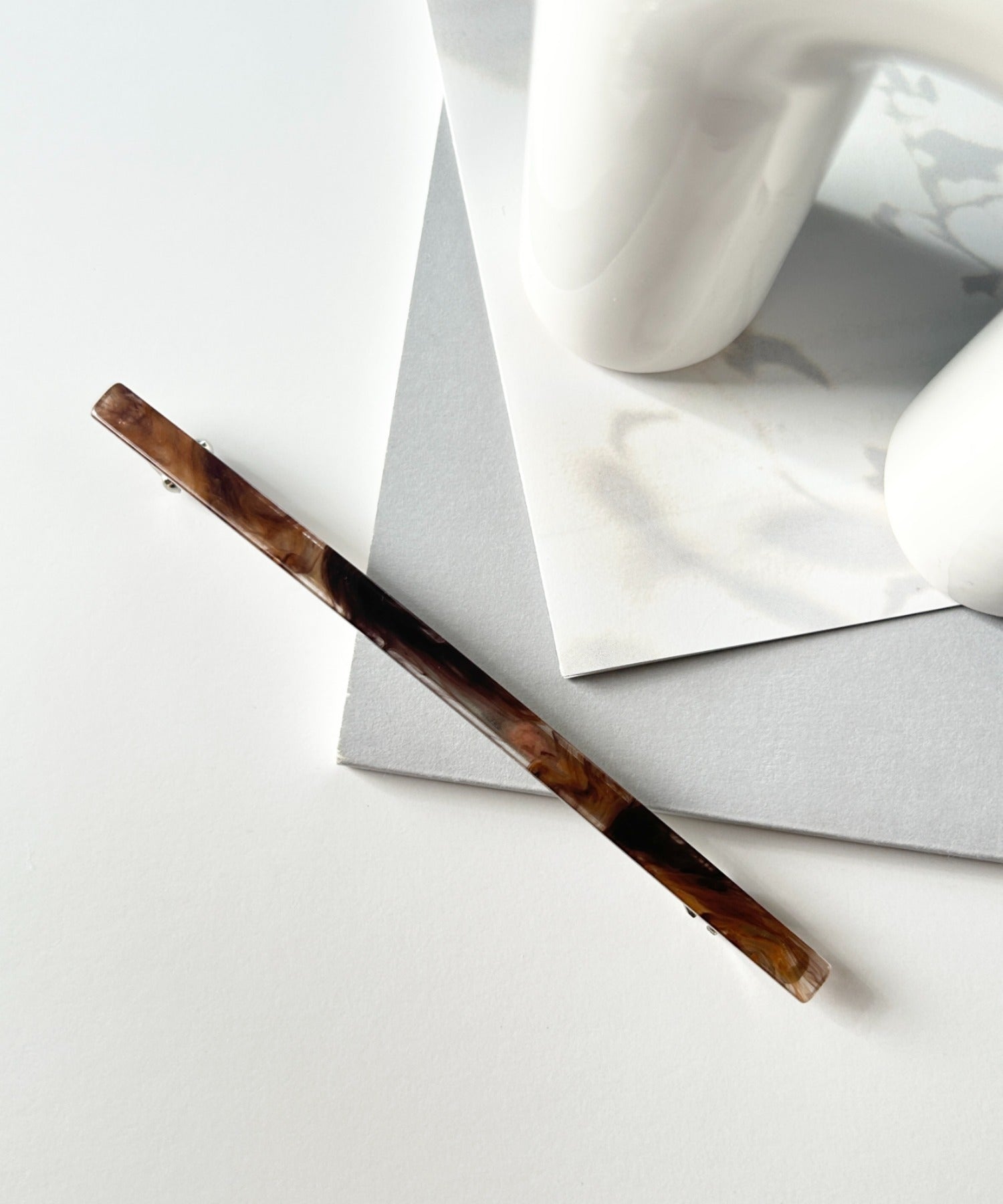 細くすっきりとしたデザインのバレッタは大人上品なまとめ髪にぴったり。普段使いやオフィすでも使えます。