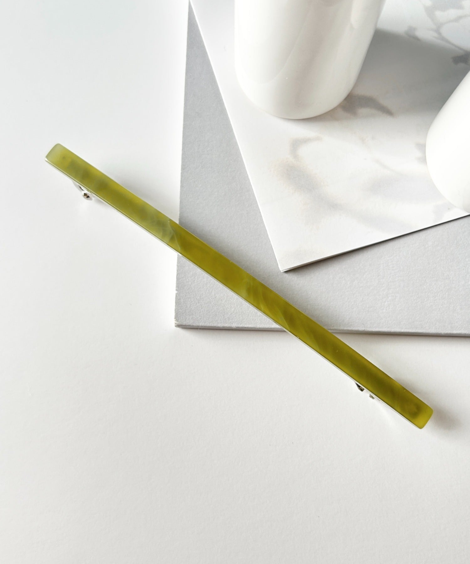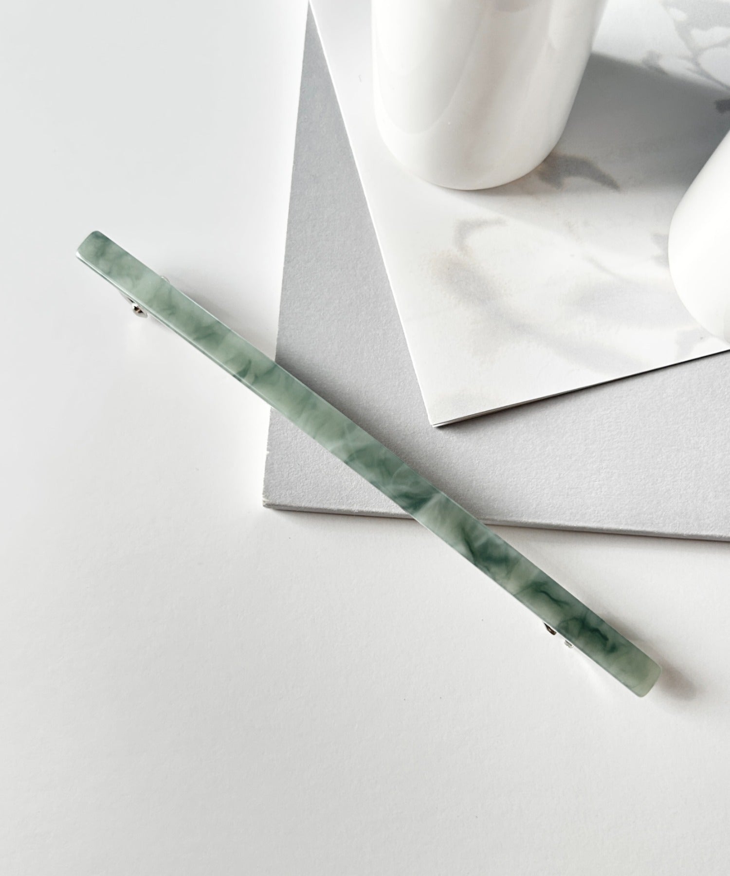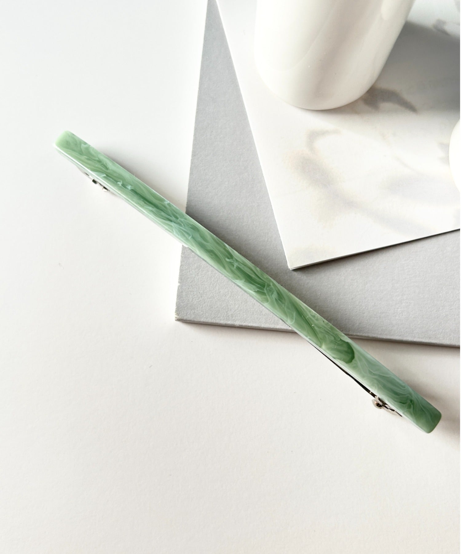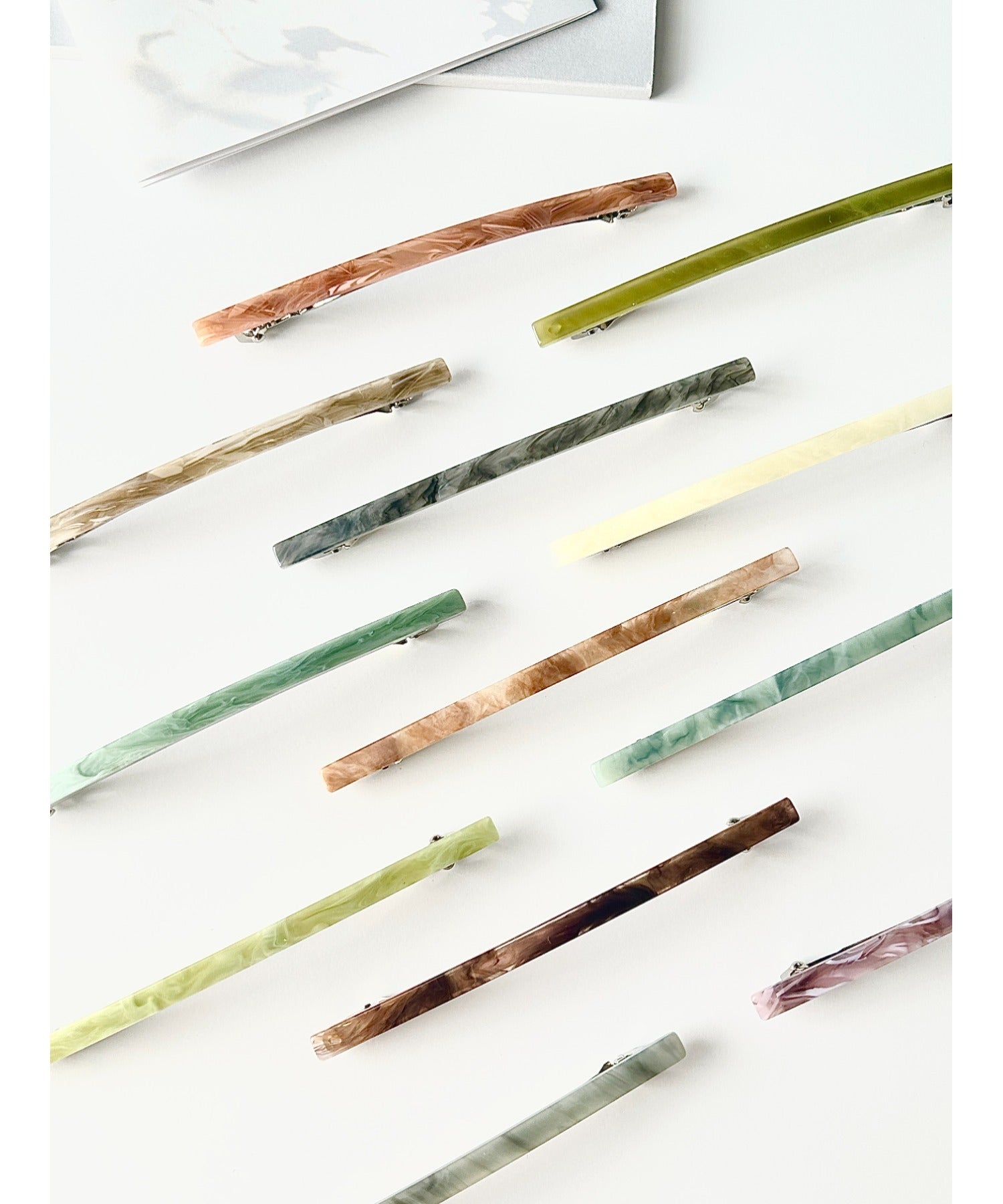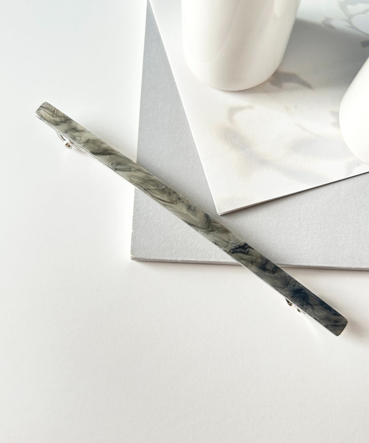 細くすっきりとしたデザインのバレッタは大人上品なまとめ髪にぴったり。普段使いやオフィすでも使えます。