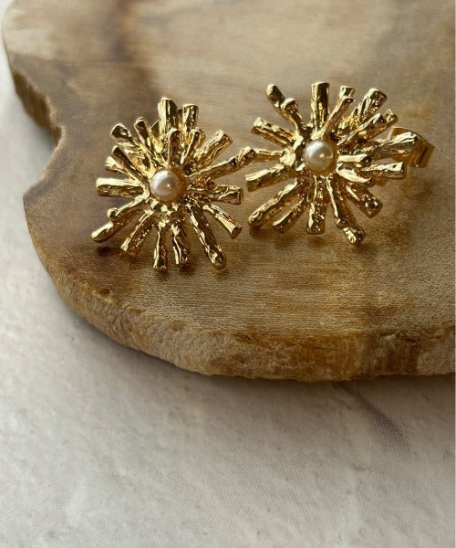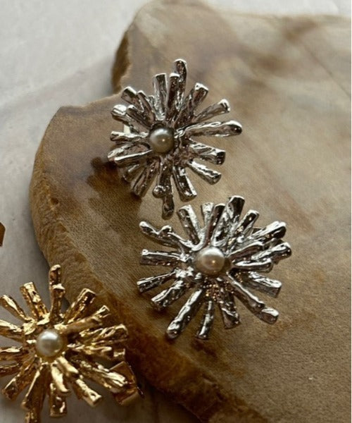 パールとデイジーの花がモチーフなった可愛らしいお花のピアス。