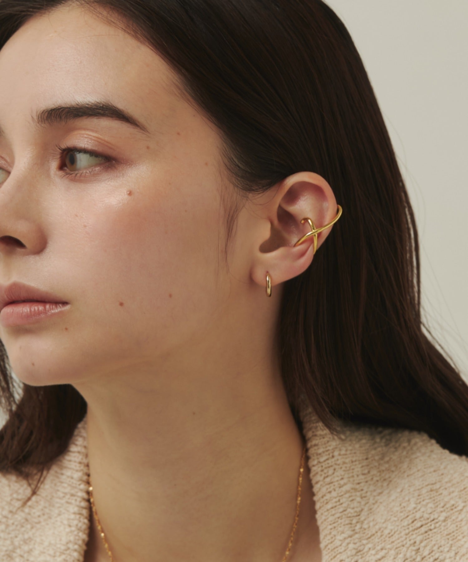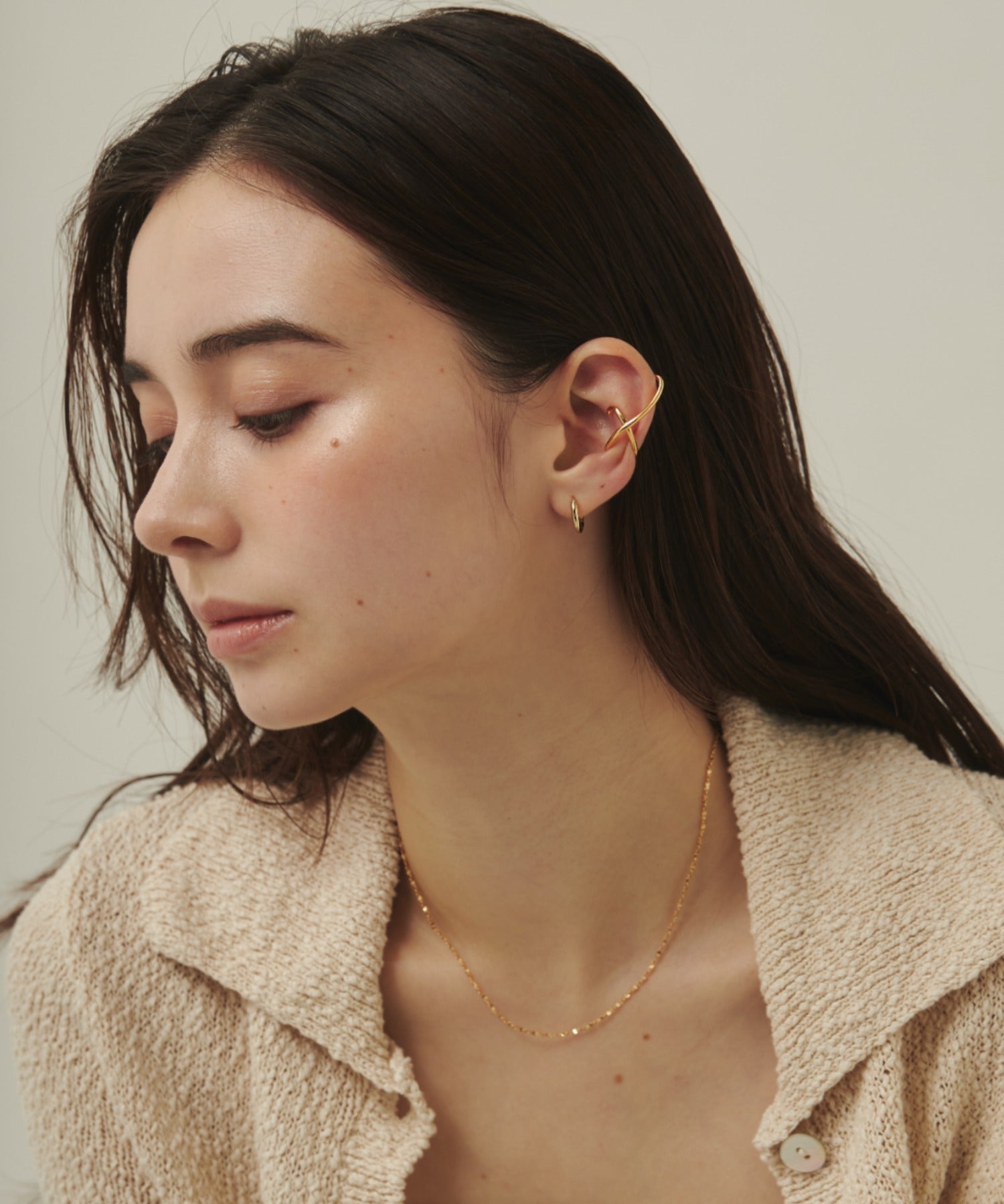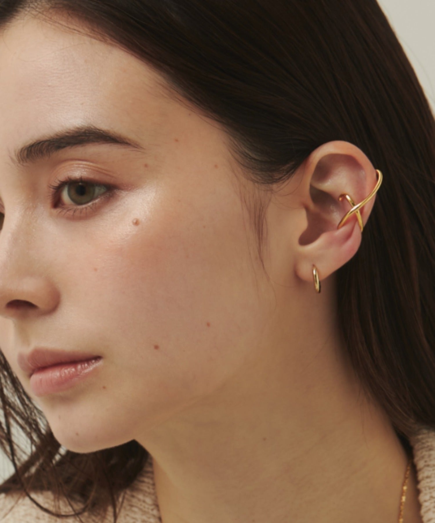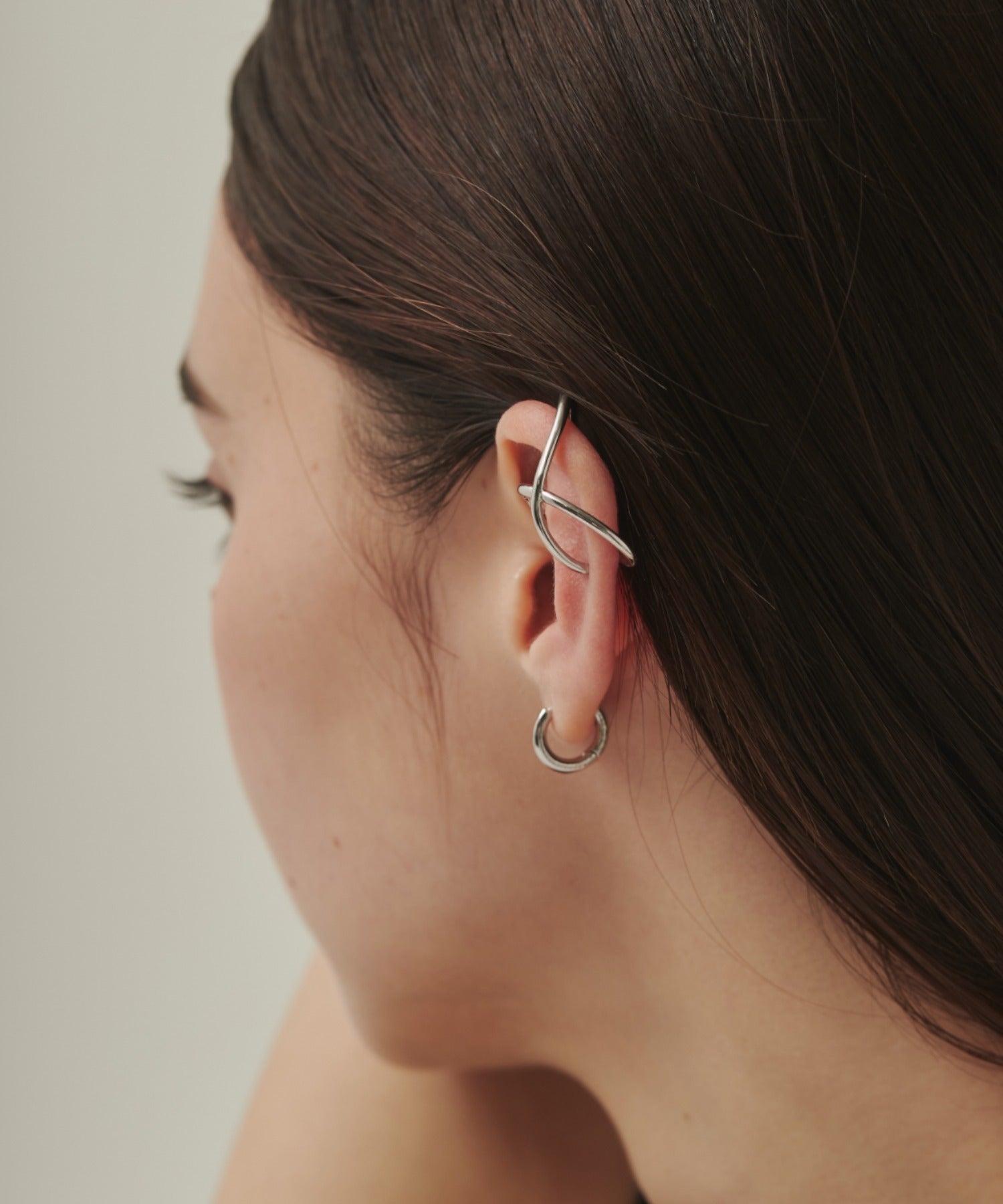 ニュアンス感と抜け感がスタイリッシュな印象のイヤーカフ。