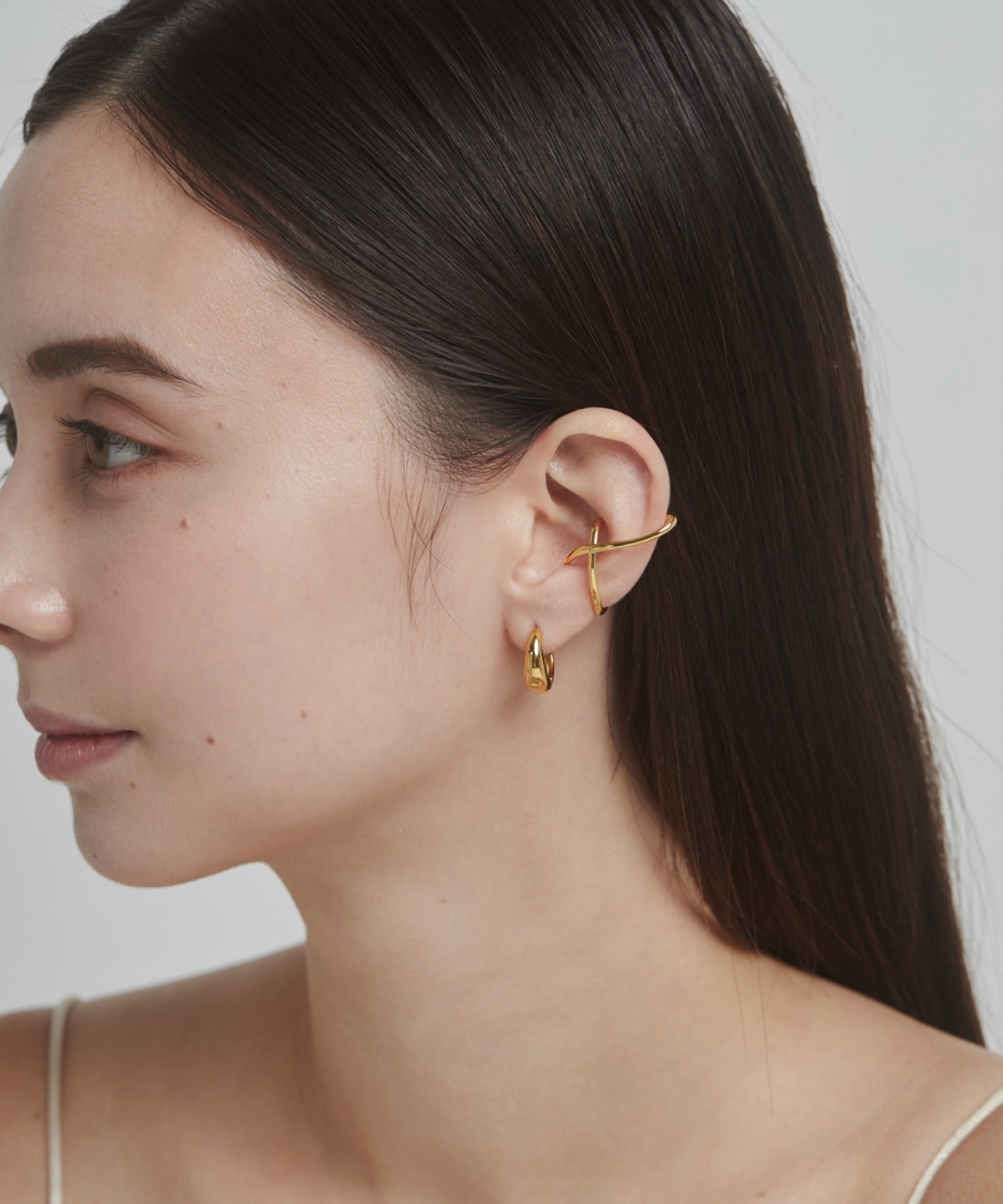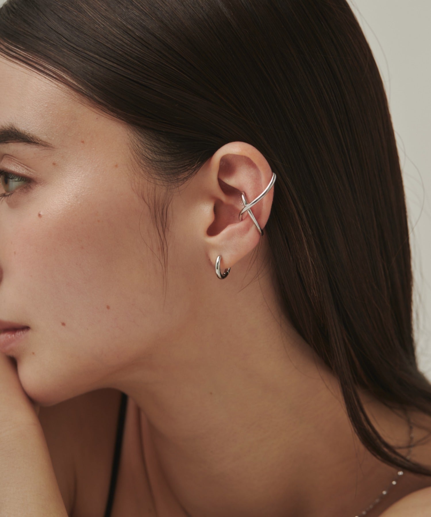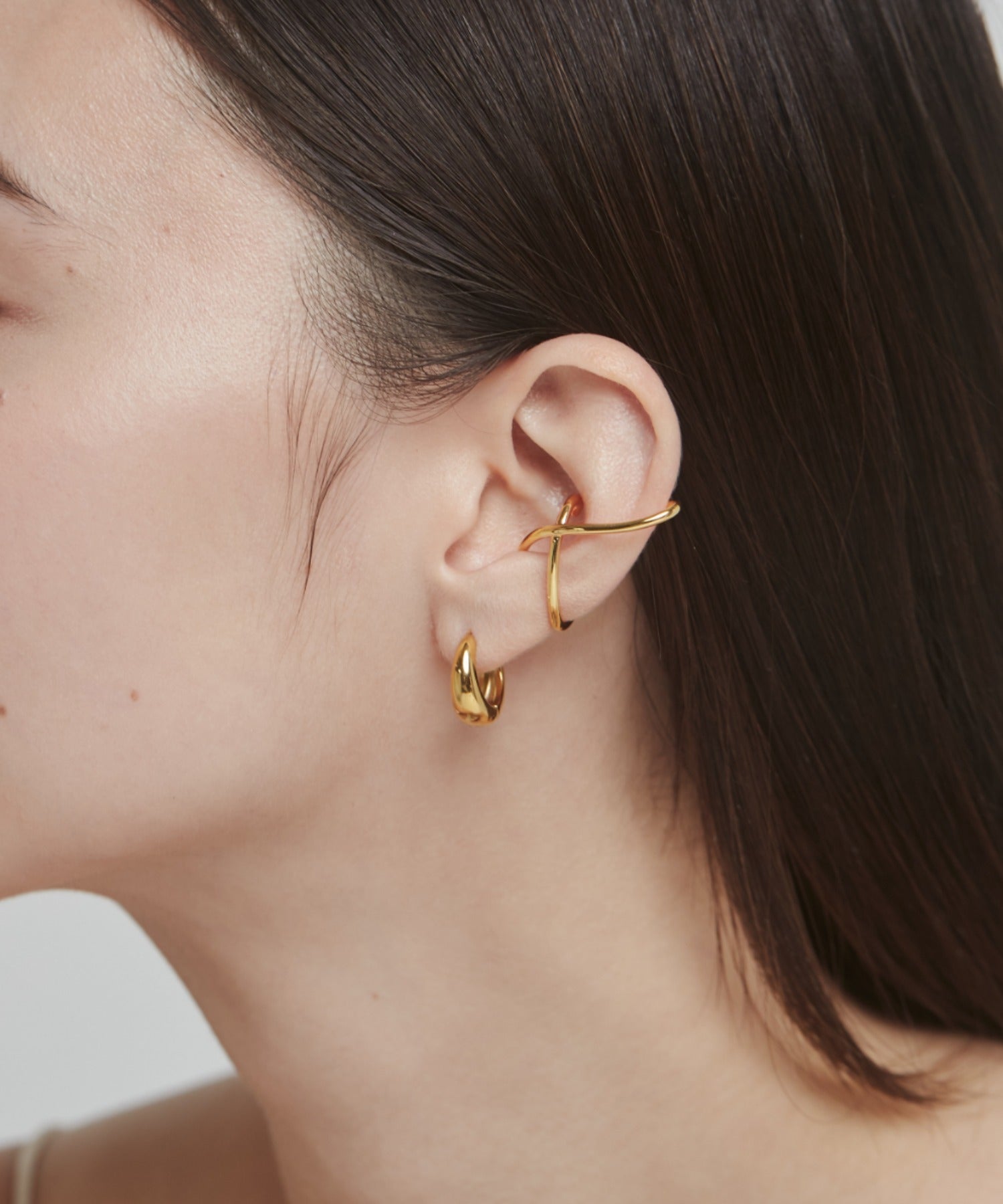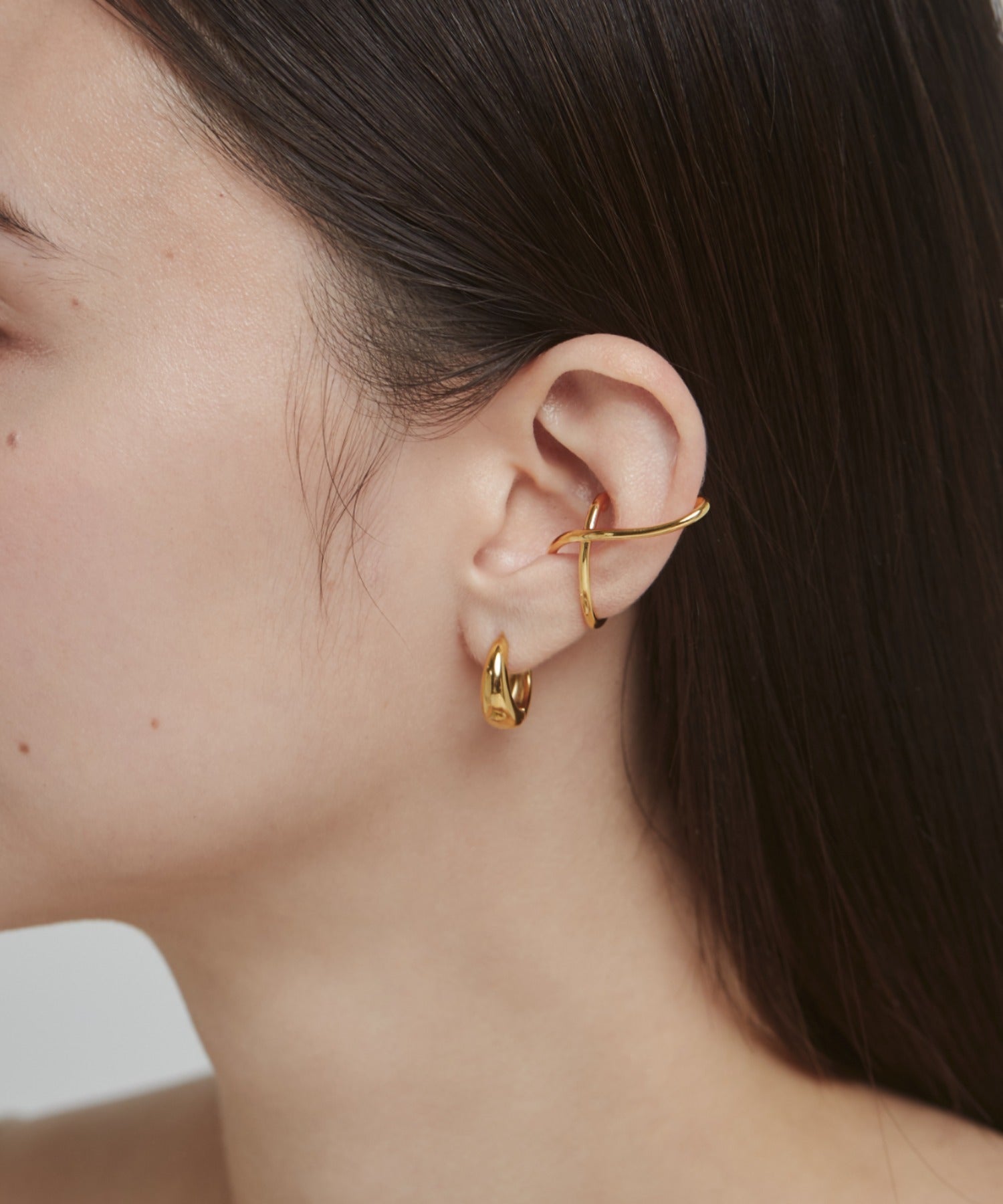ニュアンス感と抜け感がスタイリッシュな印象のイヤーカフ。